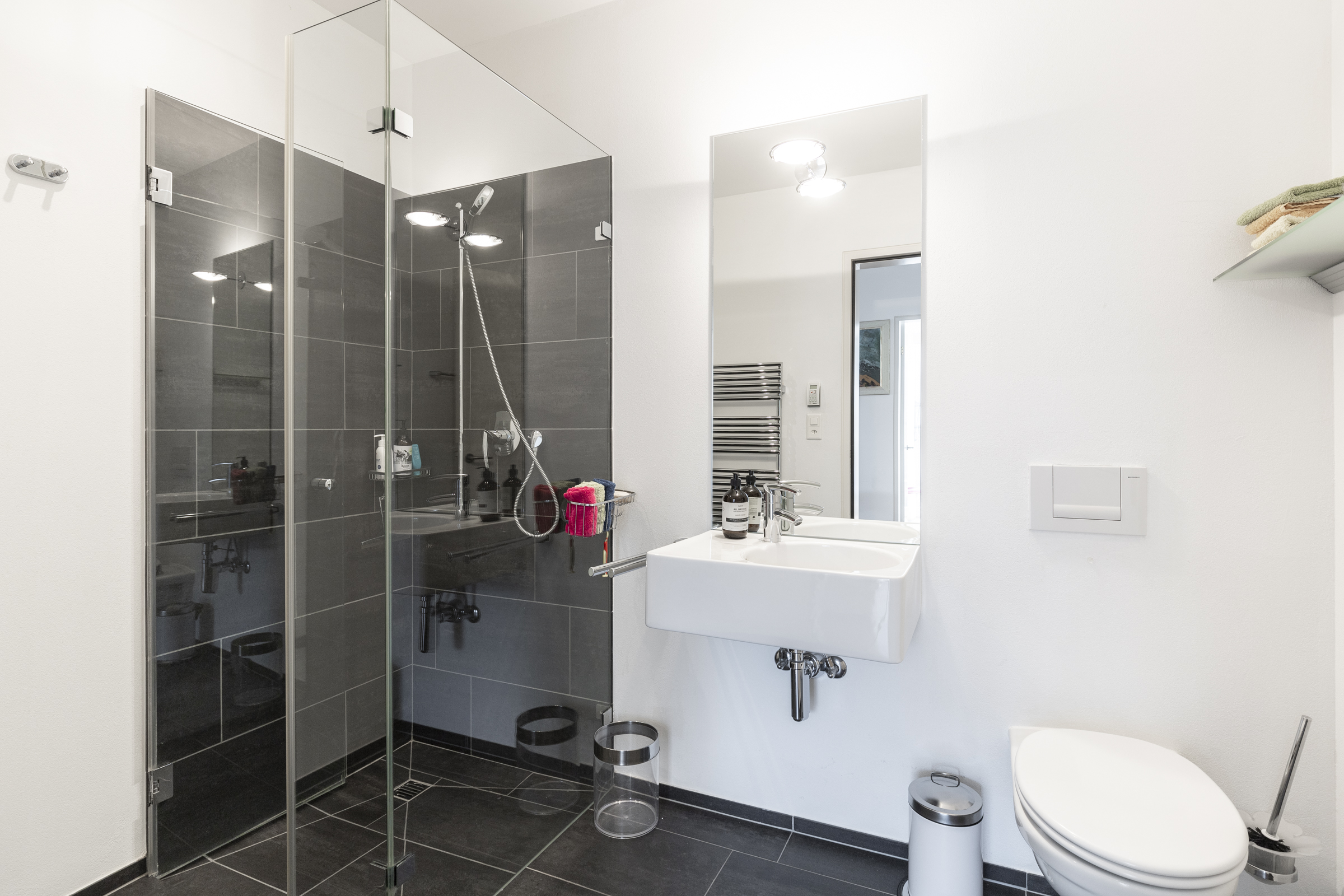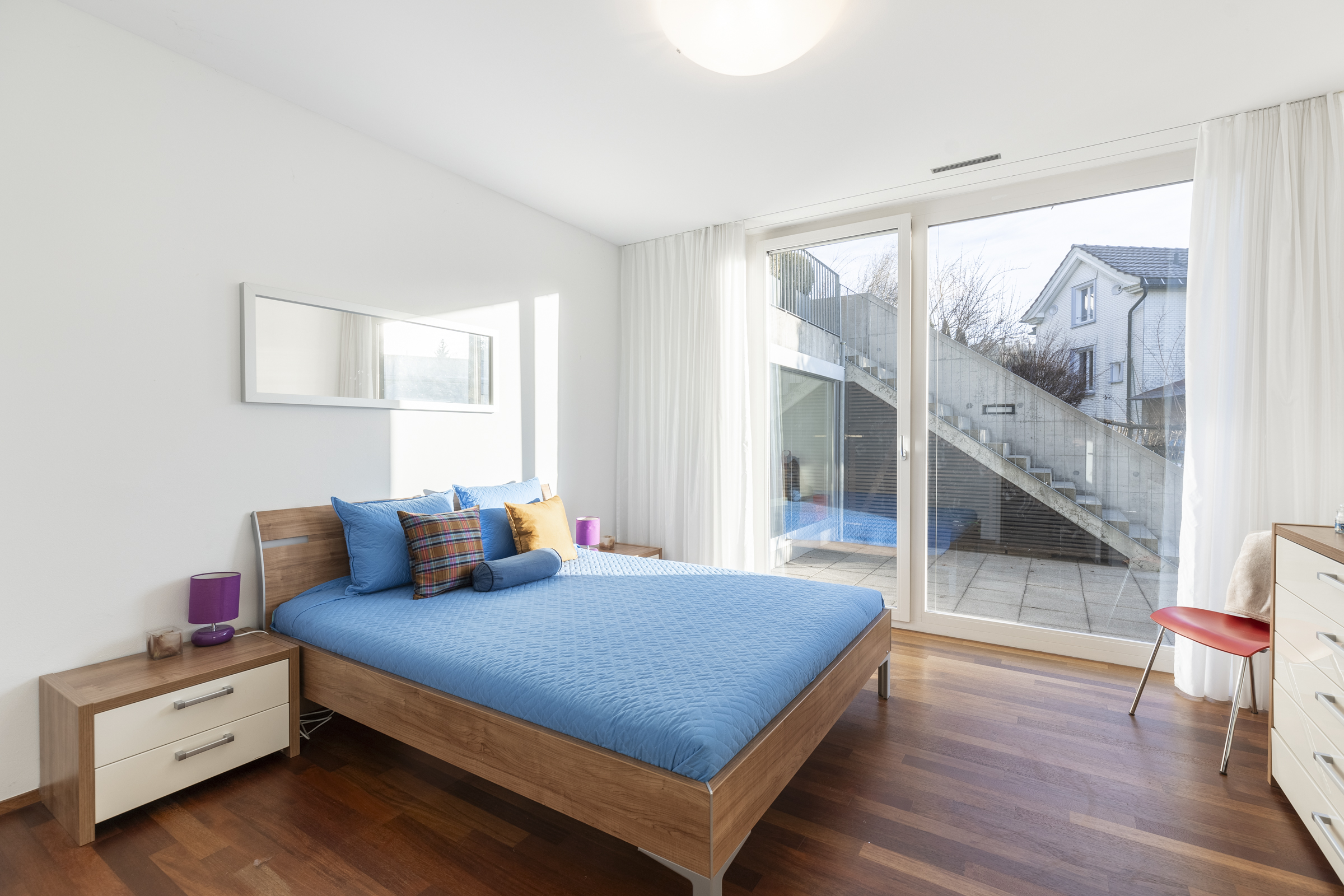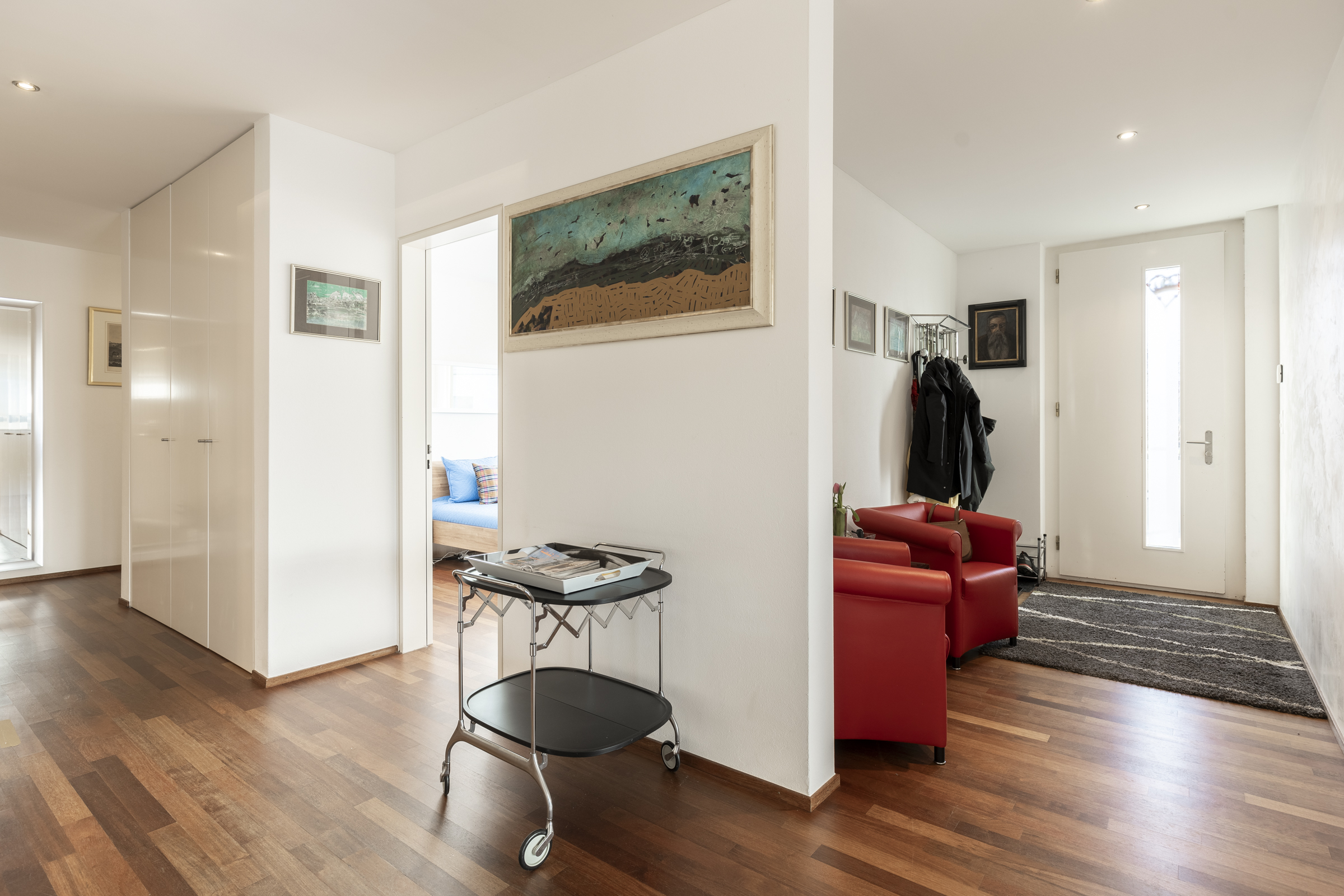 Die lichtdurchflutete Immobilie bietet Ihnen alles, was Sie sich von einem exklusiven und gepflegten Zuhause wünschen. Der Zugang erfolgt über die Aussentreppe oder bequem mit dem Lift von der Tiefgarage aus. Ein umfangreiches Angebot an hellen, grossen Räumen fehlt ebenso wenig wie hochwertige Parkettböden und Extras wie ein praktisches Reduit und ein separater Raum mit Waschturm. Der durchdachte Grundriss trennt den Wohn- und den Schlafbereich geschickt ab und garantiert so eine hohe Privatsphäre für alle Familienmitglieder. Zwei zeitgemässe Badezimmer – einmal mit Dusche und einmal mit Badewanne und Dusche – sorgen für familienfreundlichen Komfort.