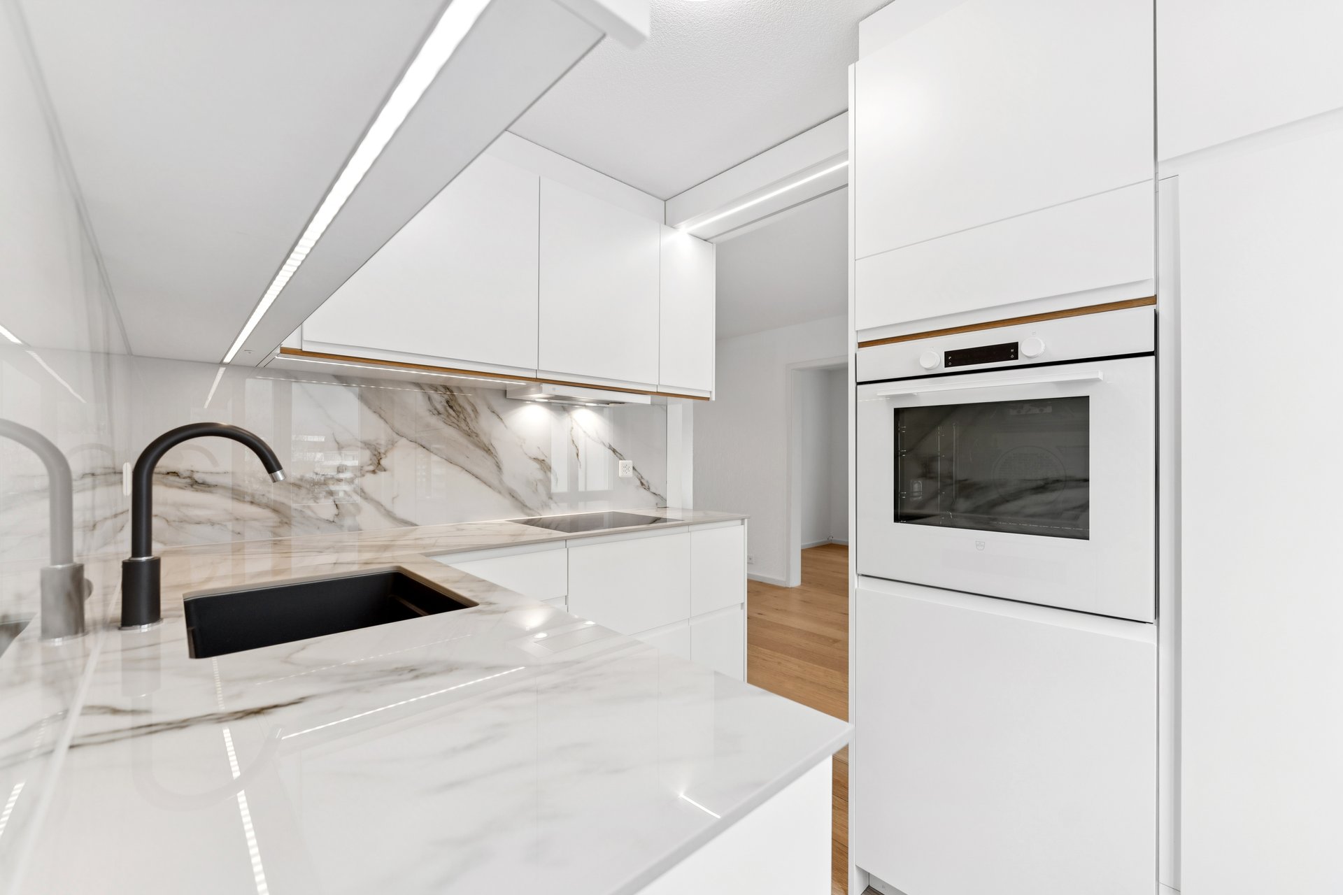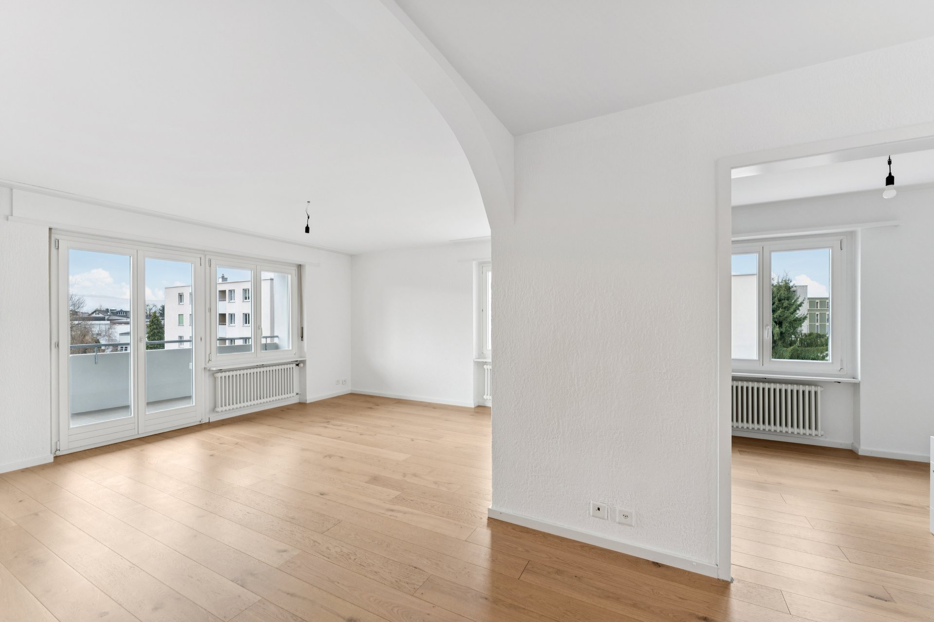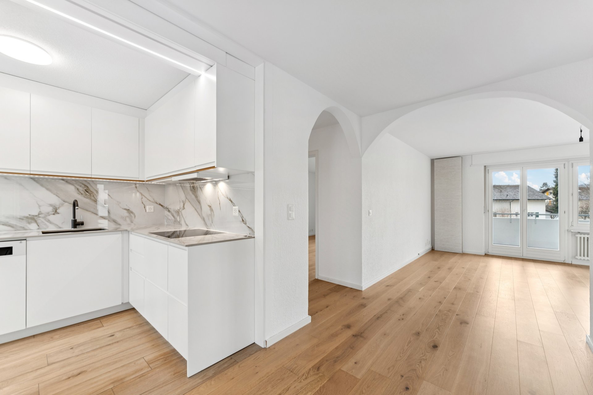 Die Wohnung wurde 2020 umfassend renoviert und präsentiert sich heute hell, sehr gepflegt und zeitlos. Warmer Parkettboden zieht sich durch die Wohnräume und Zimmer. Die Küche überzeugt mit klarer Linie, Funktionalität und einem kleinen Balkon. Zwei lichtverwöhnte Schlafzimmer bieten Platz für individuelle Wohnideen. Die charakteristischen Deckenbögen verleihen der Wohnung einen charmanten, fast mediterranen Akzent. Das geräumige Wohnzimmer bildet das Herzstück Ihres künftigen Daheims. Von hier gelangen Sie auf den sonnigen Hauptbalkon mit Blick ins Grüne – ein Ort der Entspannung zu jeder Jahreszeit.