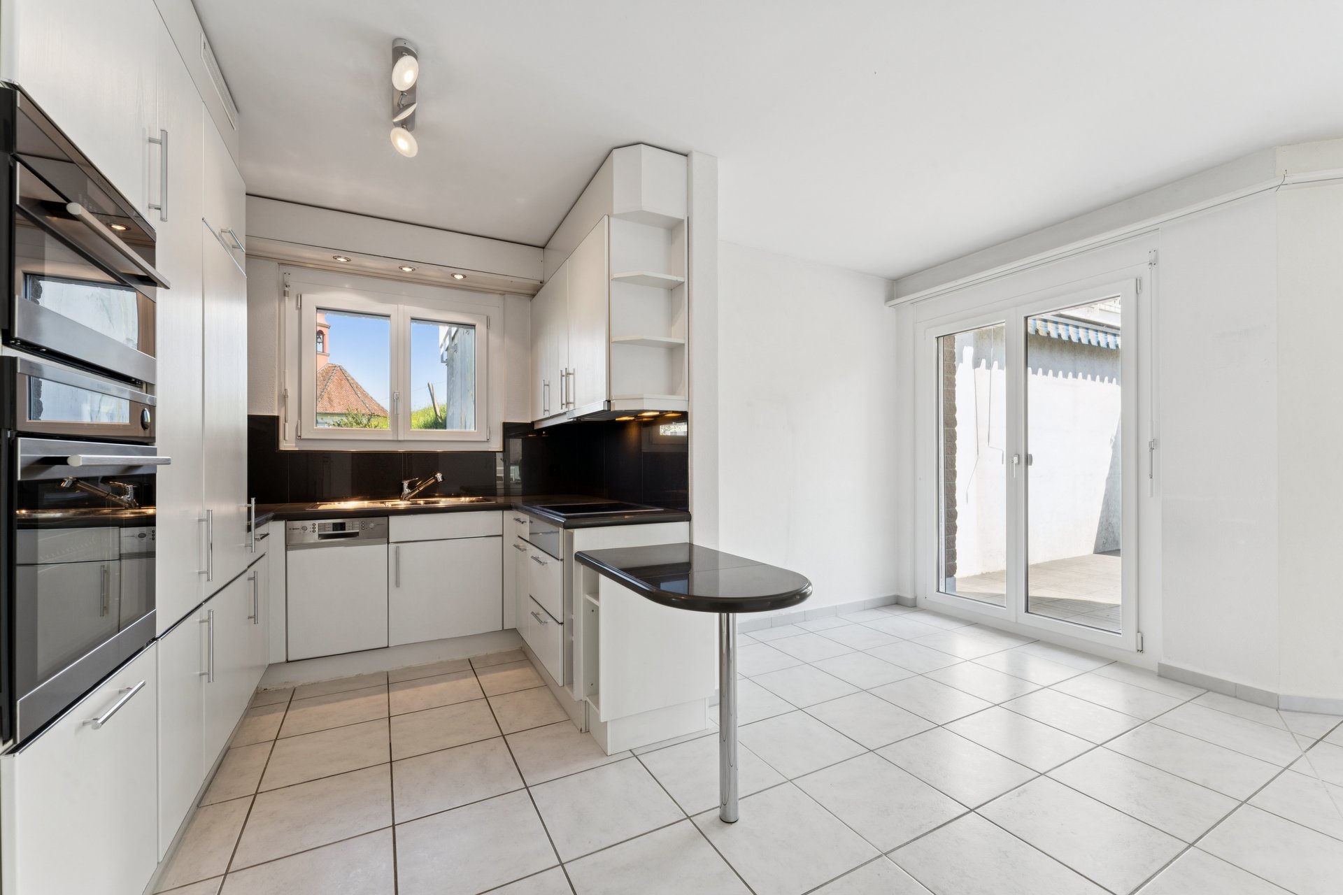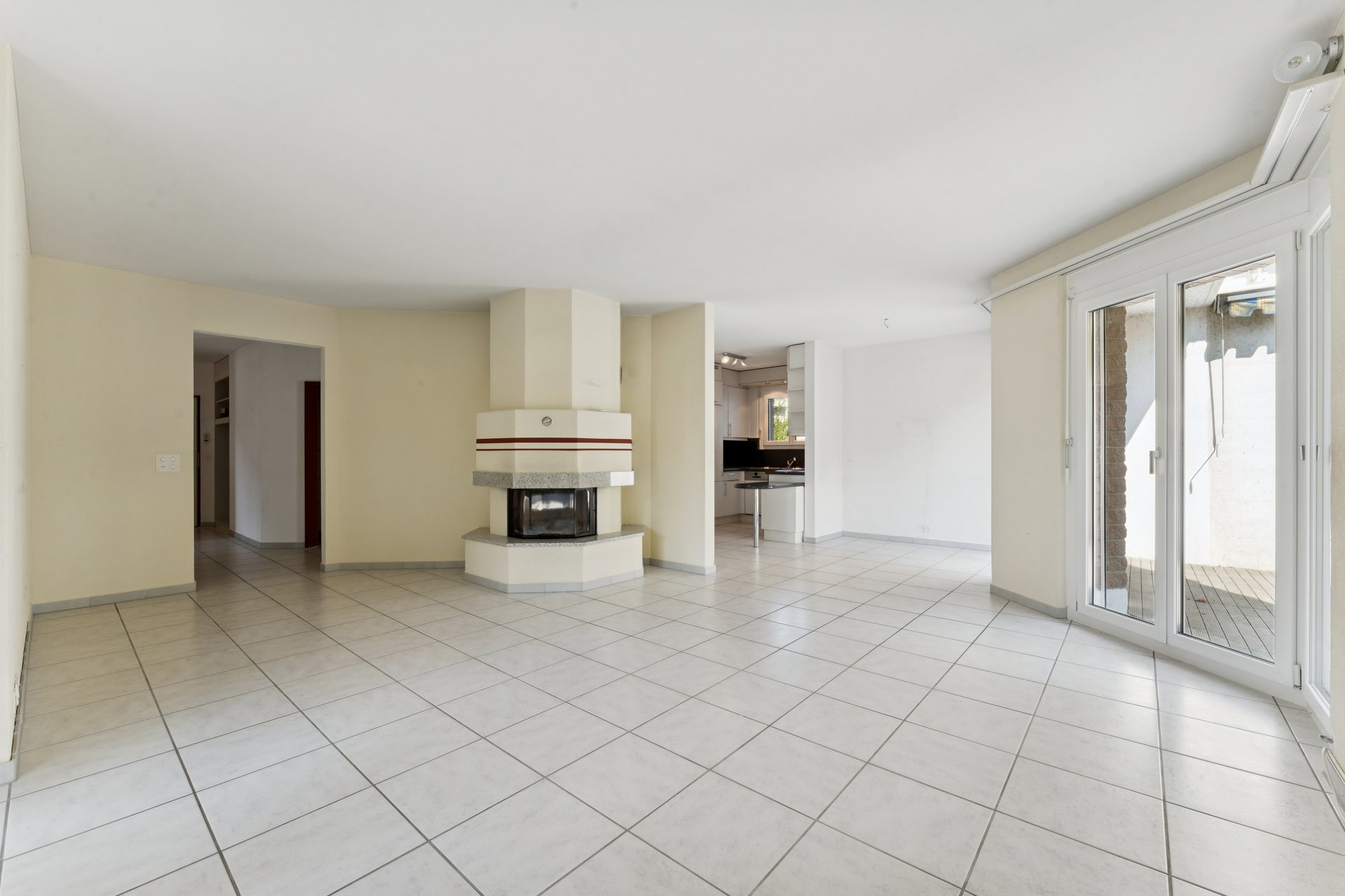 Das Herzstück der Wohnung bildet der offene Wohn- und Essbereich: lichtdurchflutet, grosszügig und mit einem Cheminée ausgestattet, das an kühleren Tagen für wohlige Wärme und gemütliche Stunden sorgt. Die funktionale Küche begeistert mit viel Platz für gemeinsames Kochen, Lachen und Geniessen.