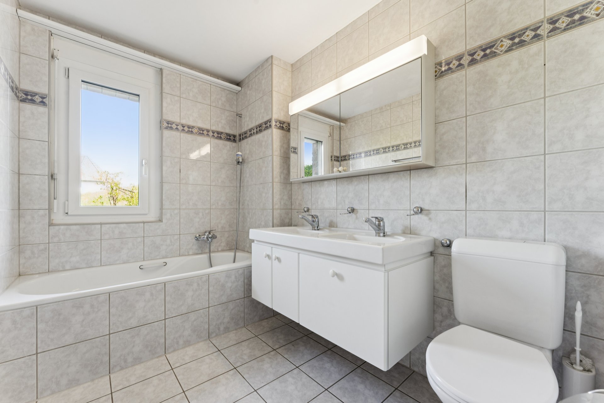 Drei helle und geräumige Schlafzimmer – alle mit direktem Zugang zu den Sitzplätzen – bieten viel Raum für Rückzug und Privatsphäre. Zwei moderne Badezimmer mit Tageslicht, eines mit Dusche und eines mit Badewanne sowie Doppellavabo, sorgen für entspannte Morgen und erholsame Abende. Für zusätzlichen Komfort steht Ihnen eine separate Waschküche in der Wohnung zur Verfügung – praktisch und luxuriös zugleich.