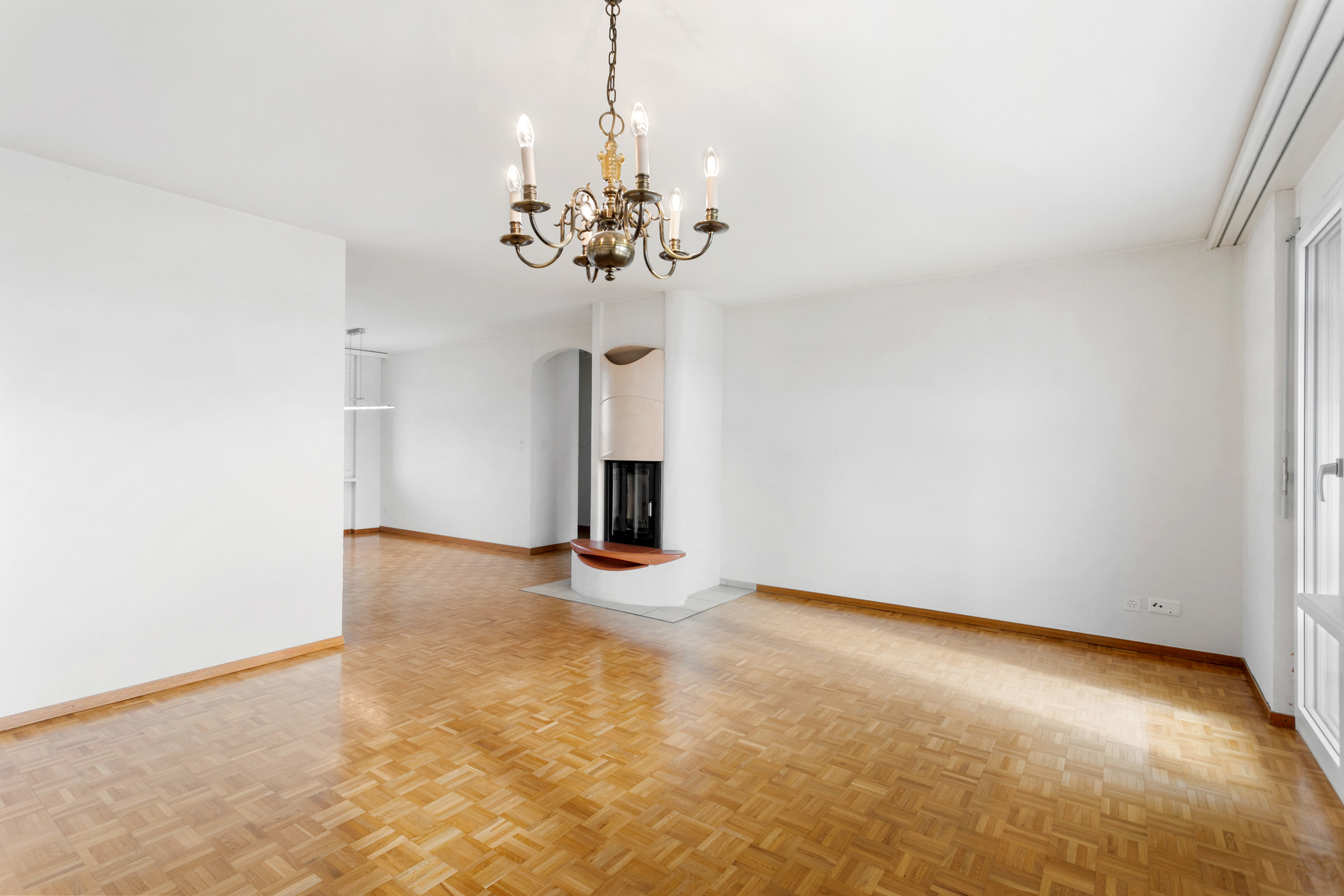 Für gemütliche Winterabende sorgt das elegante Cheminée im Wohnbereich. Ein Durchbruch erweitert das Wohnzimmer um ein zusätzliches Zimmer, das sich ideal als Fernsehzimmer oder Bibliothek eignet. Zwei weitere Zimmer lassen sich flexibel als Schlafzimmer oder Homeoffice nutzen.