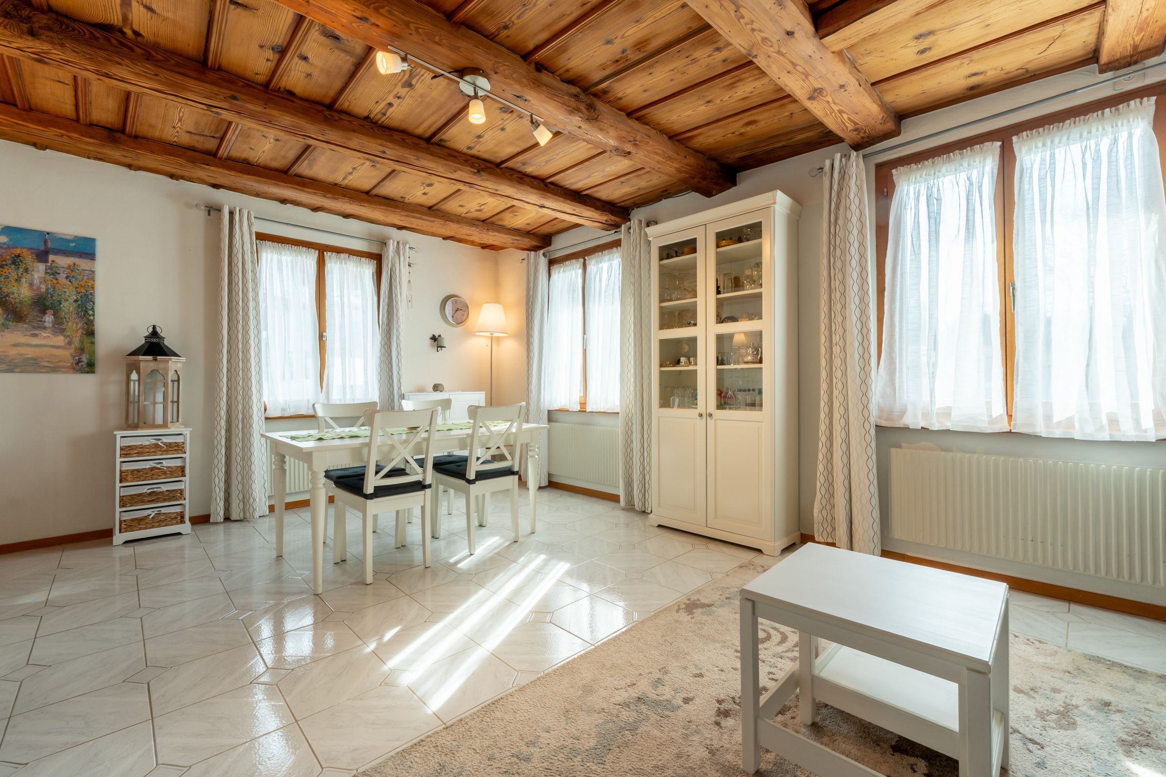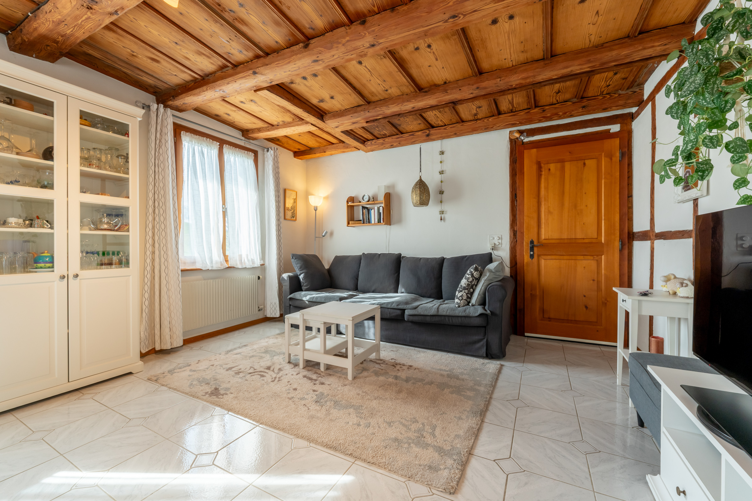 Diese charaktervolle 5.5-Zimmer-Wohnung erstreckt sich über das Ober- und Dachgeschoss eines besonderen Zweifamilienhauses und überzeugt mit viel Charme, grosszügigen Räumen sowie einer warmen Wohnatmosphäre. Sichtbare Holzdecken und Balken verleihen der Wohnung ein gemütliches Ambiente. Die Bushaltestelle befindet sich vor der Liegenschaft. Die nahe Autobahnzufahrt garantiert eine hervorragende Verkehrsanbindung.