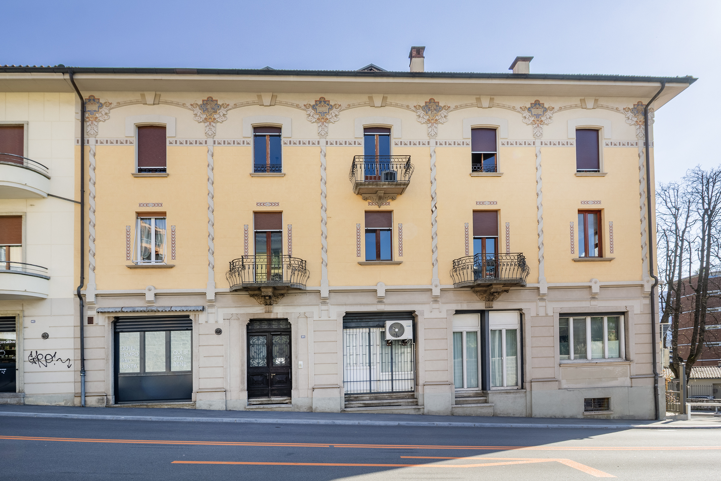 L’appartamento è situato in uno stabile dei primi 900, che è stato rinnovato ed ampliato nei primi anni 60. L’immobile è caratterizzato da una facciata esterna decorata e da dettagli dell’epoca. La posizione è nelle immediate vicinanze della stazione di Lugano ed è collegata in modo eccellente con tutte le vie di comunicazione. I tre piani fuori terra serviti da ascensore e si compone di sei unità.
