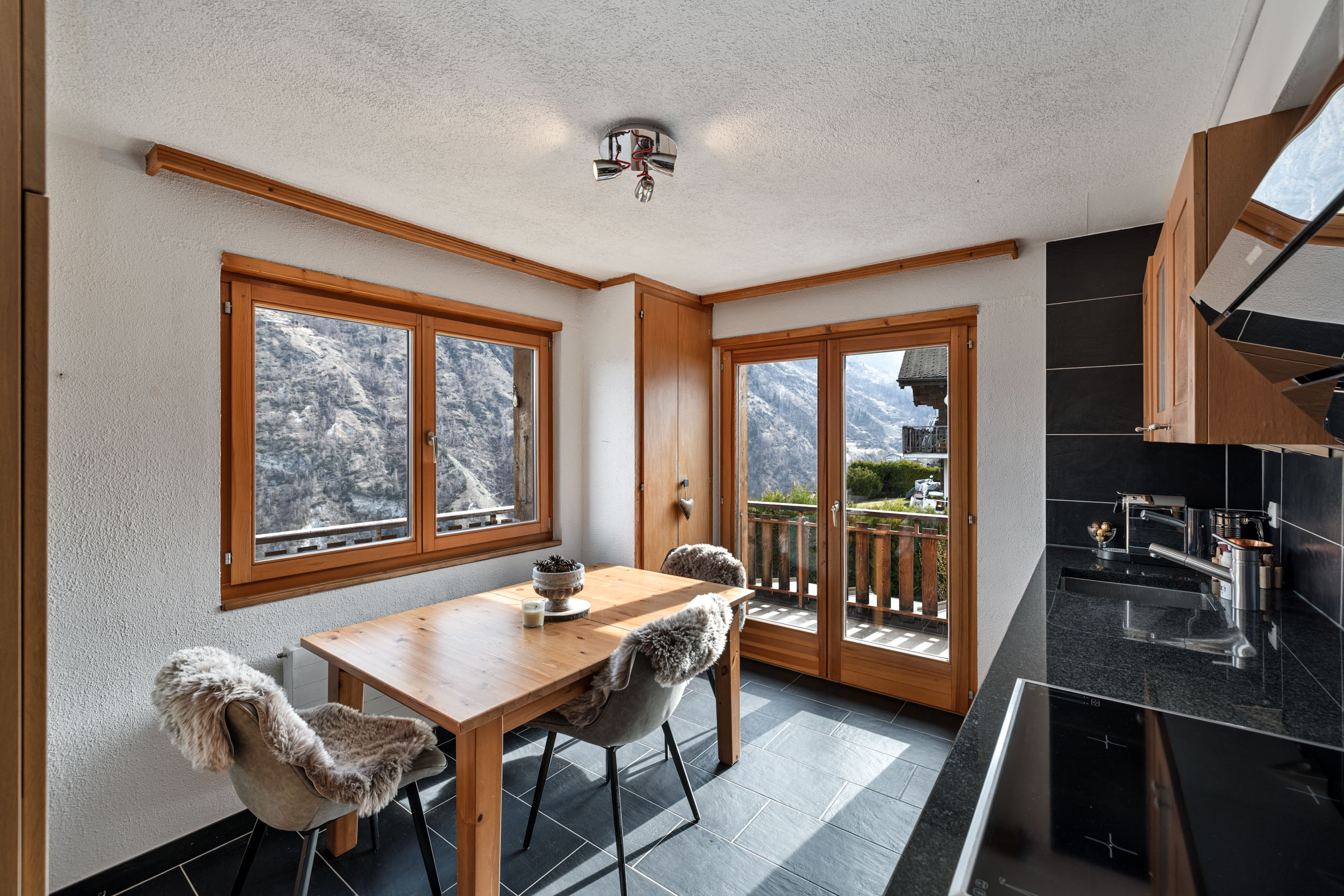À seulement vingt minutes de Sion et à proximité de la station de Thyon, ce chalet constitue une opportunité rare pour les personnes en quête d’authenticité, de luminosité et de nature, tout en restant proches des commodités et des activités de montagne.