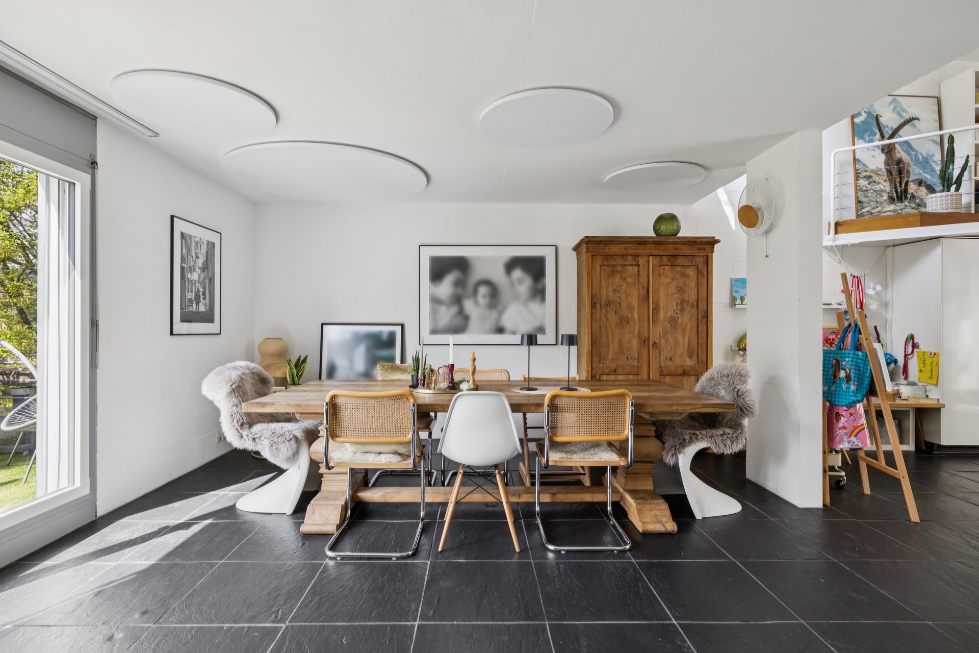 Ursprünglich aus zwei separaten Maisonette entstanden, wurde die Liegenschaft harmonisch zusammengelegt und bietet heute ein beeindruckendes Raumangebot mit insgesamt neun Zimmern. Fünf geräumige Schlafzimmer, darunter zwei grosszügige Elternschlafzimmer sowie drei Kinderzimmer, schaffen ideale Voraussetzungen für Familien oder Mehrgenerationenwohnen.
