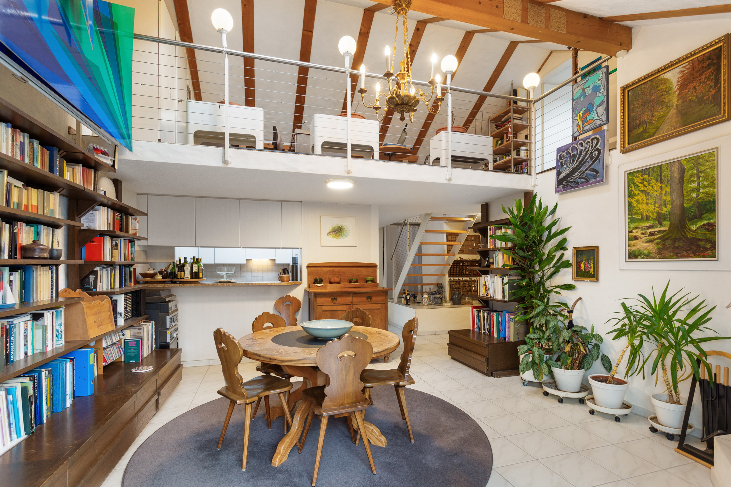 In einer kleinen Stockwerkeigentümergemeinschaft mit lediglich sechs Parteien erwartet Sie diese einzigartige und besondere 5.5-Zimmer-Maisonette-Eigentumswohnung. Die historische Scheune wurde 1994 zu den Wohneinheiten ausgebaut.