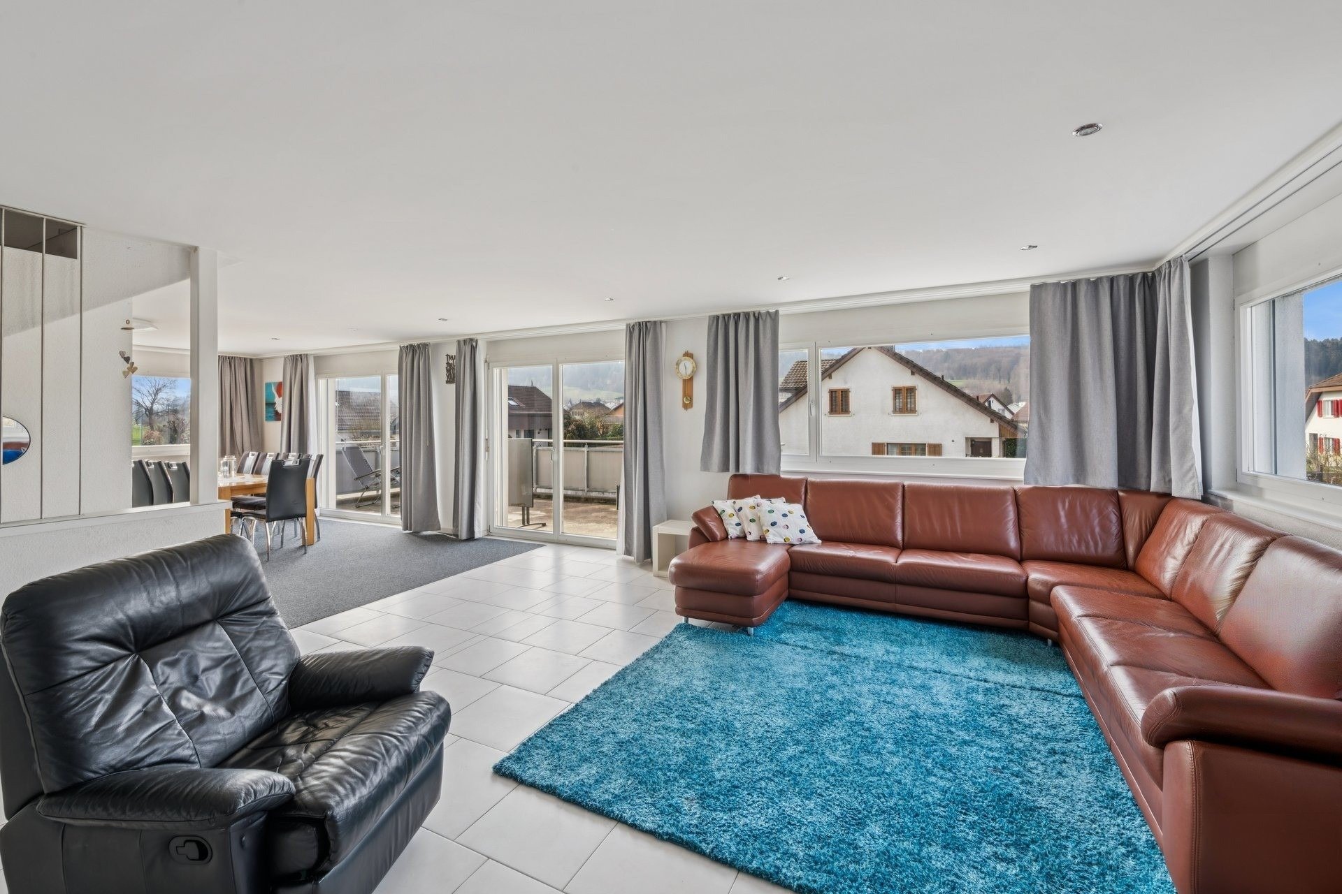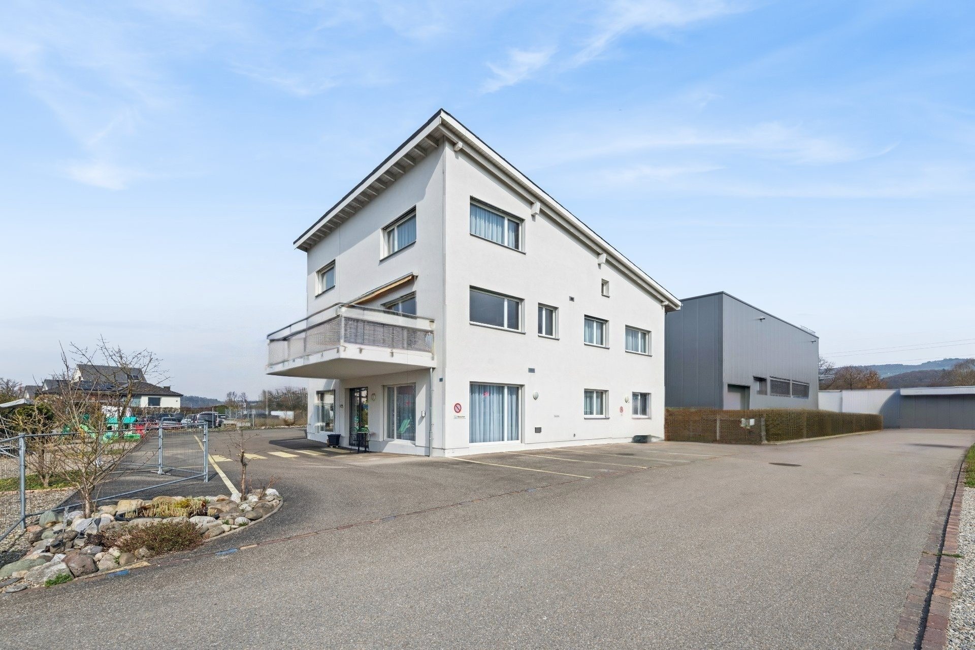 Diese grosszügige, gepflegte Wohn- und Gewerbeimmobilie präsentiert sich an idealer, sonnenverwöhnter Lage. Der Kindergarten, die Primarschule, die Einkaufsmöglichkeiten und der öffentliche Verkehr sind innerhalb von wenigen Gehminuten erreichbar.