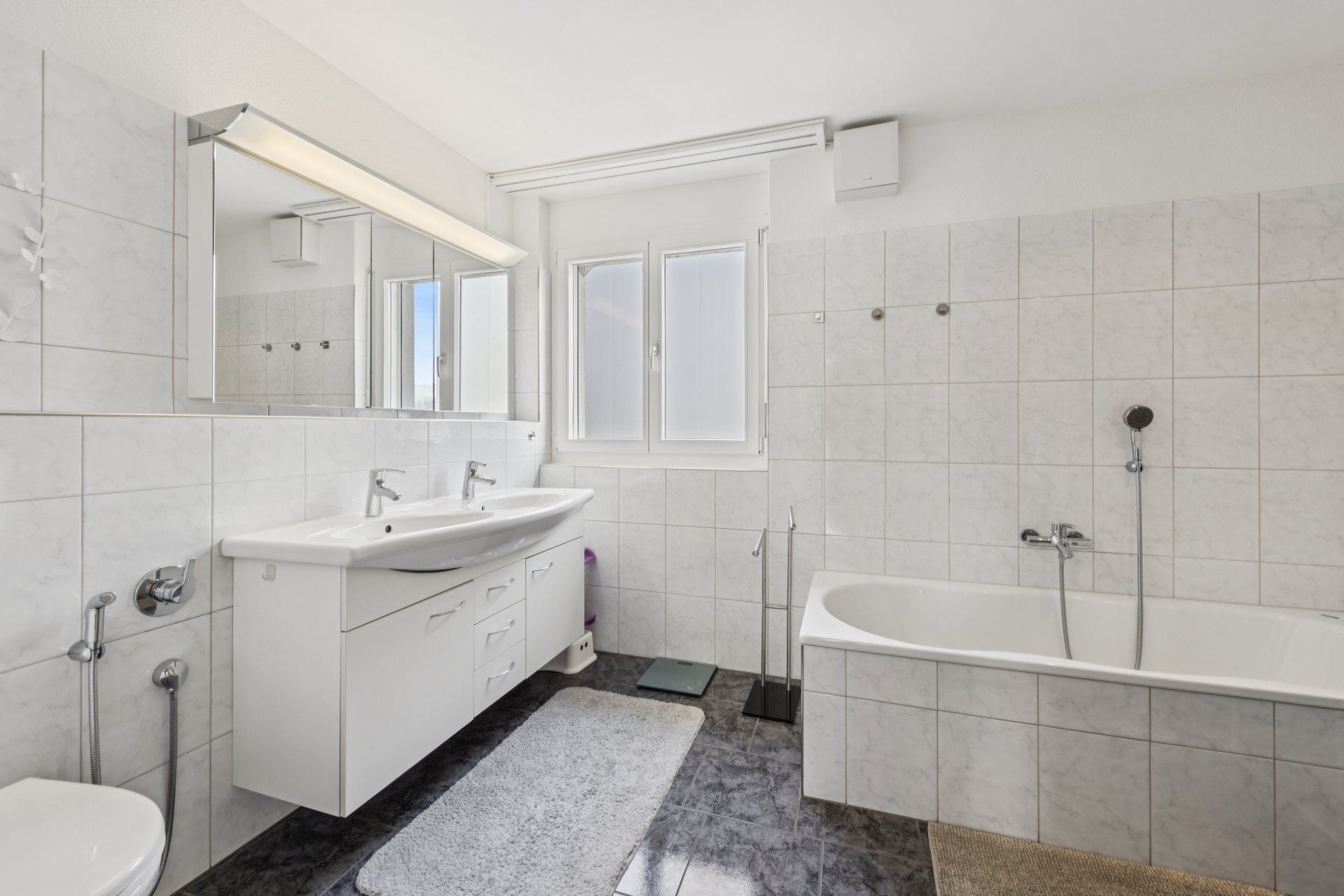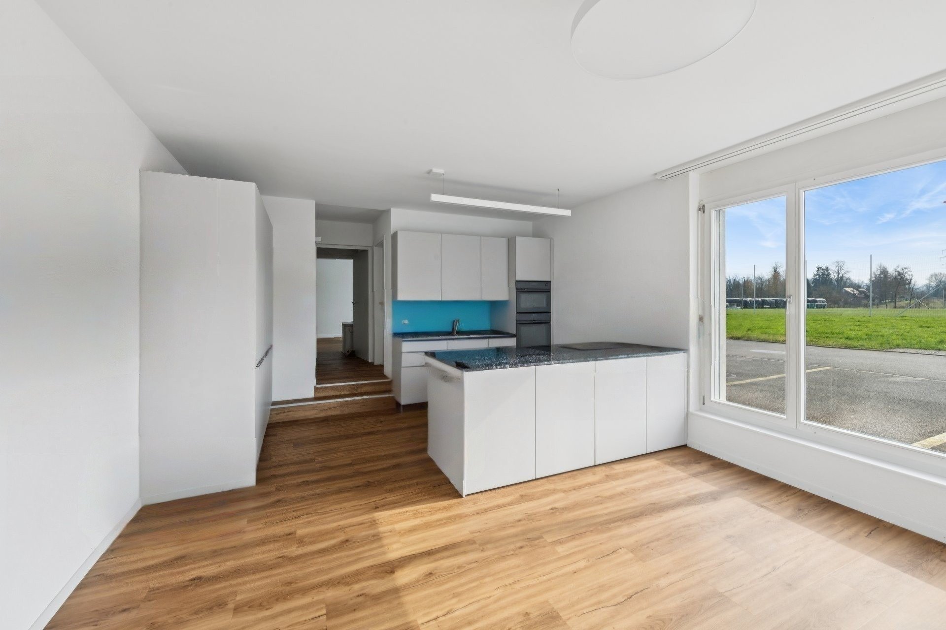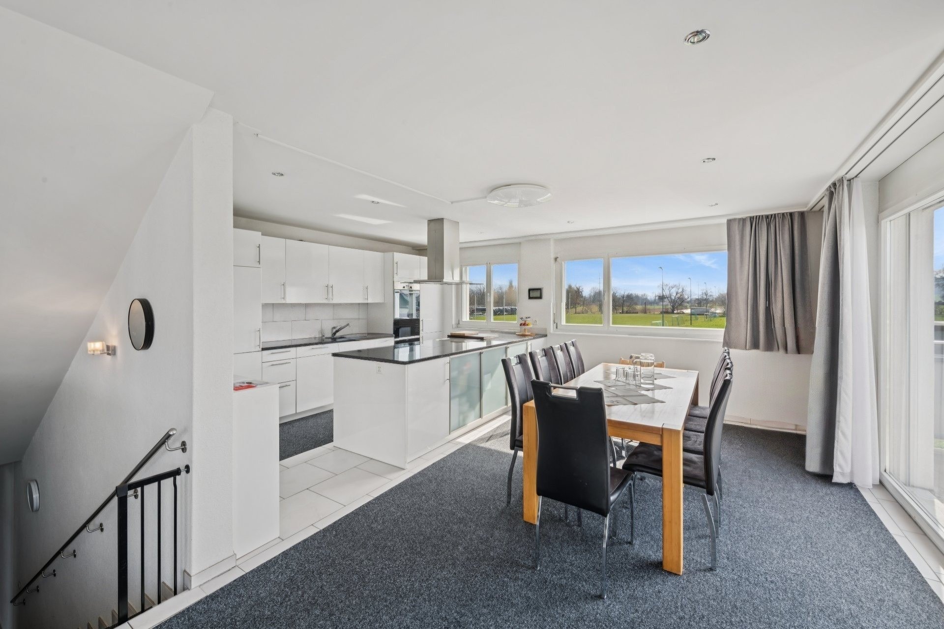 Die moderne und komfortable Maisonette begeistert durch die grossflächigen Fensterfronten und das zeitlose Ambiente. Auf der ersten Etage beeindruckt der grosszügige Wohn- und Essbereich mit der angegliederten offenen Küche, die dank der Kochinsel und sehr viel Stauraum nichts zu wünschen übrig lässt. Ergänzt wird diese Wohnebene mit vier Schlafzimmern, einem geräumigen Bad mit Badewanne, Dusche, Doppellavabo und WC sowie mit dem herrlich sonnigen Balkon.