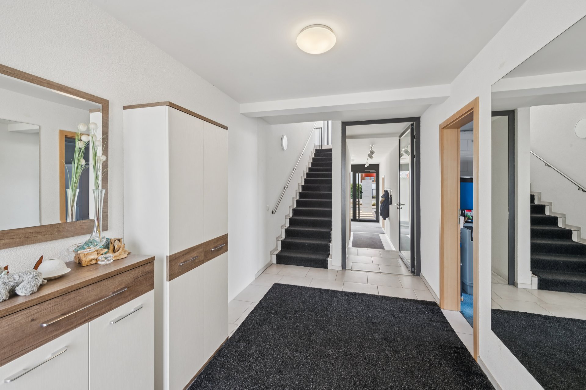 Die ansprechende Liegenschaft überzeugt mit dem umfangreichen Angebot an grossen Wohn- und Geschäftsräumen, die sich vielfältig nutzen lassen. Im Erdgeschoss befindet sich der einladende Eingangsbereich, der einerseits zu den Gewerberäumen und andererseits zum Wohnbereich führt, der sich über das erste Obergeschoss und das Dachgeschoss verteilt.