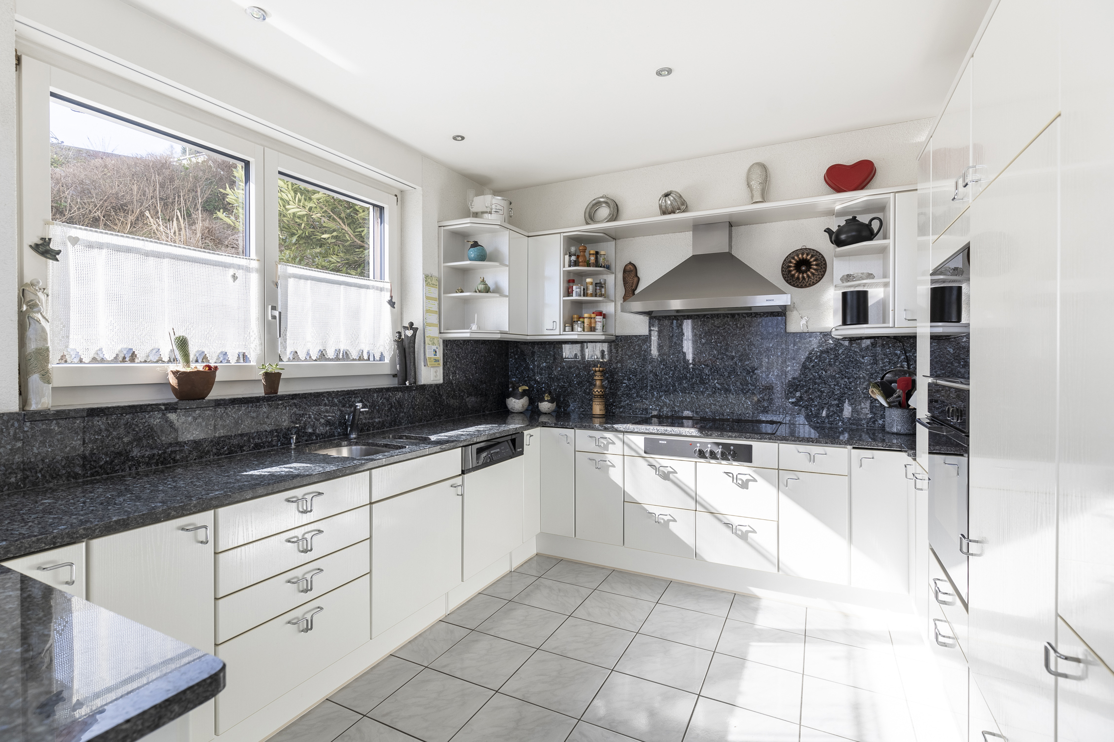 Die gepflegte, einzugsbereite Liegenschaft überzeugt mit einer cleveren Architektur, welche die topografischen Gegebenheiten des Sonnenhangs optimal ausnutzt. Durch die umfangreichen Fensterfronten und die halbgeschossige Anordnung der Räume mit Korridoren, die zum Wohnraum balkonartig offen gestaltet sind, entsteht ein lichtdurchflutetes und luftiges Wohnerlebnis.