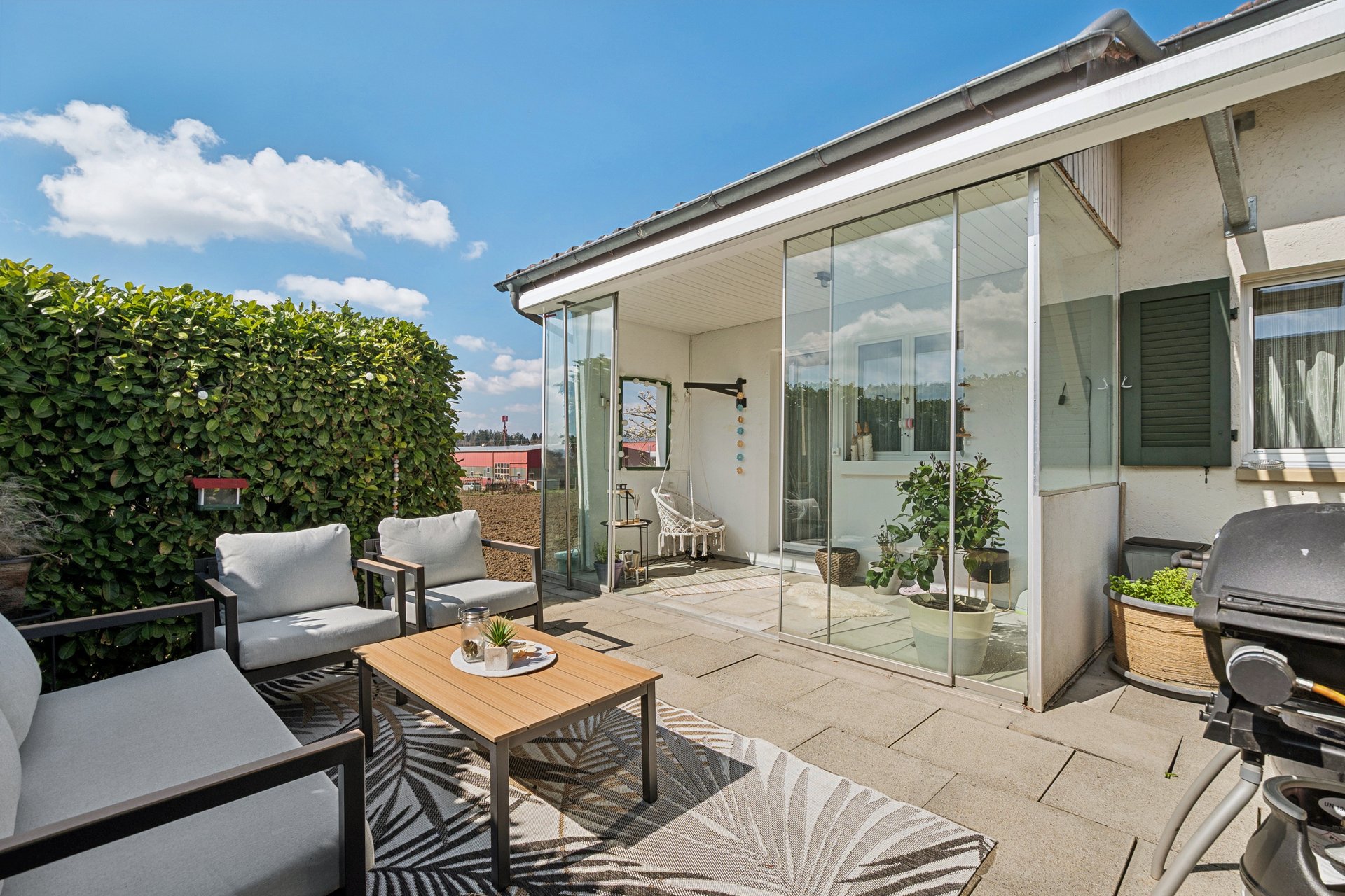Der wunderbare Umschwung begeistert mit mehreren Sitzplätzen, die mit viel Privatsphäre überzeugen – perfekt zum Lesen unter freiem Himmel oder einfach nur, um die Seele baumeln zu lassen.