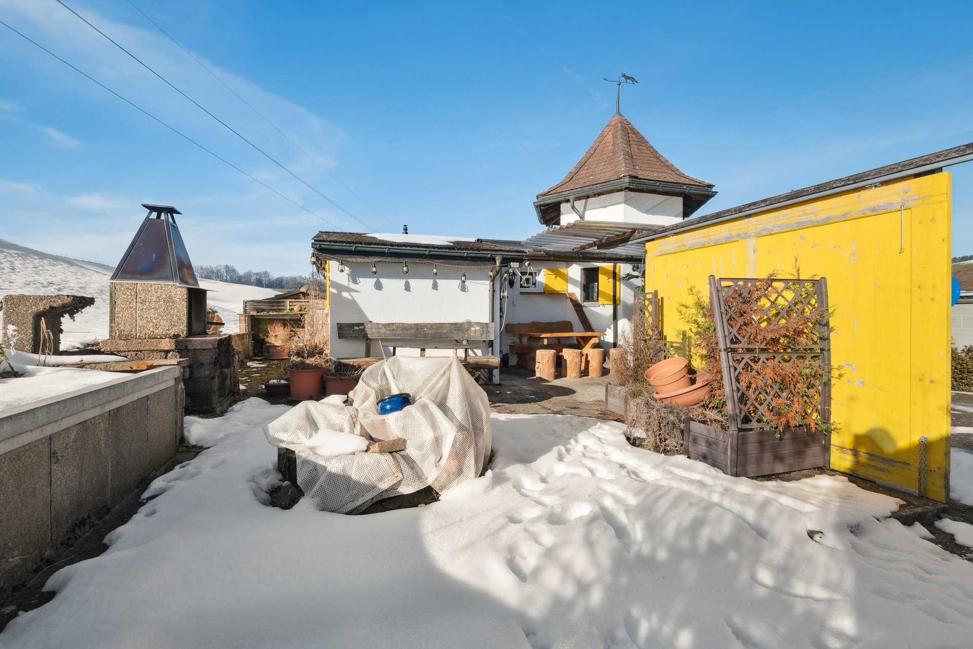 Das Haus wurde 1975 erstellt und ca. 1995 mit dem Türmchenbau erweitert. Die Wohnfläche verteilt sich auf den Wohn-/Essbereich mit Küche, ein Zimmer sowie ein Badezimmer. Im Untergeschoss steht ein praktischer Nebenraum/Keller zur Verfügung. Der Keller verfügt über einen separaten Aussenzugang. Der Tiba-Herd in der Küche sorgt für behagliche Wärme und unterstreicht den heimeligen Charakter dieser Liegenschaft.