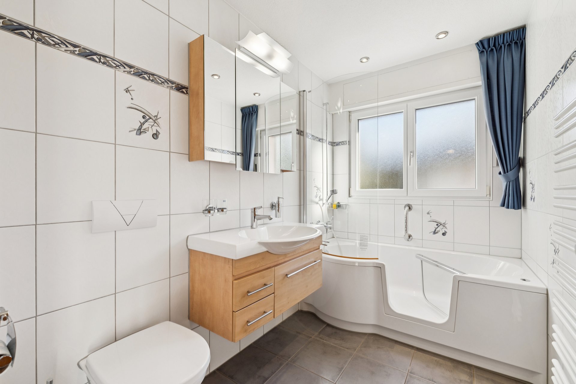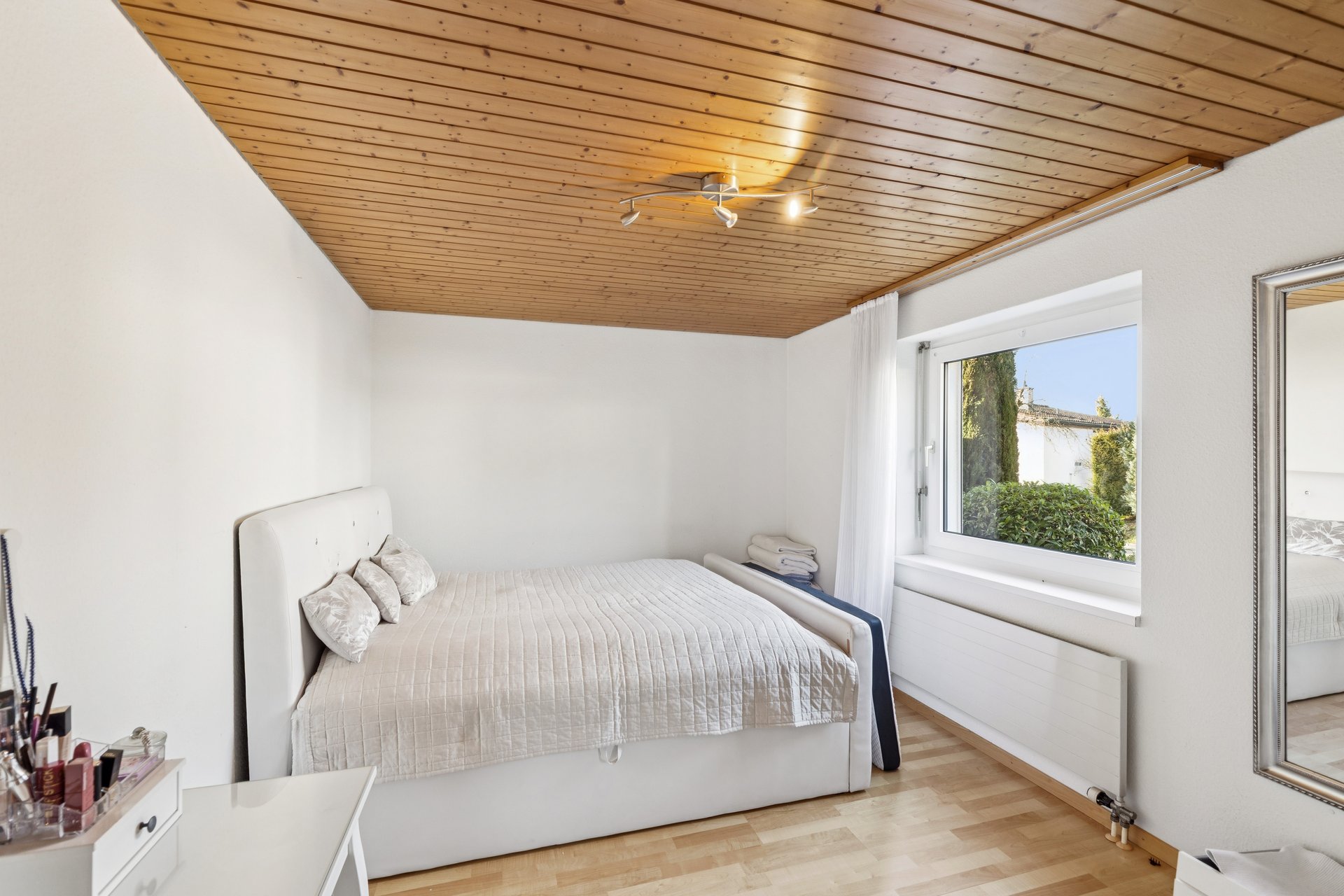Diese nach Süden ausgerichtete Liegenschaft begeistert mit einem umfangreichen Raumangebot, das zwei Wohnungen und zahlreiche Neben- und Kellerräume umfasst. Sie betreten die Hauptwohnung aufgrund der Hanglage ebenerdig von der Quartierstrasse her ins eigentliche Obergeschoss. Diese Wohnebene beinhaltet vier Zimmer von unterschiedlicher Grösse sowie eine Essdiele mit der angrenzenden Küche. Zudem beeindruckt das herrschaftliche Wohnzimmer mit dem stilvollen Cheminée und der vorgelagerten Terrasse. Eine Gästetoilette und das Bad mit Badewanne ergänzen zusammen mit der zweiten Terrasse das Geschoss auf ideale Weise.