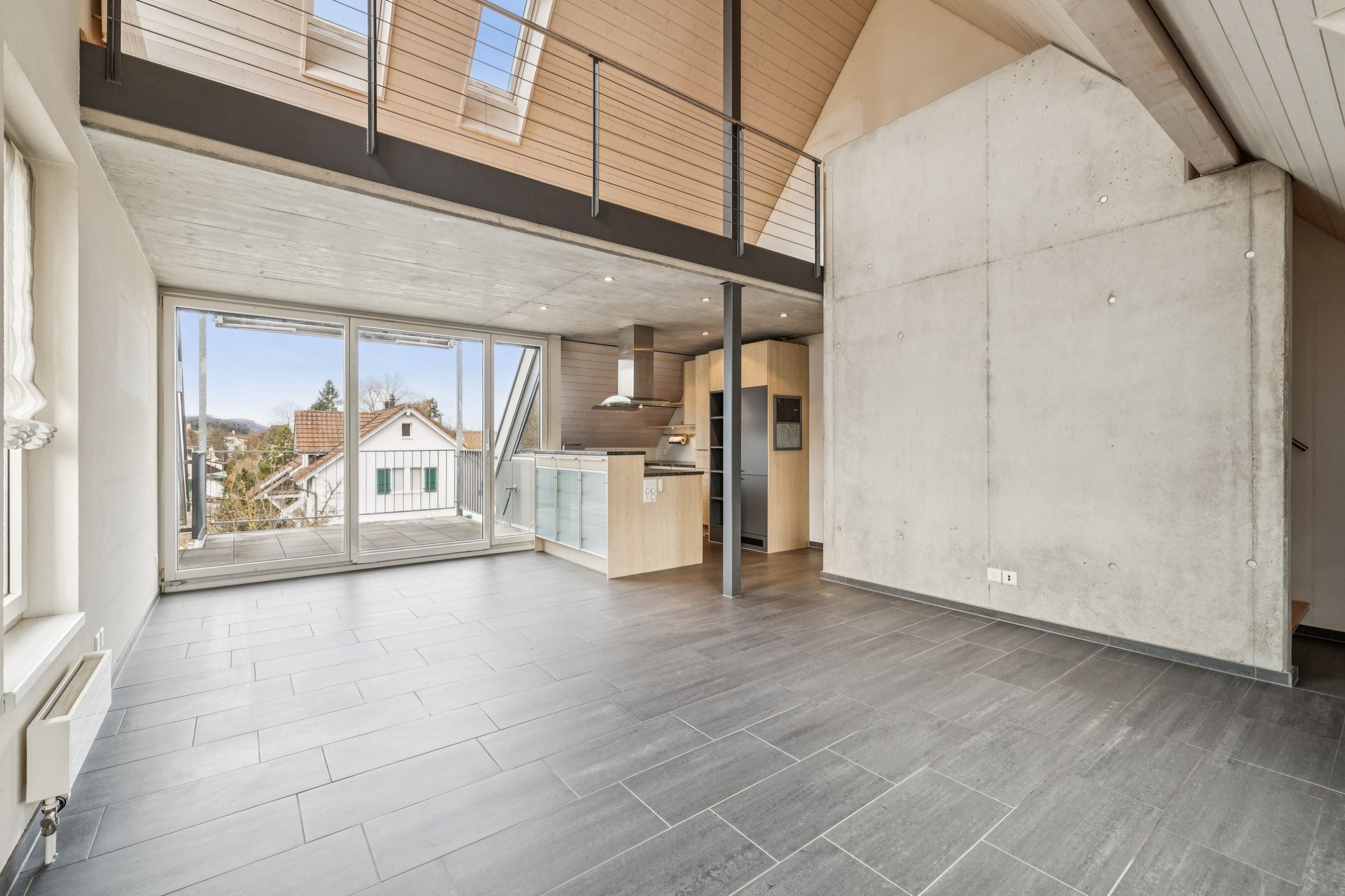 Im ersten Obergeschoss erwarten Sie zwei geräumige Zimmer – eines davon mit Balkon – sowie das Familienbad. Im zweiten Stock beeindruckt der Wohn- und Essbereich mit der Grösse und begeistert zudem mit der integrierten offenen Küche und der vorgelagerten gedeckten Loggia – perfekt, um in der warmen Jahreszeit im Freien zu essen und die Sonne zu geniessen.