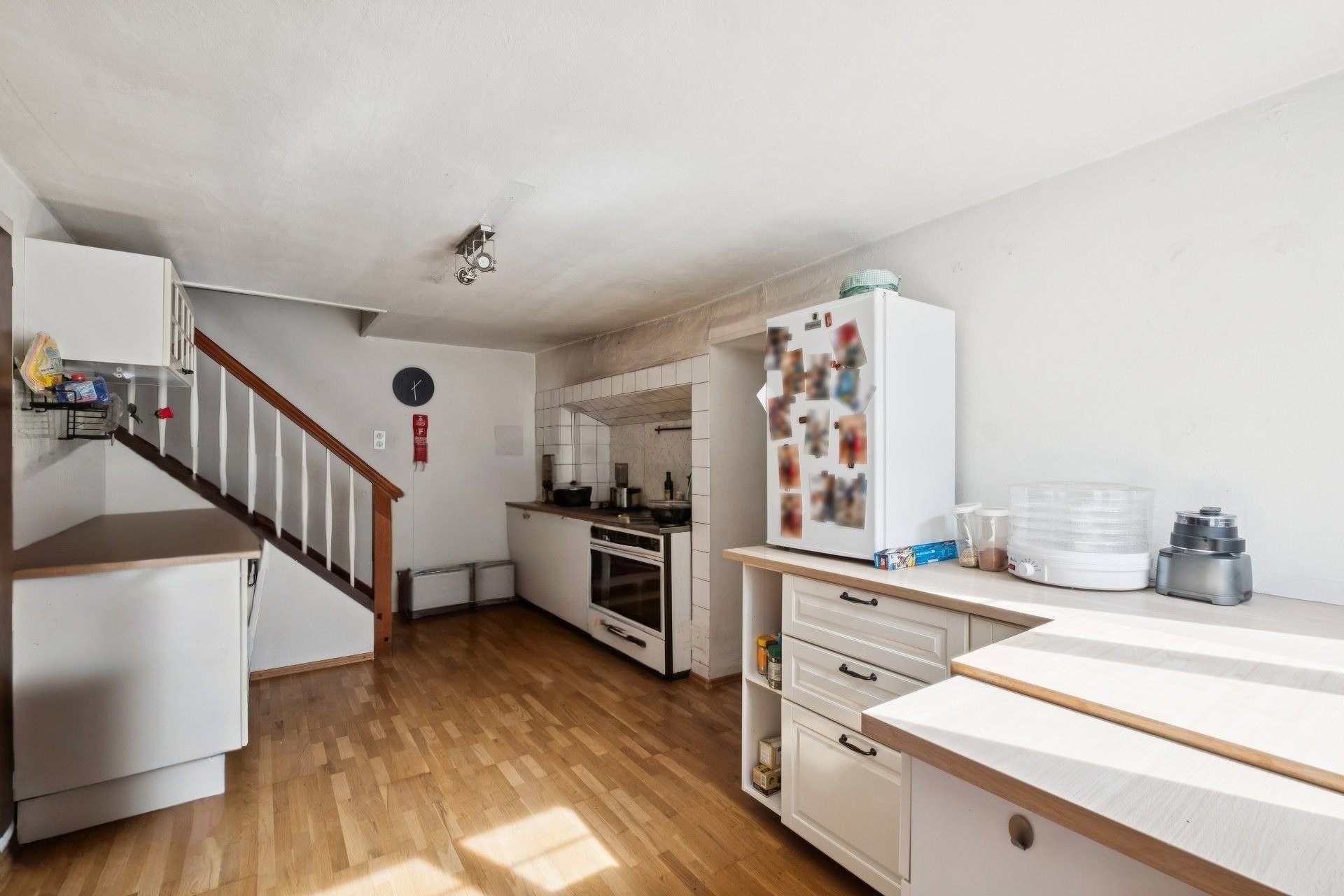 Vom Eingangsbereich gelangen Sie direkt in die funktional ausgestattete Küche. Das grosszügige Wohnzimmer mit heimeligem Kachelofen bildet das Herzstück des Erdgeschosses. Über einen Vorraum erreichen Sie das Badezimmer mit Badewanne, das separate WC sowie den Naturkeller, ideal zur Lagerung von Vorräten.