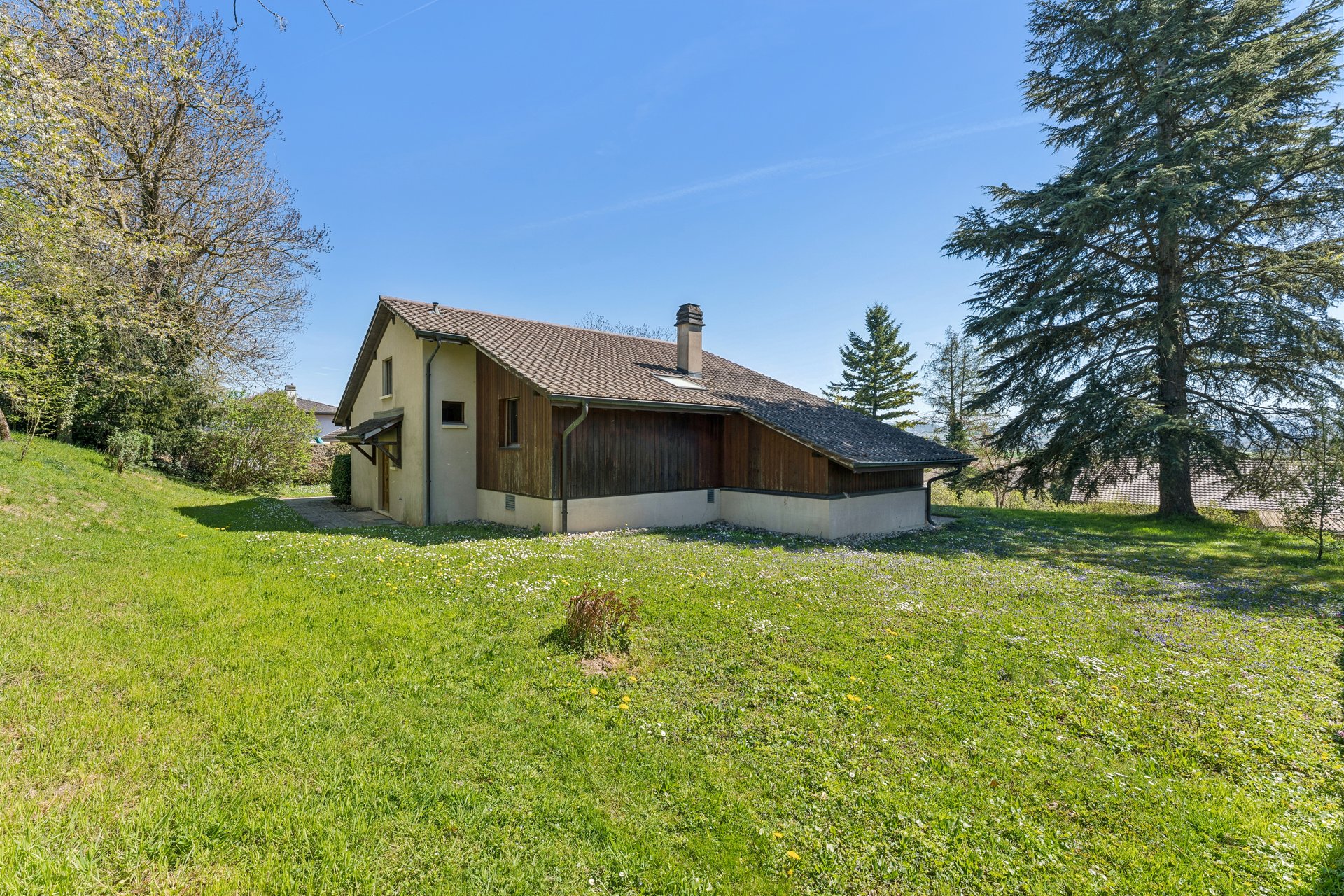 Cette propriété de 5,5 pièces se situe sur un magnifique terrain de 1449m², à la situation enviable, ensoleillé, au calme et laissant place à de beaux espaces et à de nombreuses possibilités d'aménagement grâce à son volume de 1'164m³.