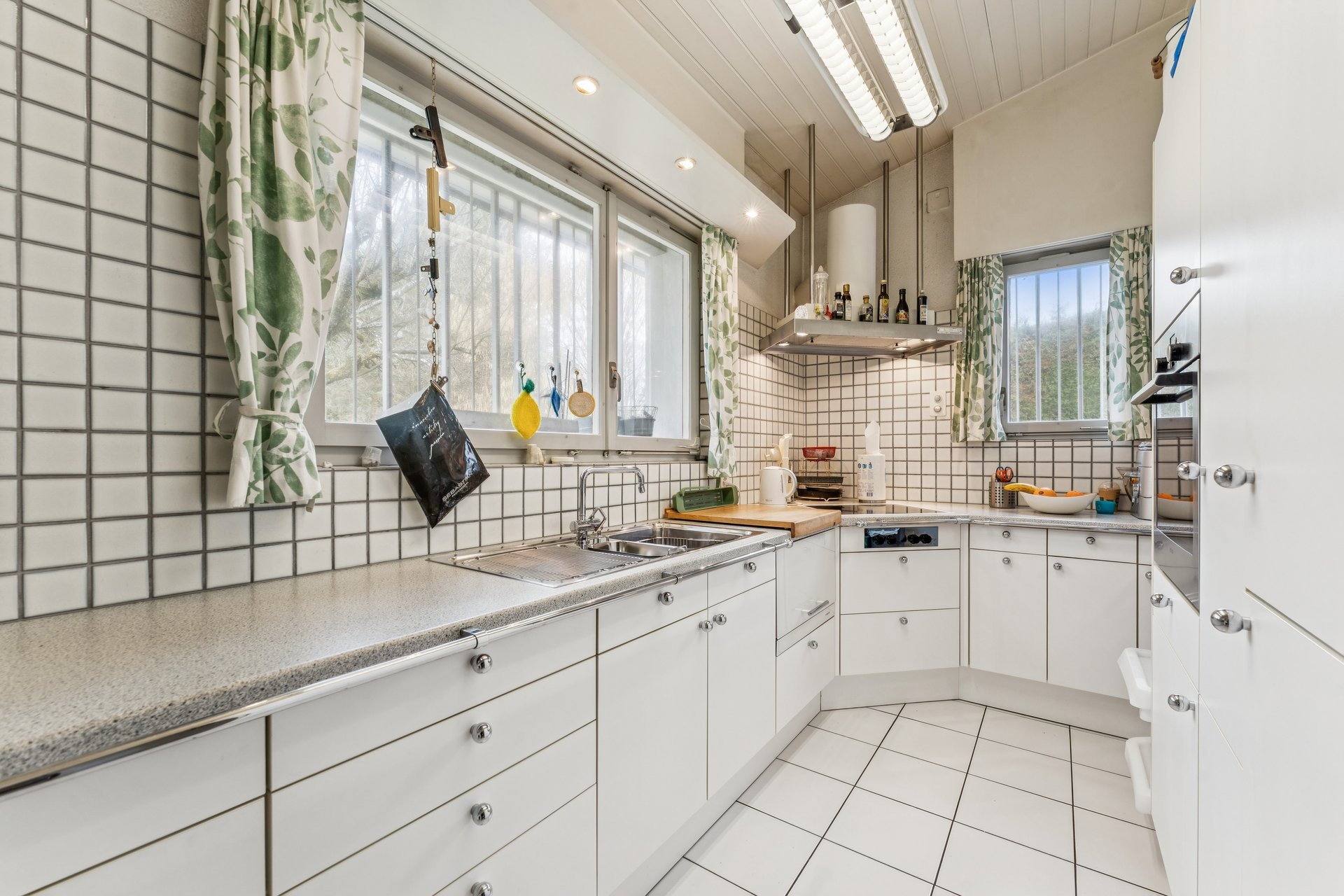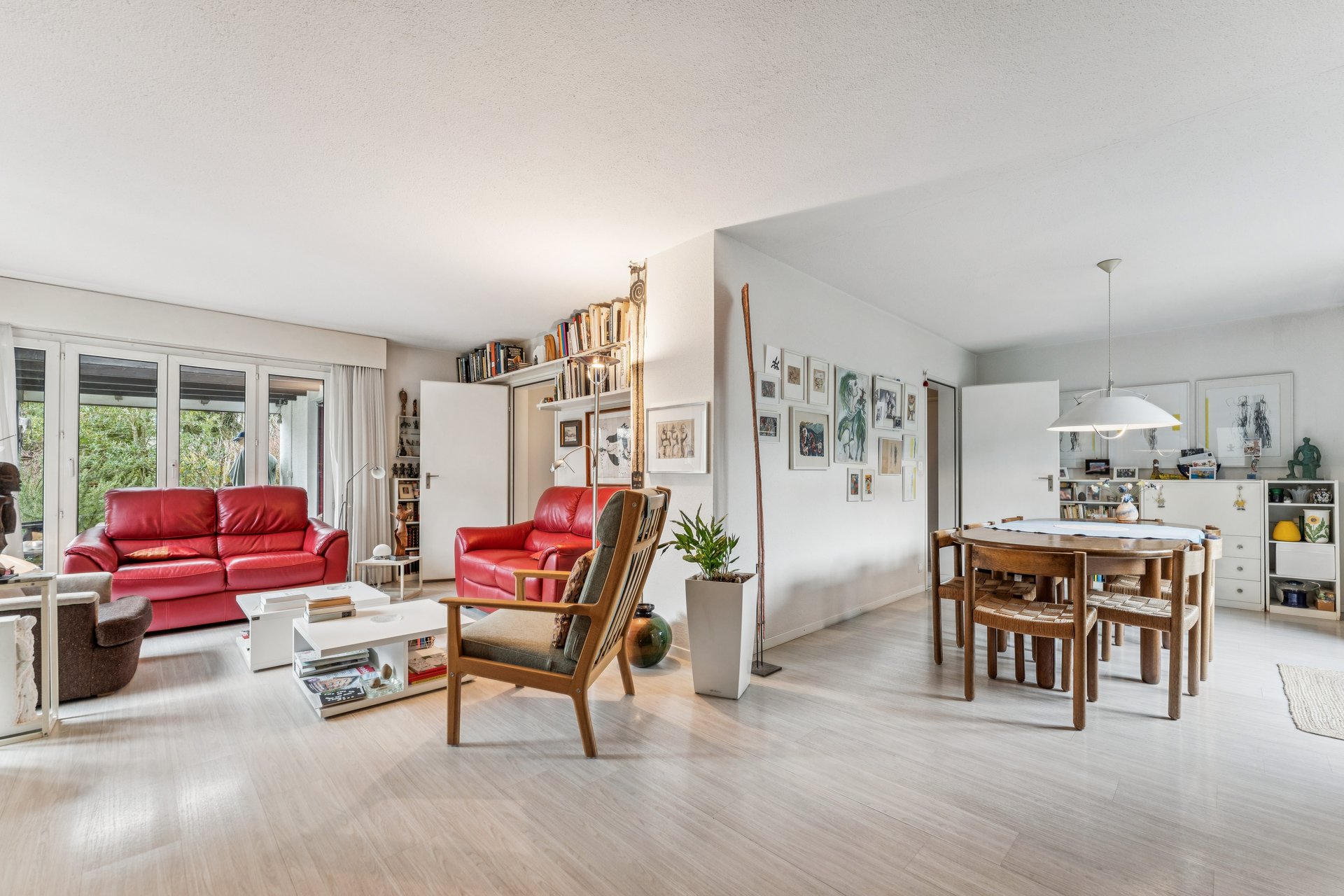 Der helle Wohn- und Essbereich mit Zugang zu zwei gemütlichen Sitzplätzen bildet das Herz des Hauses – ideal für Familienmomente drinnen wie draussen. Die separate Küche verfügt über genügend Raum für gemeinsames Kochen und Geniessen.