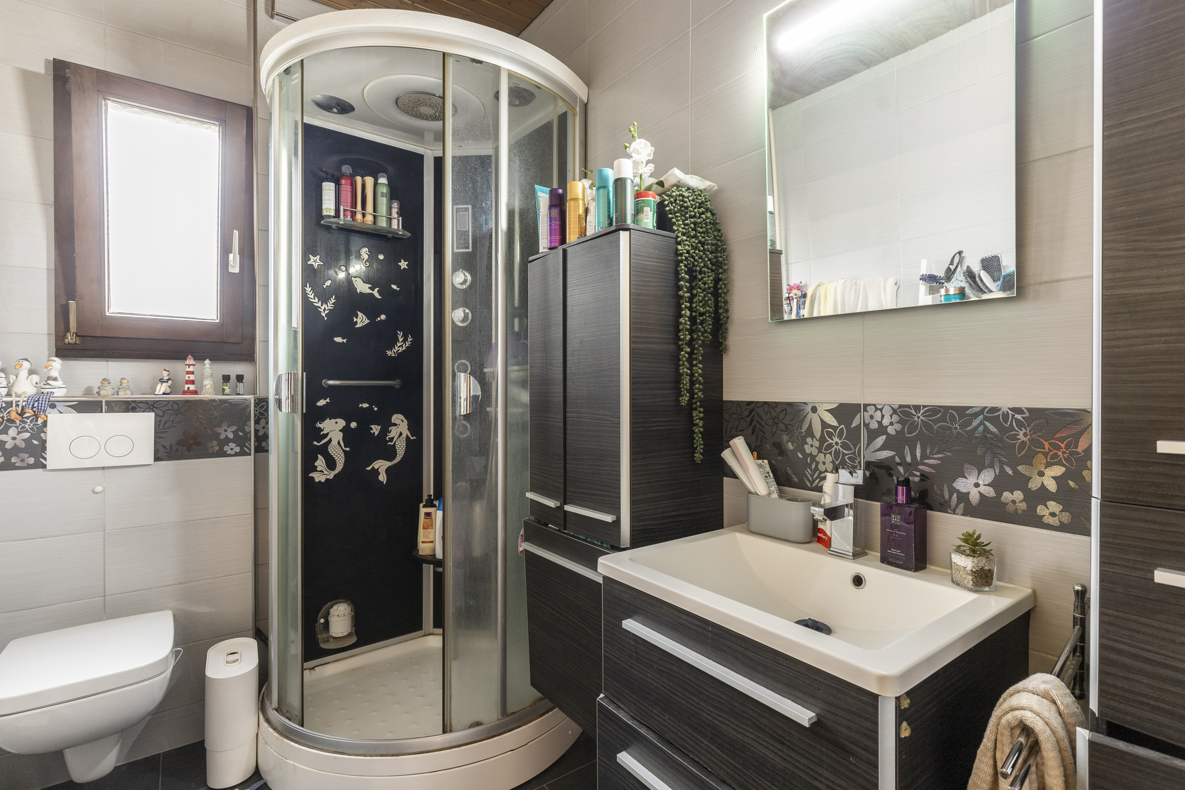Die Wohnetage im ersten Obergeschoss bietet Ihnen ein harmonisches Wohngefühl: eine geschlossene Küche, ein modernes Badezimmer mit Dusche sowie helle Wohn- und Schlafräume schaffen ein gemütliches Ambiente für die ganze Familie.