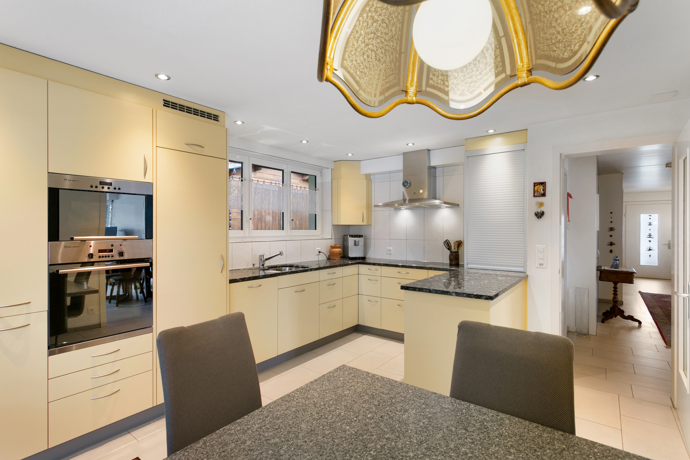 Praktische Nebenräumlichkeiten wie ein Keller, eine grosse Waschküche und ein Estrich, der sich über das gesamte Stockwerk erstreckt, sorgen für viel Stauraum. Für Ihre Fahrzeuge stehen Ihnen auf dem Strassenniveau ein Garagenplatz sowie ein Aussenparkplatz zur Verfügung.