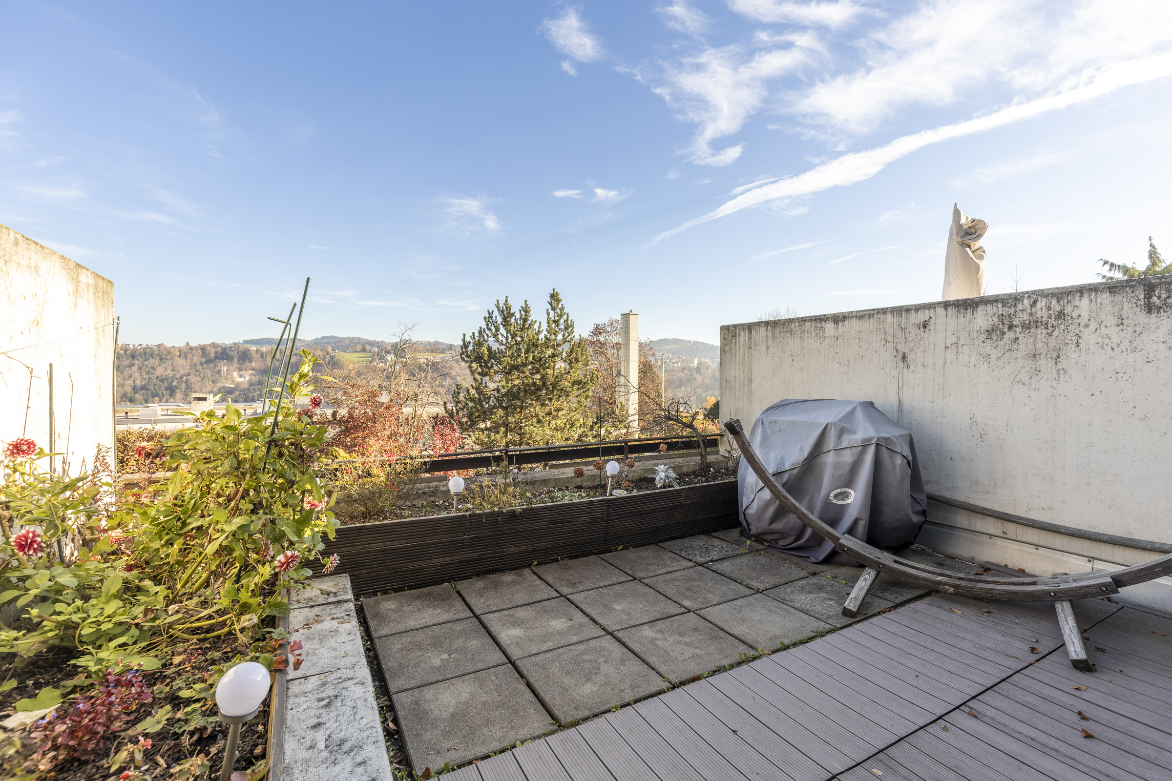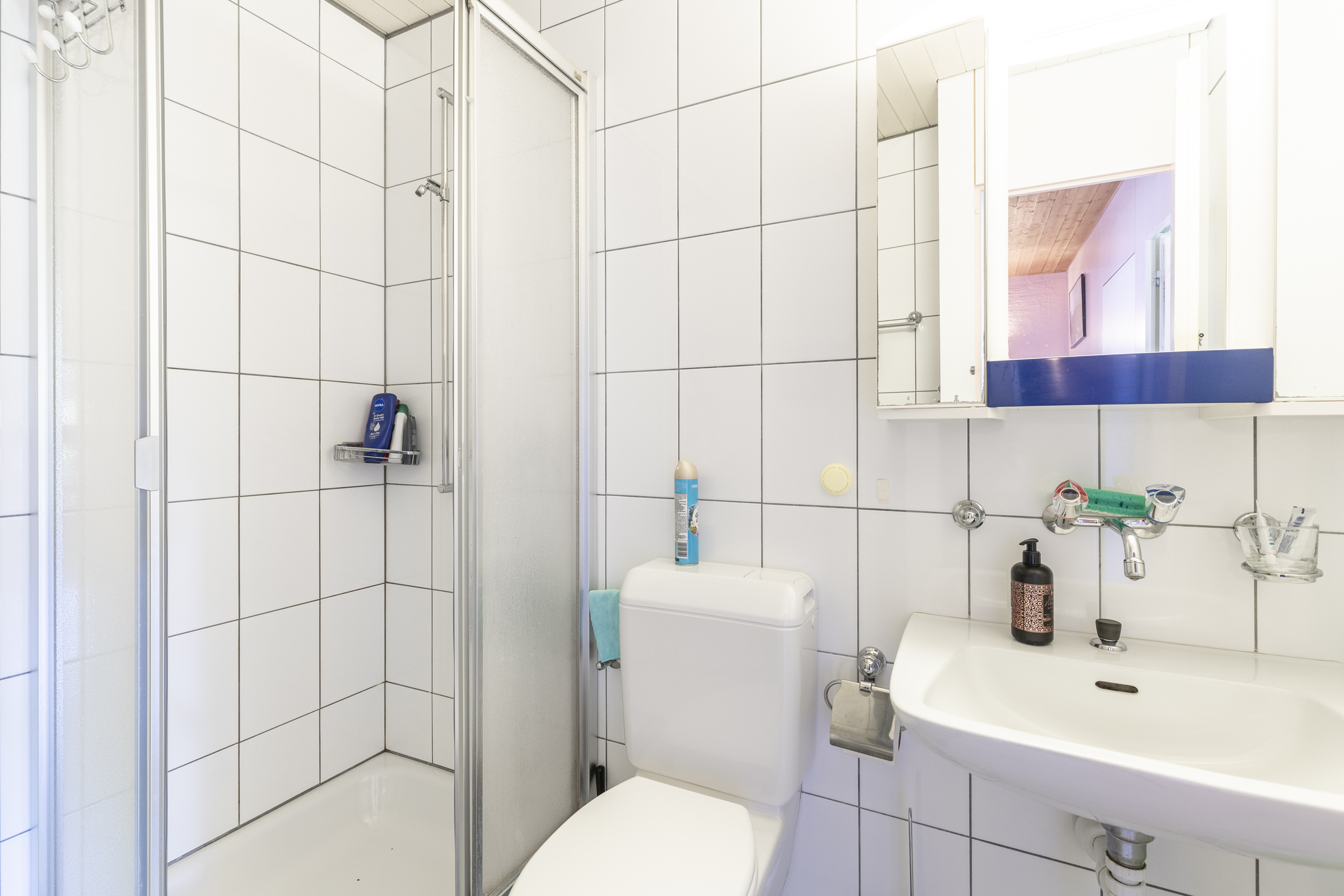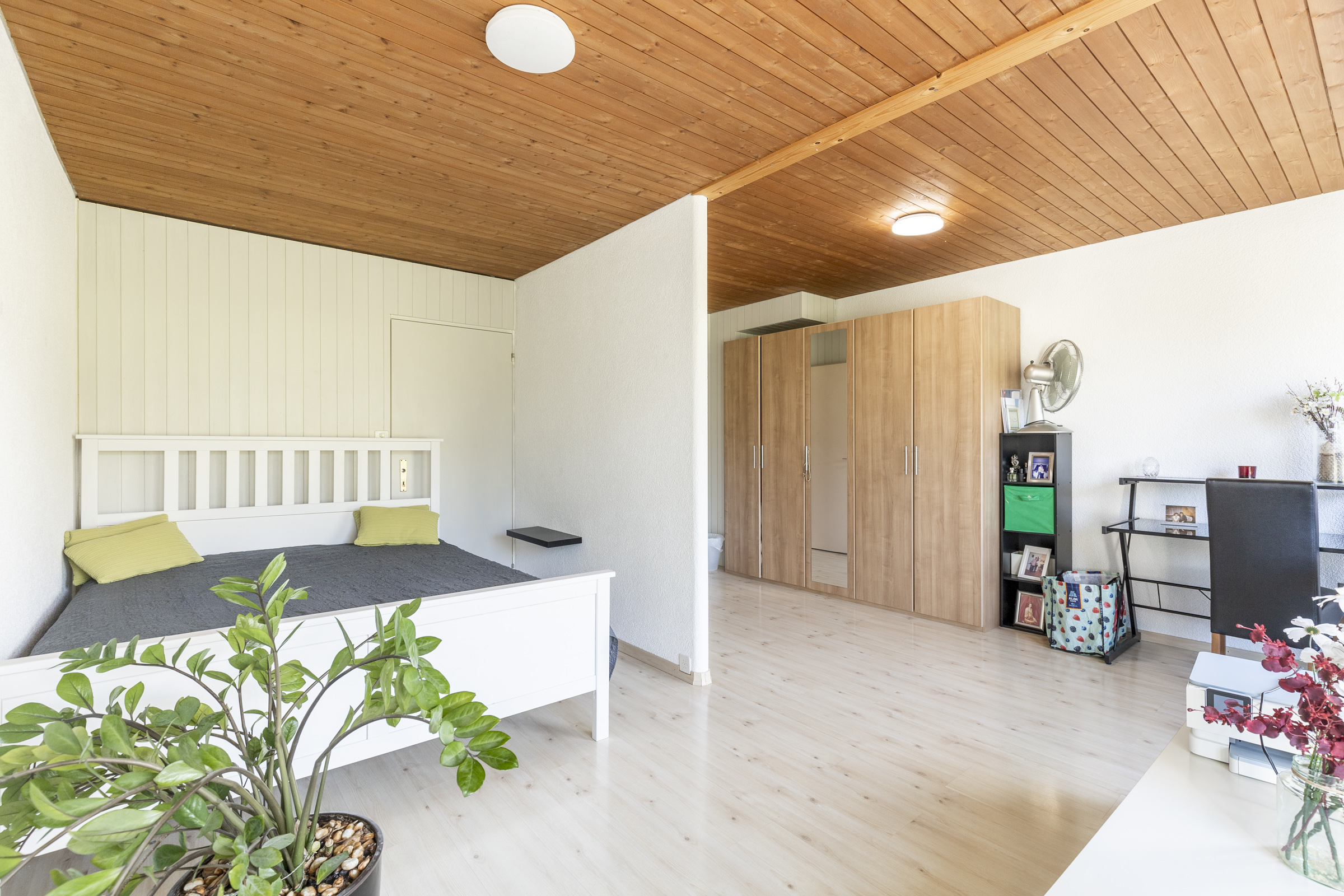 In der oberen Etage erwarten Sie zwei weitere Zimmer und das Badezimmer mit Dusche und WC, das grosse Zimmer bietet Ihnen zusätzlich viele Gestaltungsmöglichkeiten. Mit zwei Balkonen, dem Garten und einer Terrasse heisst es bei schönem Wetter: ab nach draussen. Richtig luxuriös ist auch das Hallenbad und die Sauna, das zur Siedlung gehört und gemeinschaftlich genutzt werden kann. Hier machen Wellness und Sport besonders viel Spass!