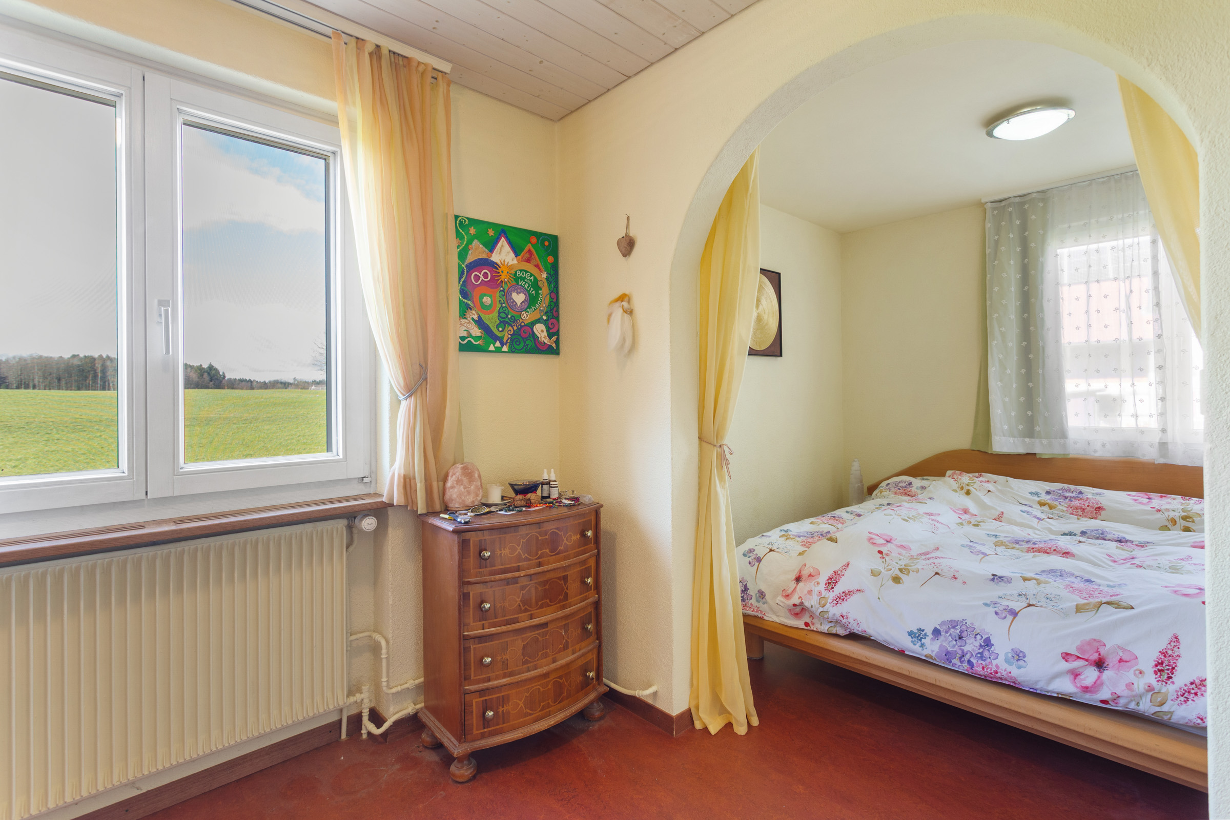 Im Erdgeschoss befinden sich zwei gut geschnittene Schlafzimmer, die vielseitige Nutzungsmöglichkeiten bieten. Die ruhige Lage und der angenehme Lichteinfall sorgen für eine entspannte Wohnatmosphäre. Besonders praktisch: Alle wichtigen Wohnbereiche finden Sie auf derselben Ebene. Dies ermöglicht komfortables Wohnen ohne Treppen.