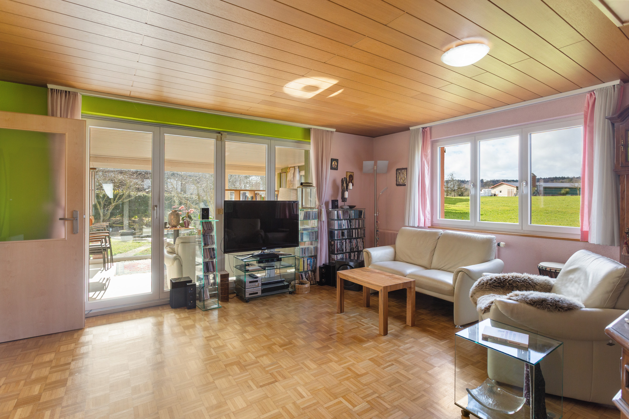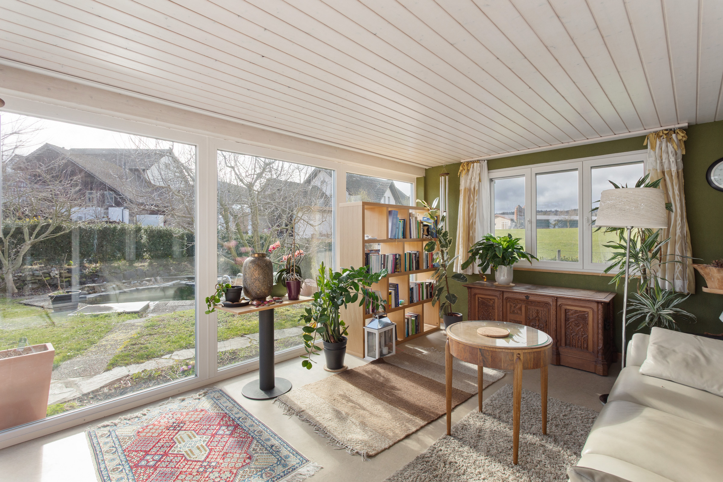 Als besonderes Highlight erweist sich der beheizte Wintergarten. Ob als ruhige Lese-Oase, kreativer Arbeitsraum oder eleganter Essbereich – hier geniessen Sie das ganze Jahr Licht, Wärme und den direkten Blick ins Grüne.