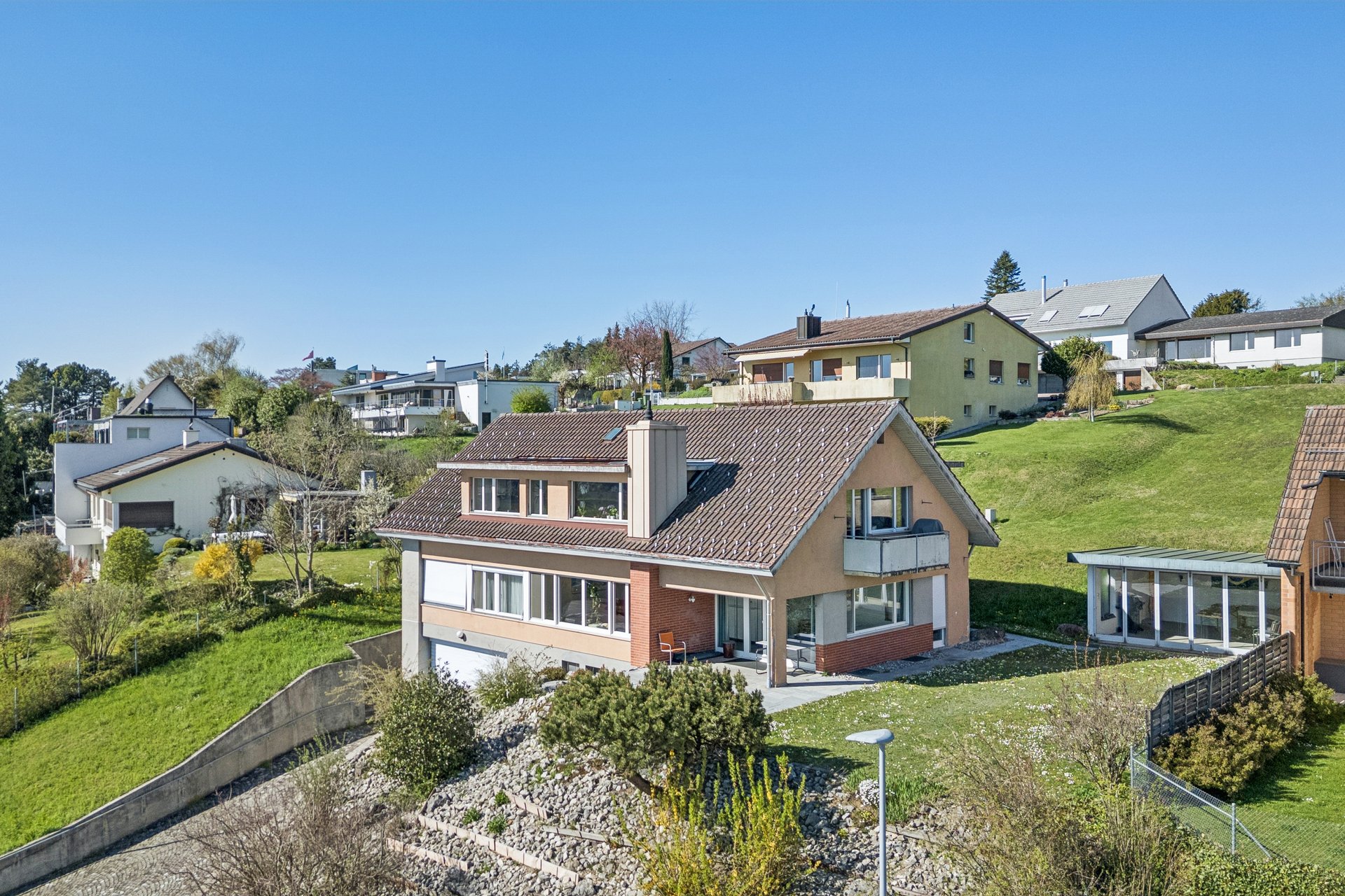 Besonders hervorzuheben ist die wunderbare Aussicht ins Grüne sowie die optimale Ausrichtung am Sonnenhang, welche ganztägig für eine helle und freundliche Wohnatmosphäre sorgt.