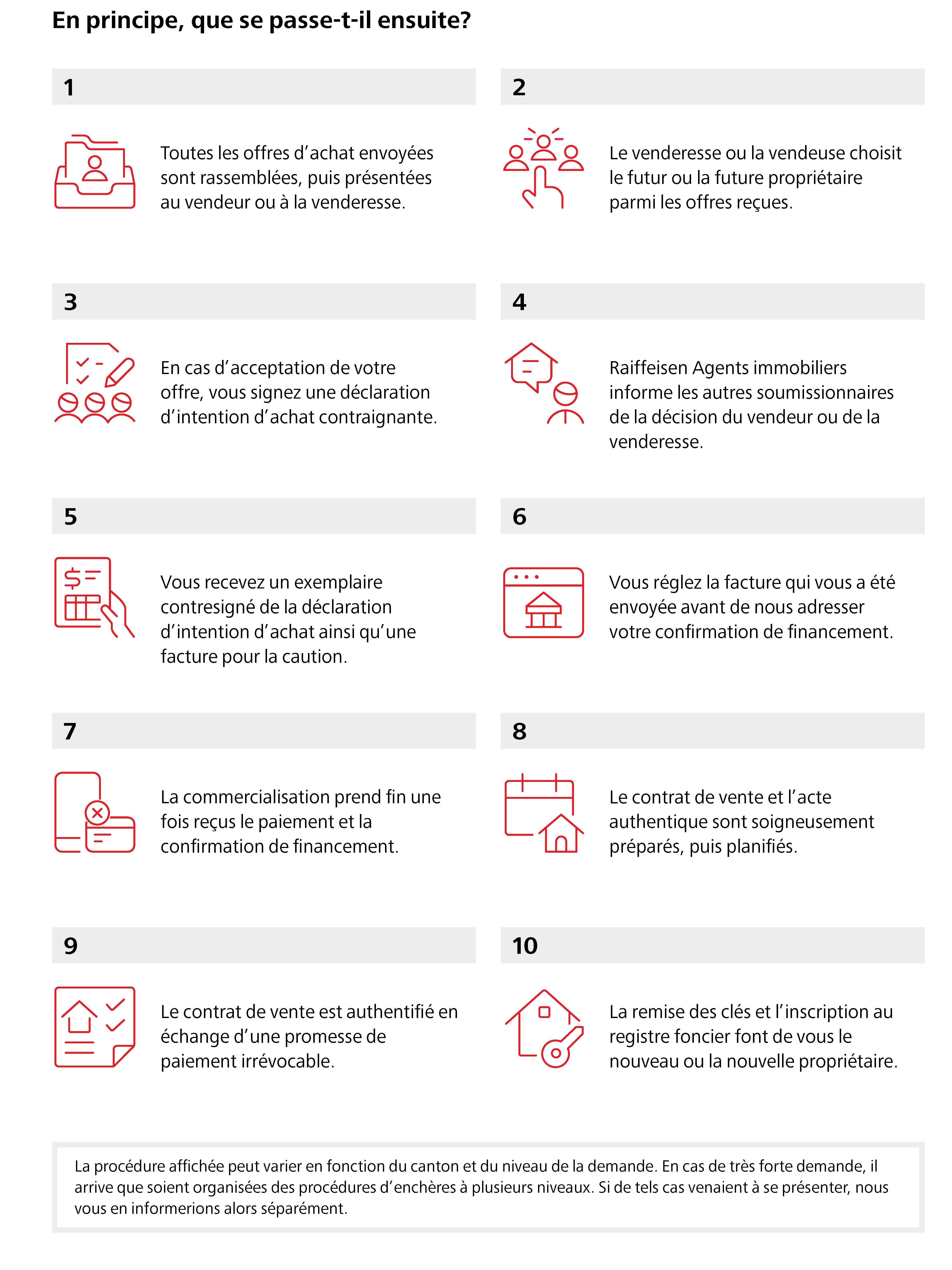 Chez Raiffeisen Agents immobiliers, le processus de vente d’un bien se déroule généralement comme suit: