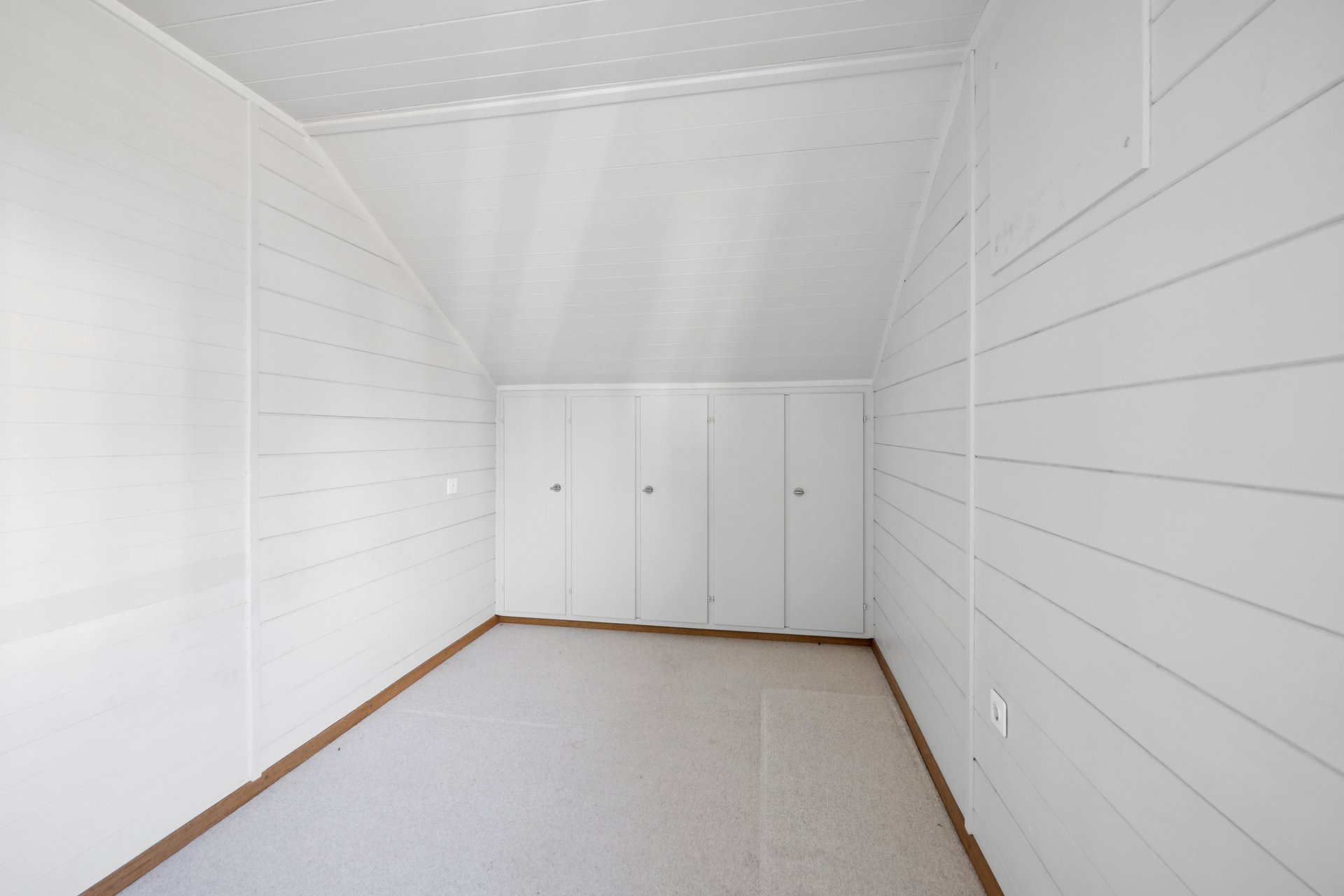 Im Erdgeschoss befinden sich ein gemütliches Wohnzimmer, ein Esszimmer sowie die Küche. Auf halber Ebene zwischen Erd- und Obergeschoss steht ein WC zur Verfügung. Die obere Etage umfasst zwei Schlafzimmer und zwei Abstellräume, die sich bei Bedarf zu zusätzlichem Wohnraum umbauen lassen. Im Untergeschoss liegt das Badezimmer, ergänzt durch praktische Kellerräume.