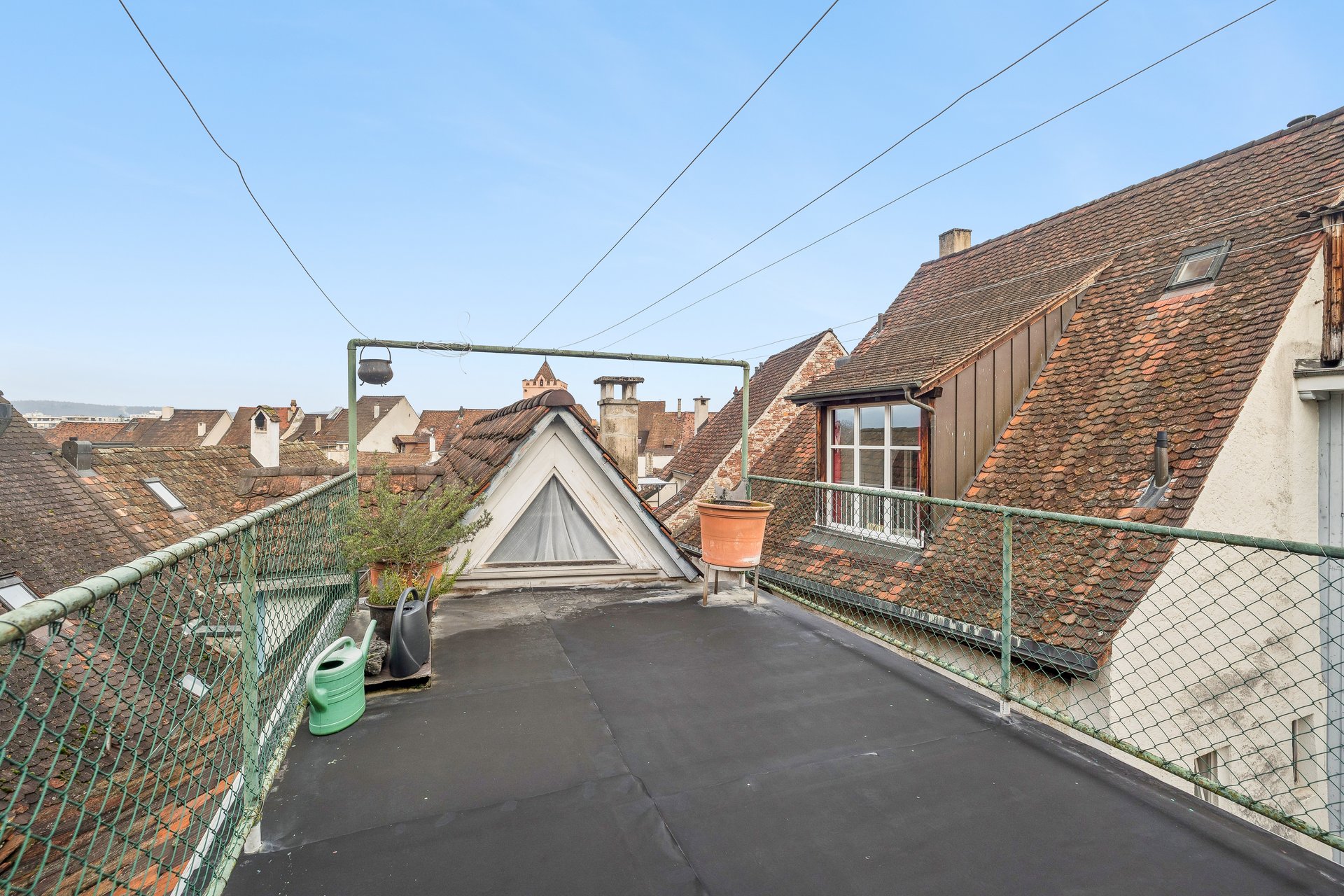 Das Wohnhaus mit Baujahr 1890 erstreckt sich über drei Etagen und bietet eine Küche, ein Badezimmer mit Badewanne, ein Gäste-WC sowie drei Schlafzimmer. Im Dachgeschoss befindet sich ein zusätzliches Zimmer mit direktem Zugang zur Dachterrasse mit herrlichem Blick über die Rheinfelder Altstadt. Ein Keller rundet das Raumangebot ab.