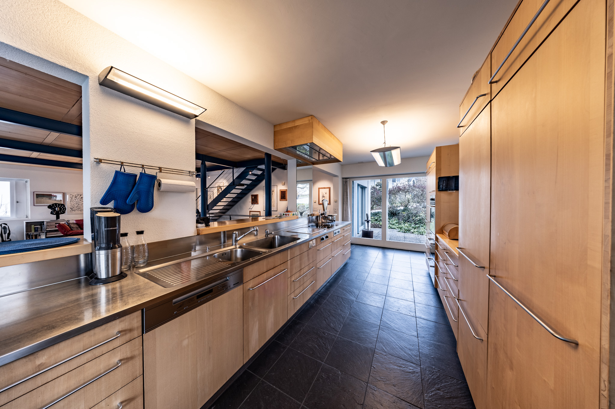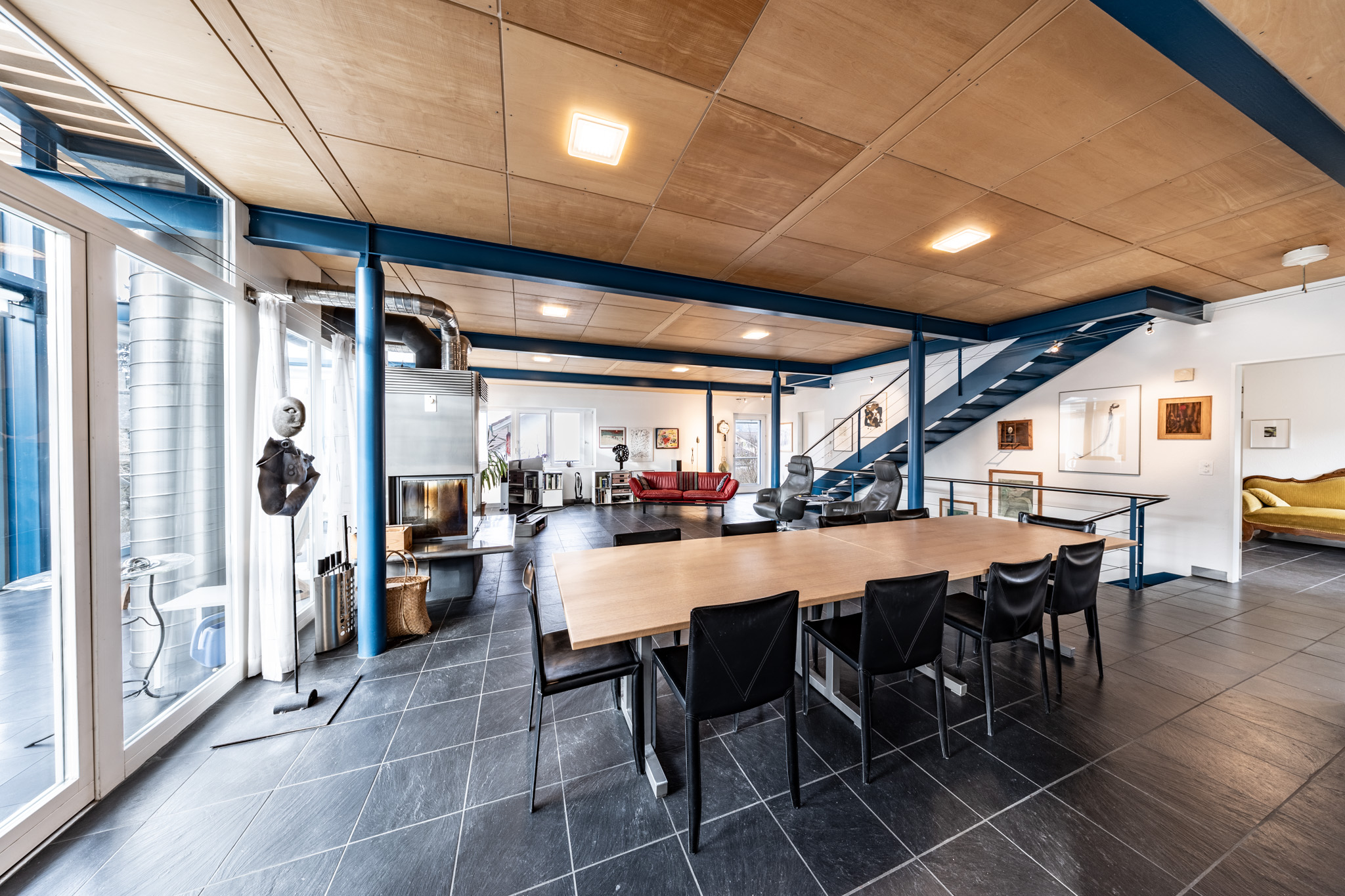Diese aussergewöhnliche Liegenschaft begeistert mit dem umfangreichen Angebot an äusserst grosszügigen Räumen und vereint Komfort mit architektonischer Raffinesse und Ästhetik. Hochwertige Bodenbeläge aus italienischen Schieferplatten und Buchenparkett verwöhnen das Auge mit einer besonderen Eleganz.