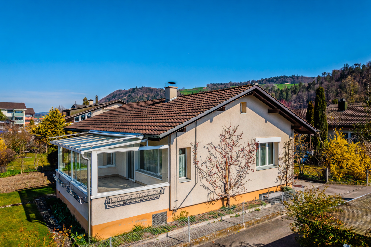 Dieses freistehende 5-Zimmer-Einfamilienhaus präsentiert sich an einer ausgezeichneten, ruhigen und sonnigen Lage. Ideal für Familien: Der Kindergarten, die Primarschule und die Einkaufsmöglichkeiten sind im Umkreis von einem halben Kilometer problemlos zu Fuss erreichbar. Die Anschlüsse für den öffentlichen Verkehr sowie die Auffahrt zur Autobahn liegen ebenfalls in der Nähe.