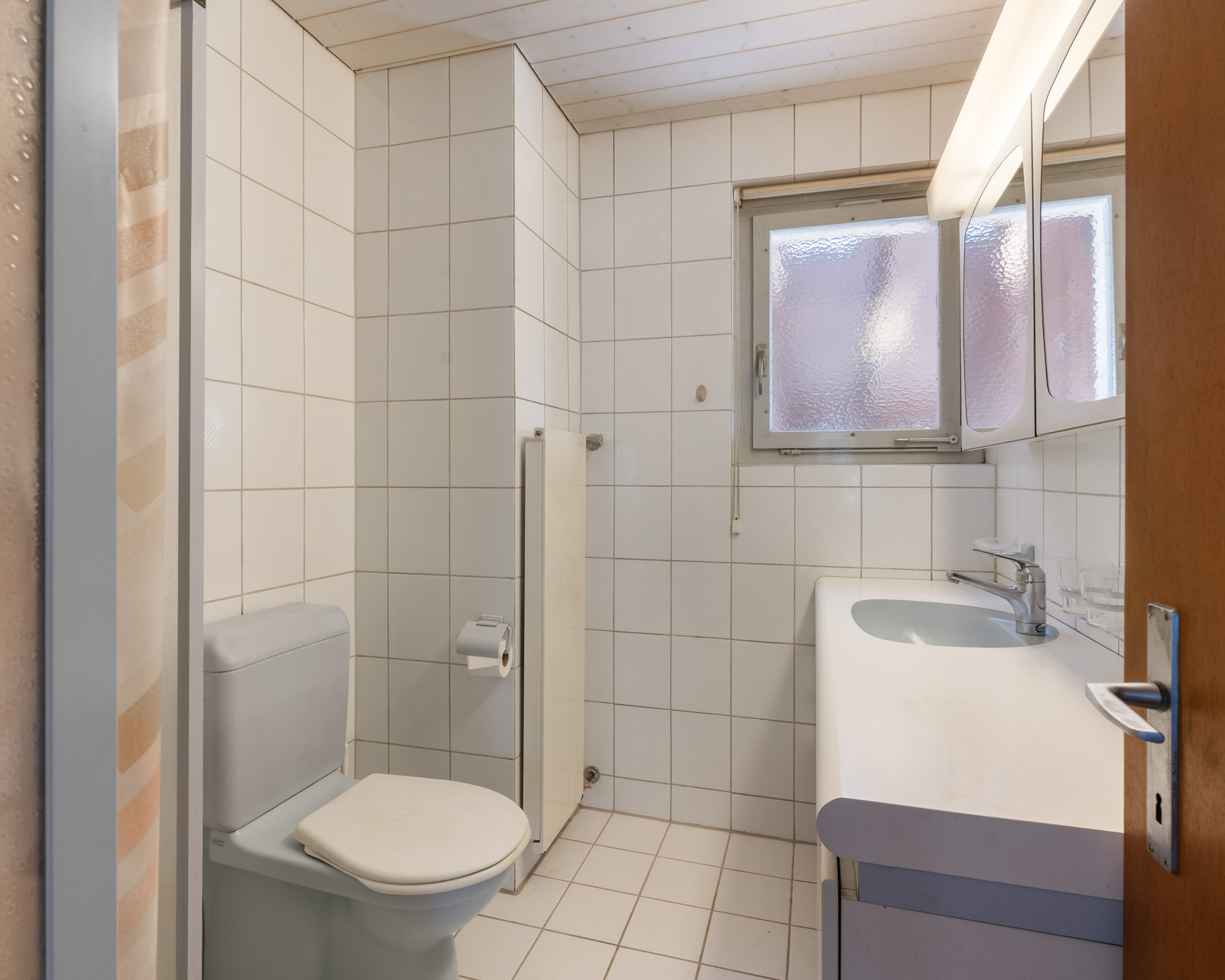 Der einladende Eingangsbereich mit Garderobe führt Sie über wenige Stufen auf die Wohnetage. Hier erwarten Sie die Wohnküche und das angrenzende Esszimmer sowie ein grosszügiges Wohnzimmer mit stilvollem Cheminée. Vom Wohnbereich gelangen Sie durch eine Fenstertür zum wunderbaren Wintergarten, der auch einen direkten Zugang zum Garten bietet. Ein weiteres Zimmer sowie ein Badezimmer mit Dusche ergänzen diese Wohnebene auf perfekte Weise.
