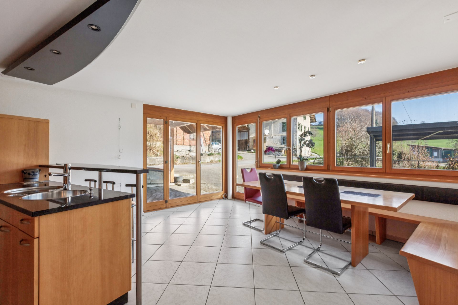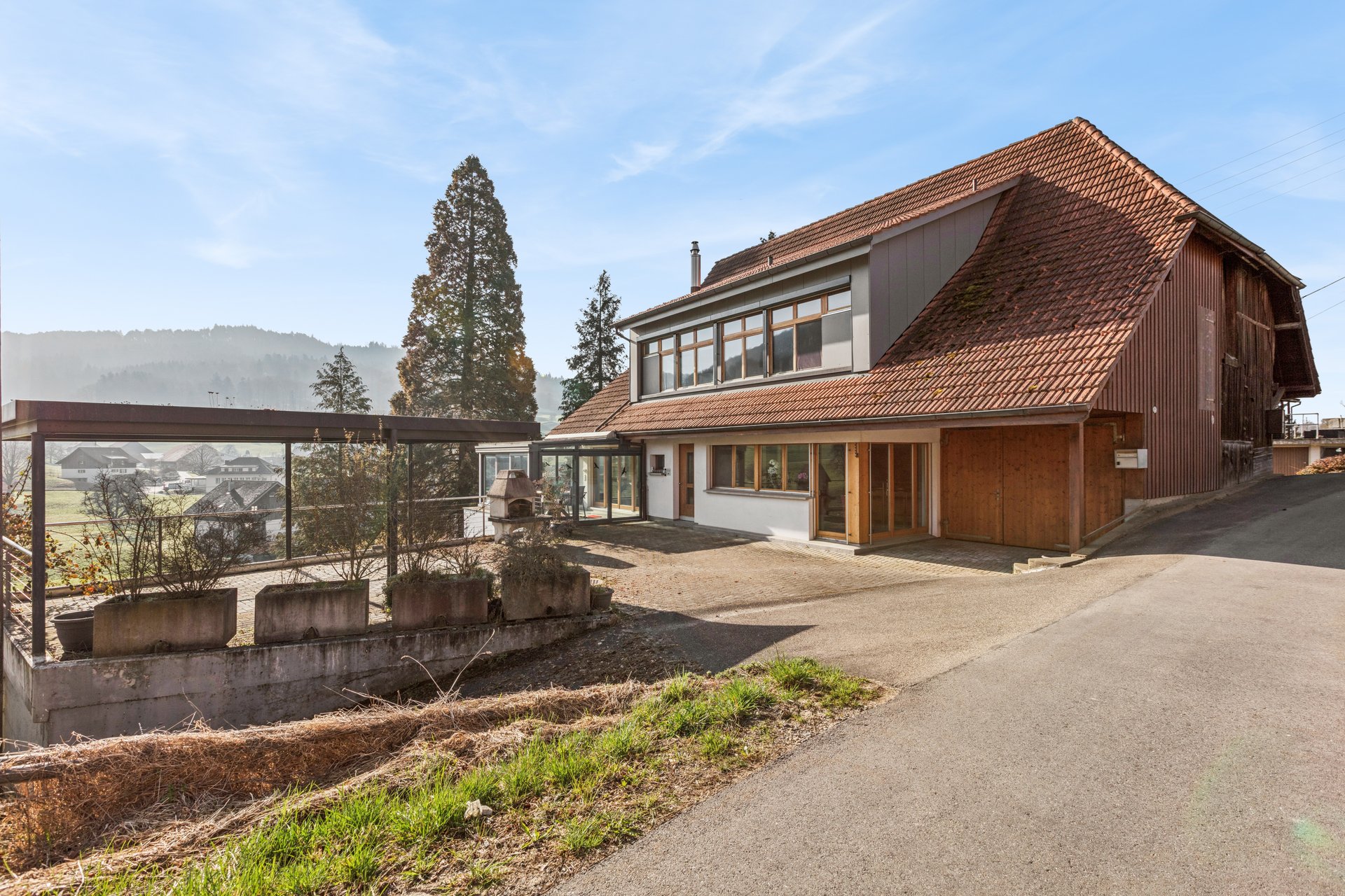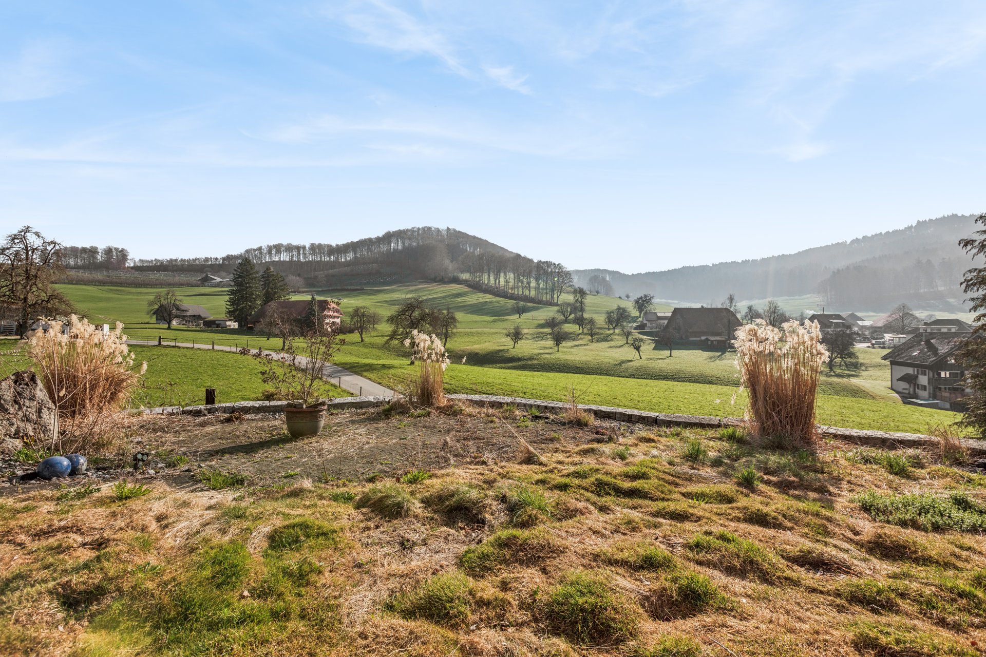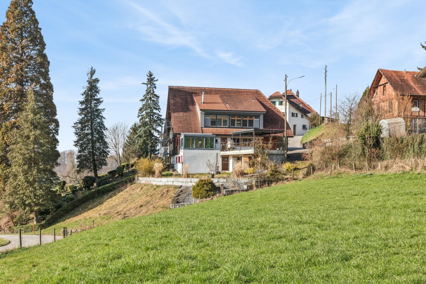 Dieses einseitig angebaute Haus präsentiert sich an naturnaher Wohnlage. In der Landwirtschaftszone gelegen, ist das Grundstück jedoch nicht dem bäuerlichen Bodenrecht unterstellt.