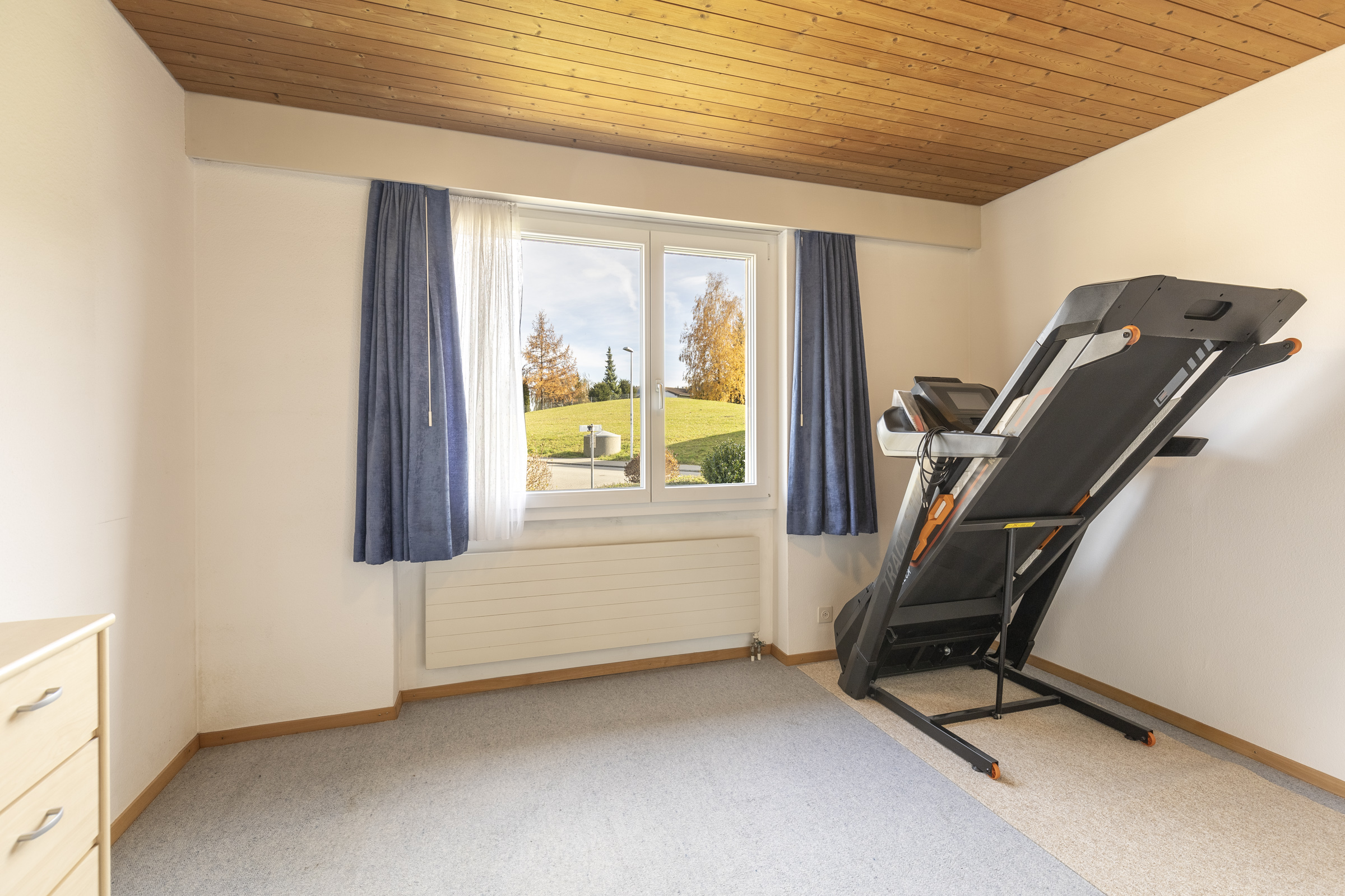 Von der Galerie der oberen Etage haben Sie das Geschehen unten gut im Blick und gelangen in ein zusätzliches Zimmer. Das Badezimmer mit Dusche und die Waschküche ergänzen diese Wohnebene perfekt. Der geräumige Estrich bietet bei Bedarf zusätzliche Ausbaureserven. Geniessen Sie jeden Tag aufs Neue den traumhaften Ausblick von Ihrem Balkon in die grüne Umgebung und auf Ihren herrlichen Garten.