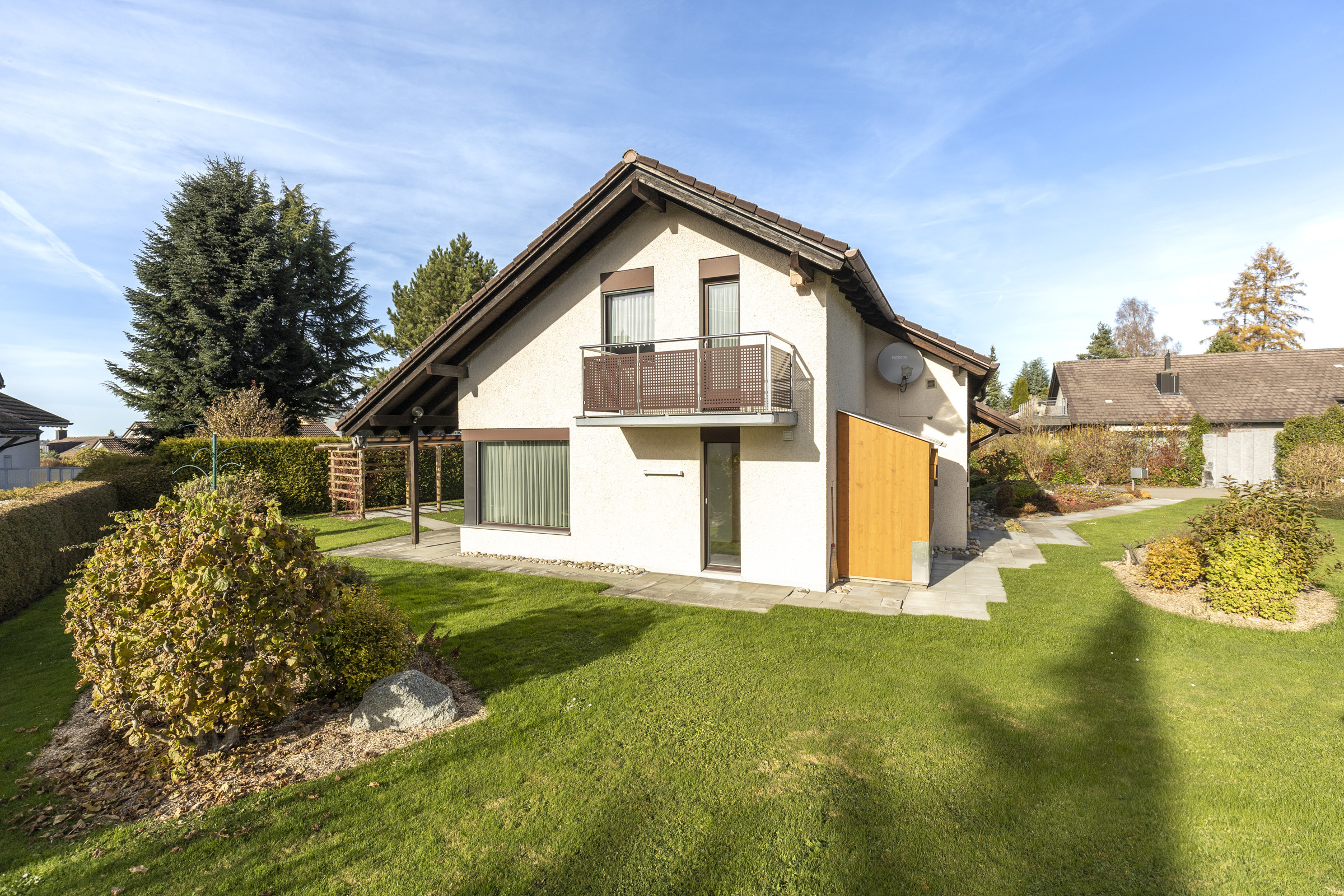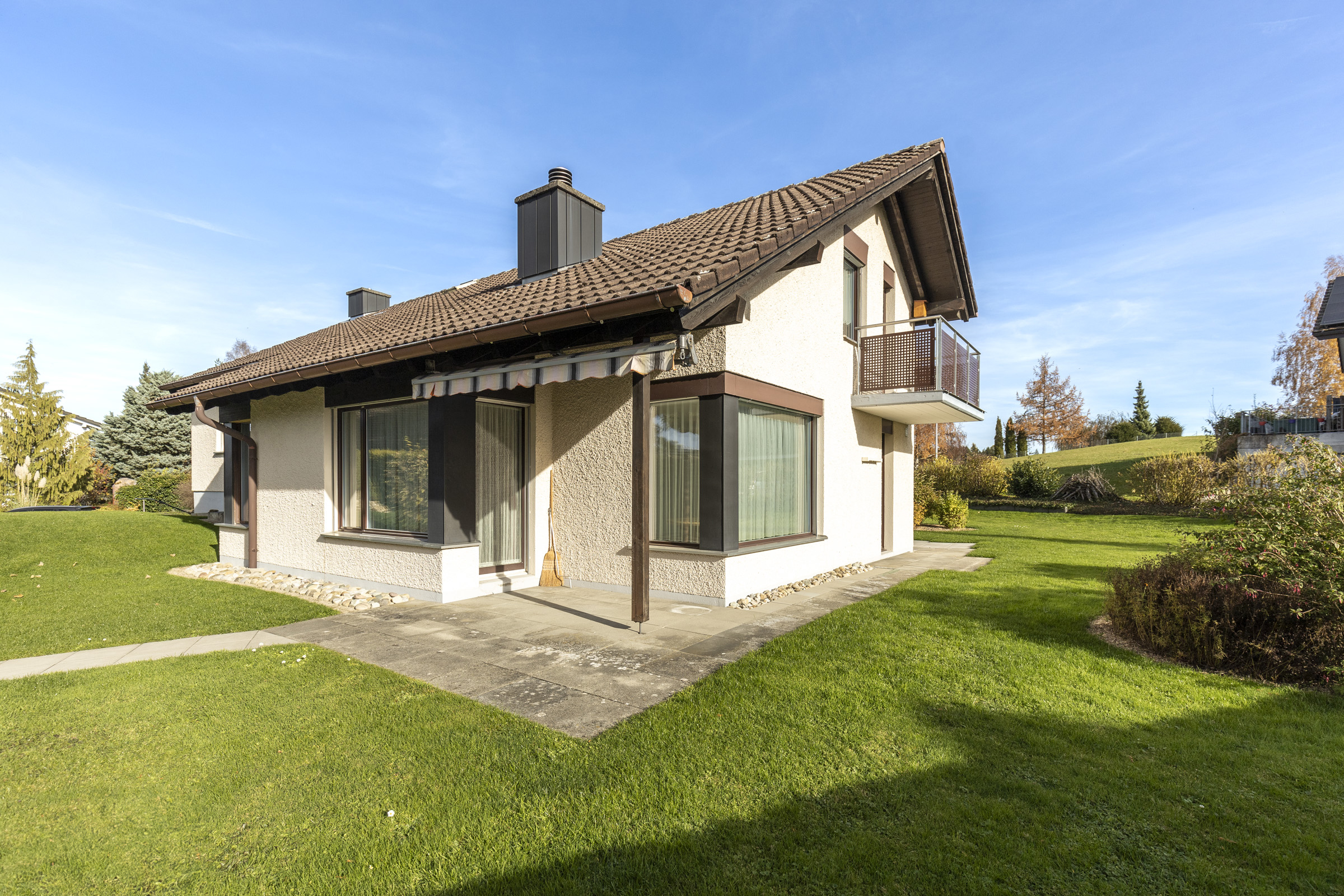 Dieses gepflegte, freistehende Haus mit fünfeinhalb Zimmern befindet sich an hervorragender sonniger Lage. Die öffentlichen Verkehrsmittel sind bequem zu Fuss erreichbar.