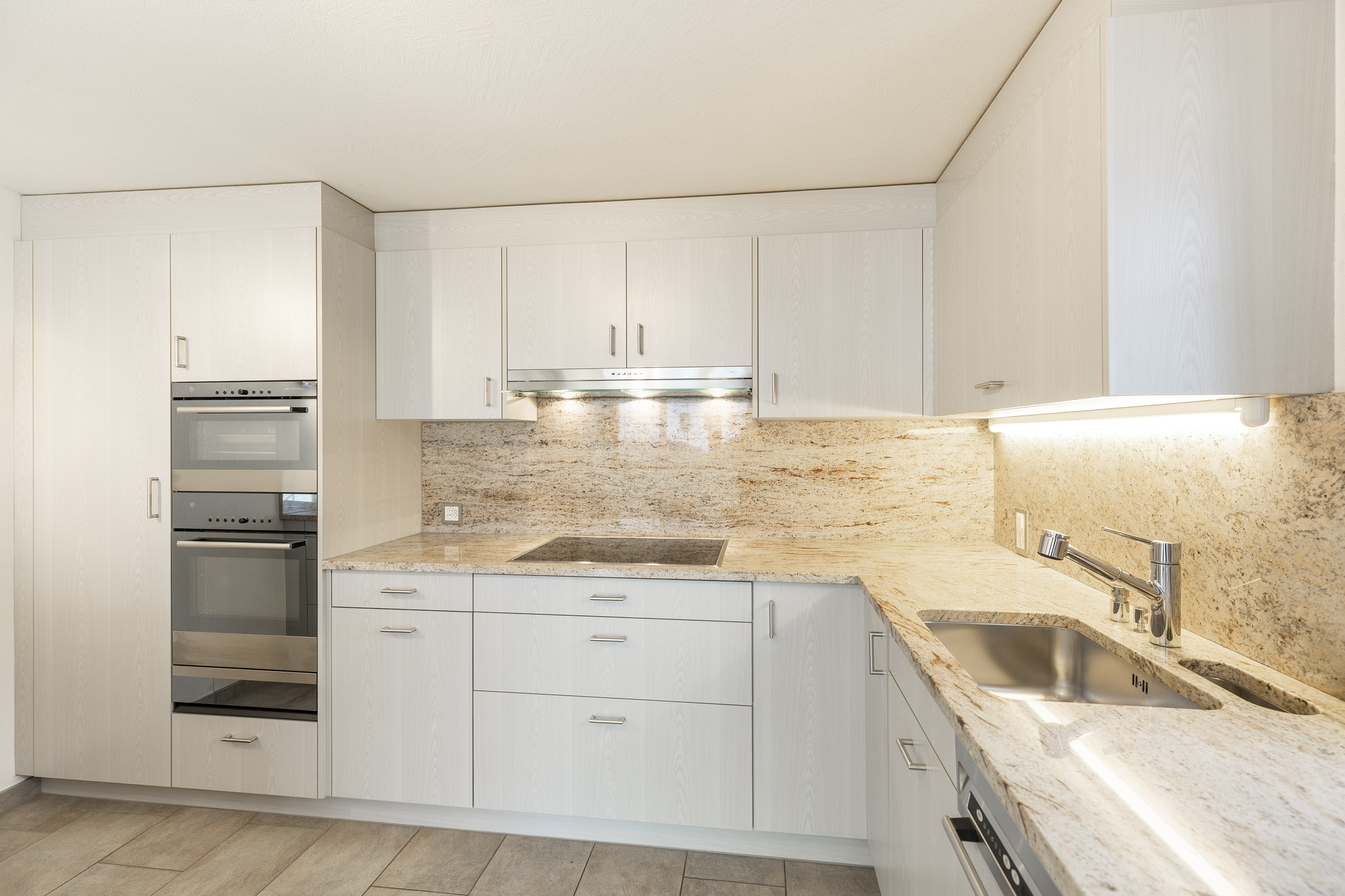 Bereits im Erdgeschoss heissen Sie ein schönes Entrée und der flexibel nutzbare Wohnbereich willkommen. Ein Badezimmer mit Dusche sowie eine separate Gästetoilette ergänzen diese Ebene optimal. Die offene, grosszügig gestaltete Küche geht direkt in den Essbereich über – perfekt für gemeinsame Momente und den unkomplizierten Familienalltag.