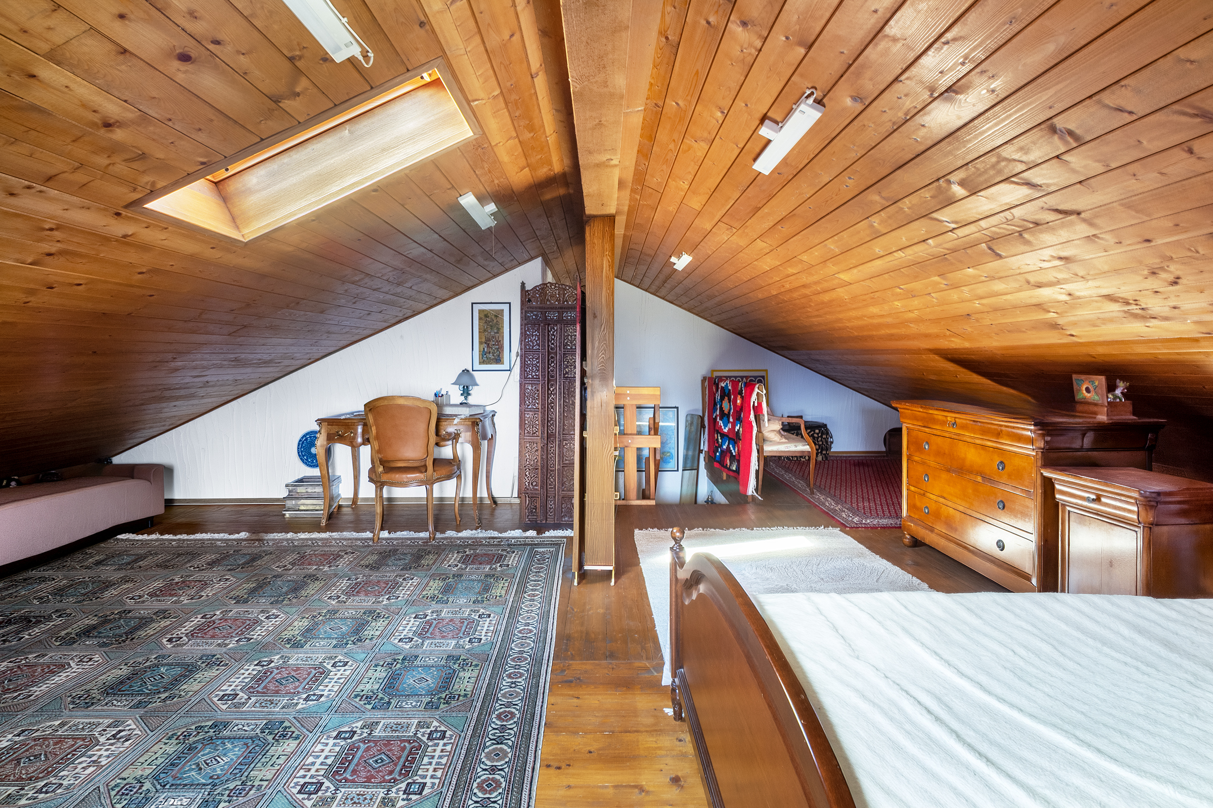 La casa unifamiliare è stata costruita nel 1991 con molta accuratezza, infatti tutt'ora si trova in ottimo stato. Spazi abitabili accoglienti e ben rifiniti. Al pianterreno, abbiamo la cucina open space, attrezzata anche di stufa a legna. Servizio wc ed accesso esterno al giardino ed al comodo porticato esterno, dove passare la giornate in tranquillità. Al primo piano, trovano spazio due camere matrimoniali ed una singola. Grande servizio wc completo, con locale "guardaroba disponibile". Al piano mansarda, grande locale a disposizione, per differenti utilizzi, locale hobby / camera / locale giochi con velux nel tetto, per una buono illuminazione naturale. All'esterno trovano spazio il locale tecnico dell'immobile con la sua relativa cantina. Porticato esterno ideale nelle giornate più calde, con la frescura naturale del bosco adiacente. Riscaldamento mediante camino e stufa a legna nella zona giorno, radiatori a gas nella zona notte. Bel giardino pianeggiante, ideale per vivere una giornata all'insegna della natura. Comodo garage e due / tre posti auto esterni.