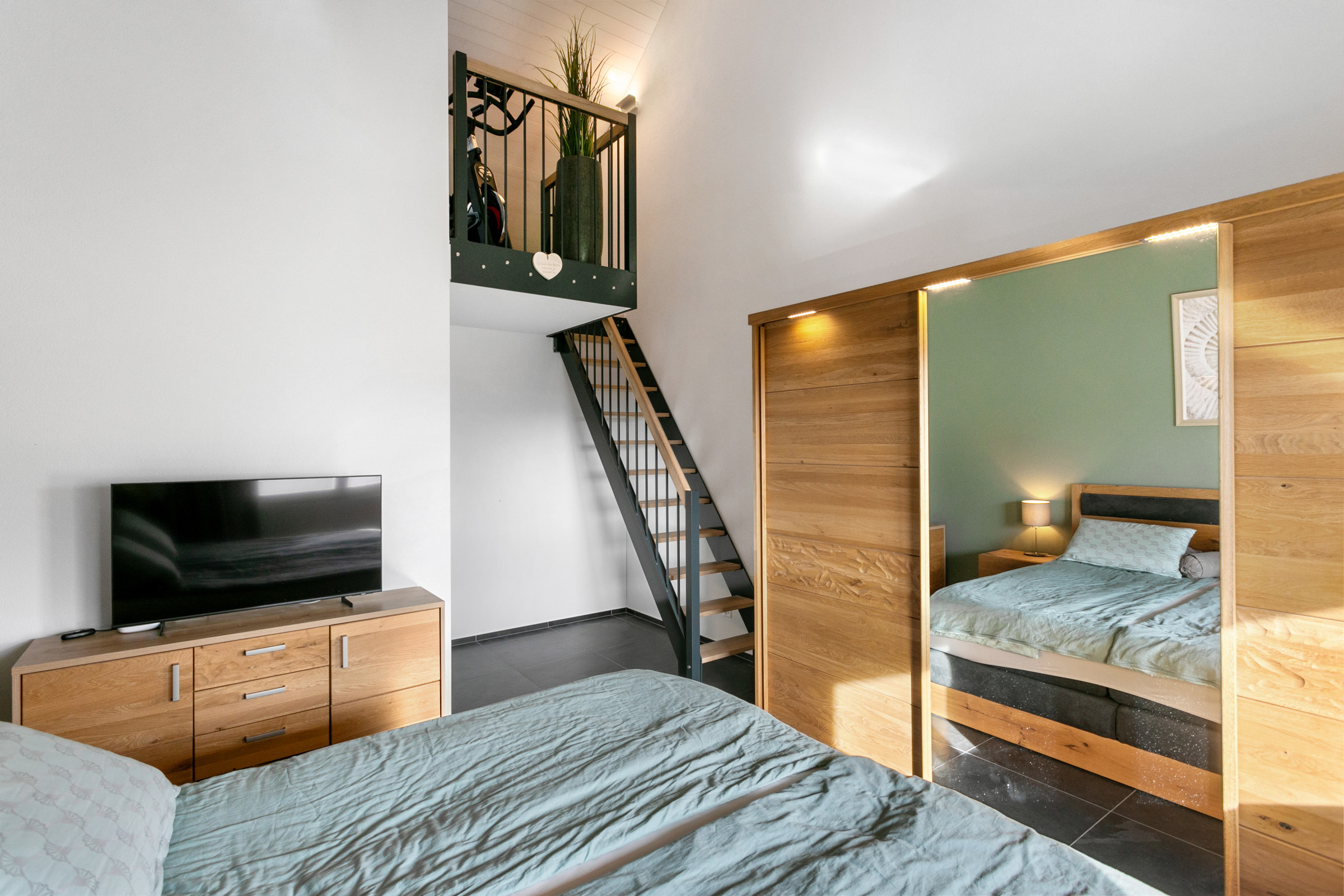 Im Obergeschoss erwarten Sie zwei Schlafzimmer sowie ein aussergewöhnlich grosses Badezimmer mit Badewanne und Dusche. Eines der Zimmer verfügt über ein zusätzliches Galeriezimmer, das sich vielfältig nutzen lässt.