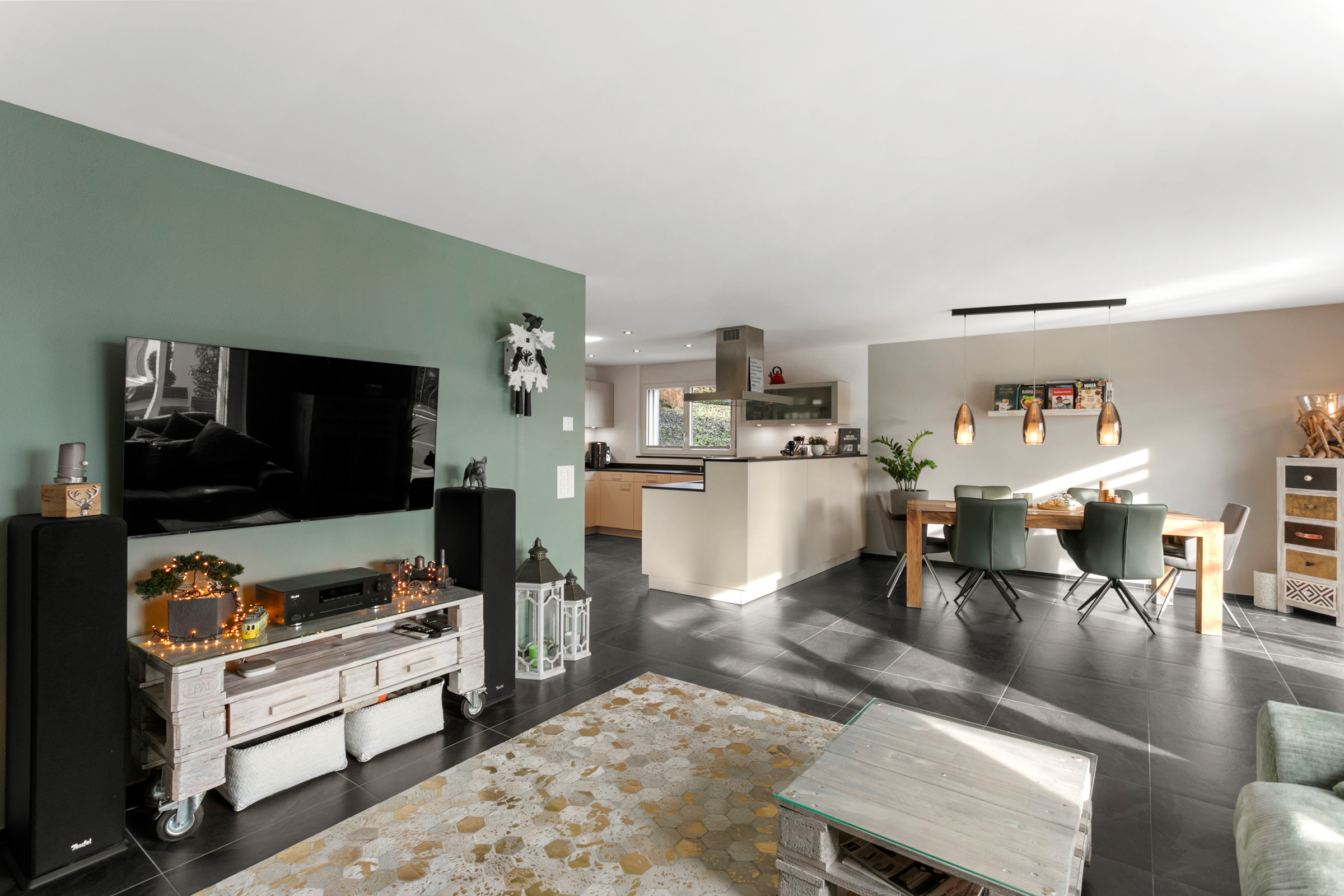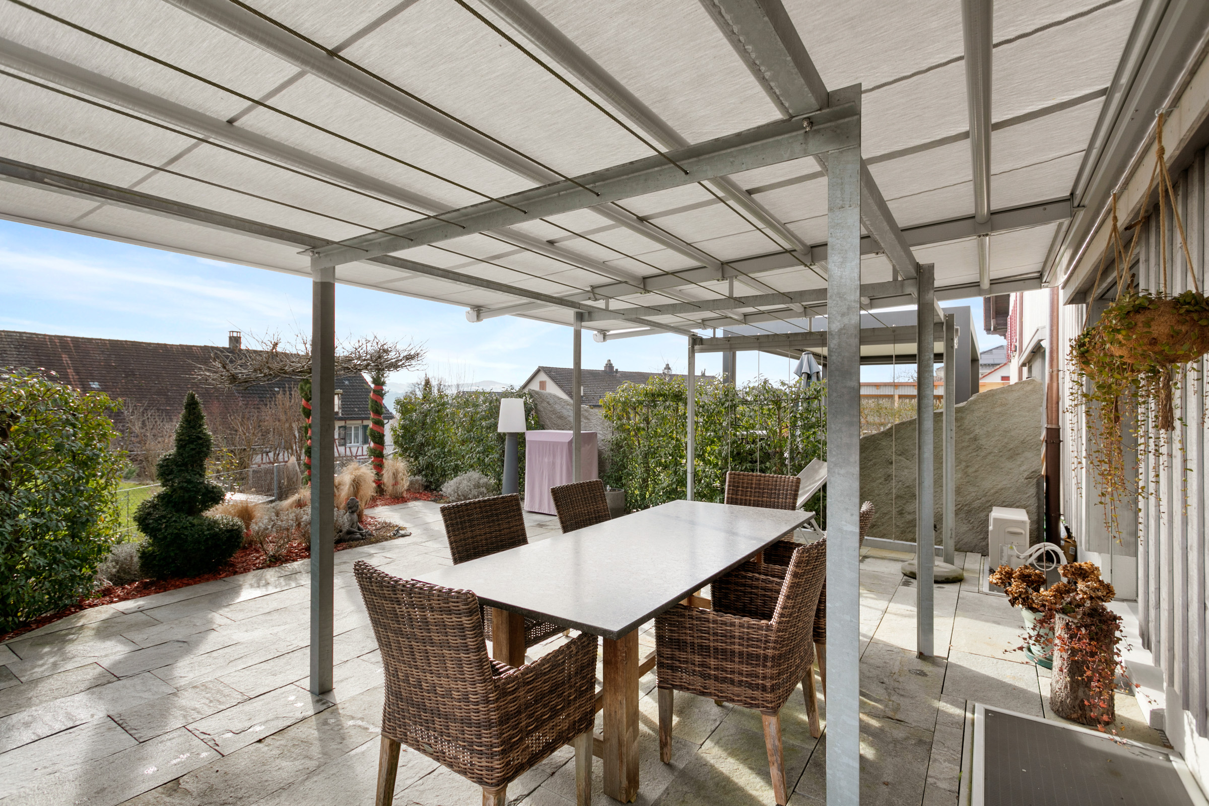 Das angebaute Einfamilienhaus wurde 2022 erbaut und bietet höchsten Komfort. Die offene, hochwertig ausgestattete Küche fügt sich harmonisch in den grosszügigen Wohn- und Essbereich mit bodentiefen Fenstern. Von hier gelangen Sie direkt zum überdachten Aussenbereich mit pflegeleichter Gartenanlage und ausfahrbarer Markise – perfekt für entspannte Stunden im Freien.