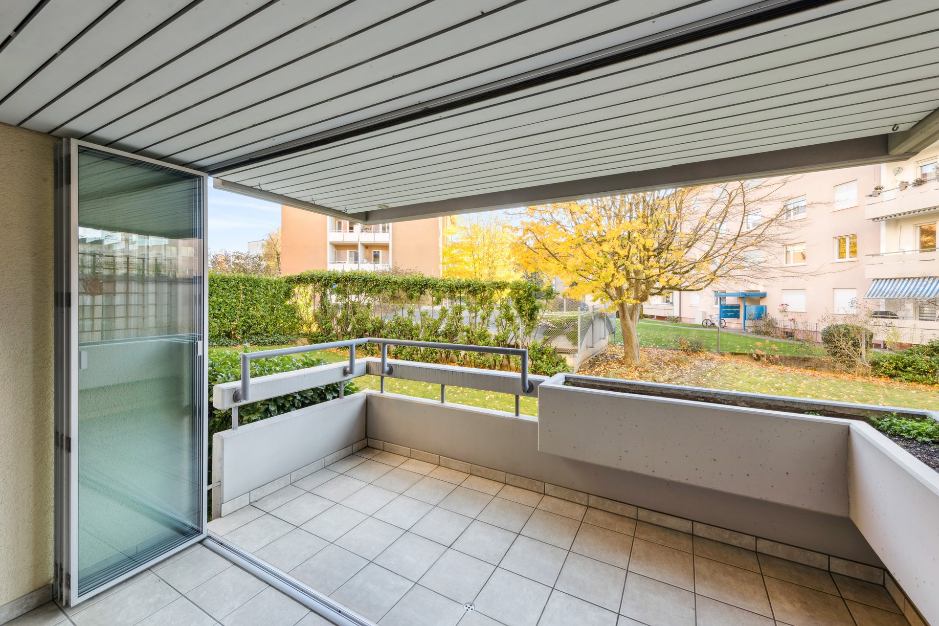 Der Balkon ist teilweise verglast und verfügt über ein Réduit, in dem der Grill und andere Utensilien gut verstaut werden können. Ein separater, eigener Keller und eine Garagenbox in der Tiefgarage sind im Preis inklusive und runden dieses attraktive Angebot ab.