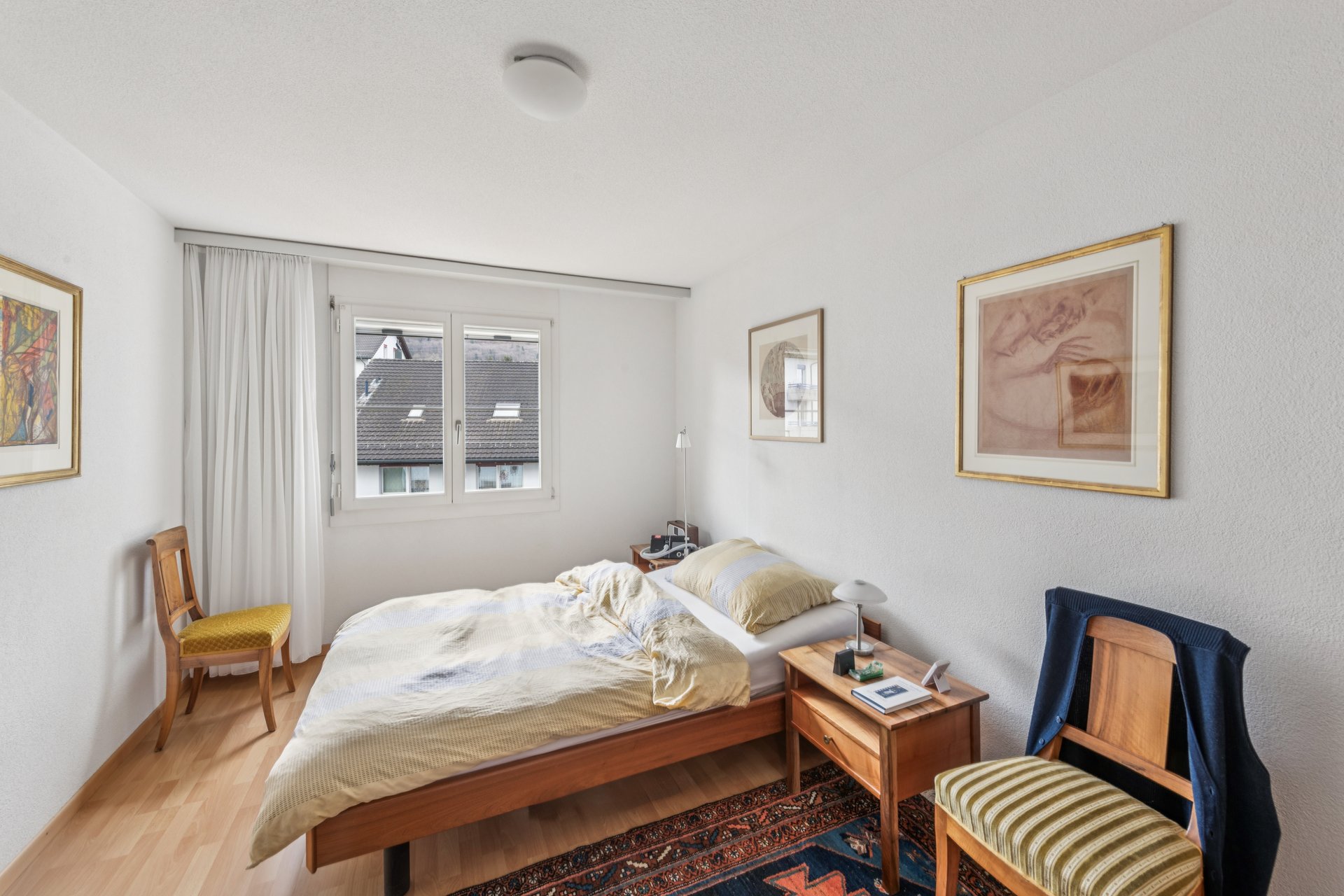 Der Schlafbereich wird aufgeteilt in drei grosszügige Zimmer und das Badezimmer mit Doppellavabo, Badewanne, Waschturm und WC. Ergänzt wird dieses preislich attraktive und interessante Angebot mit einem Keller, einem gemeinsamen Wasch- und Trockenraum für vier Parteien und mit zwei Tiefgaragenplätzen, die im Preis inklusive sind.