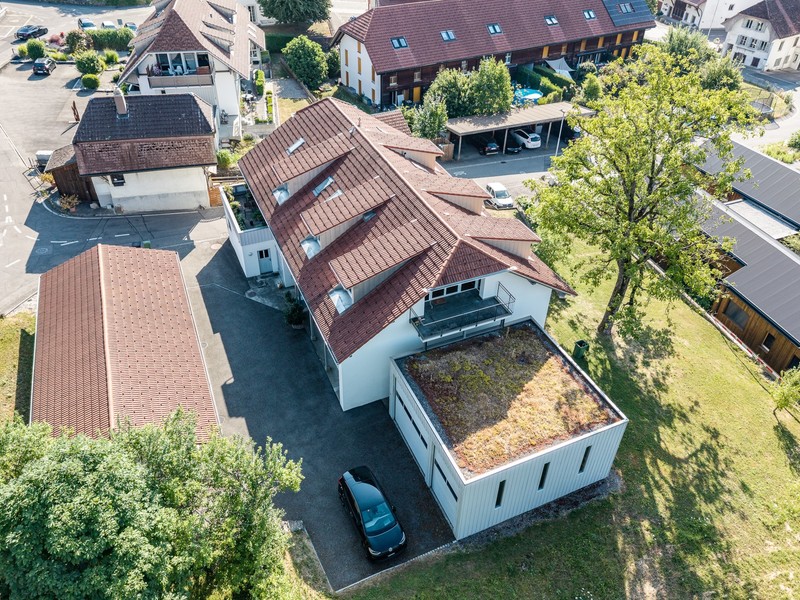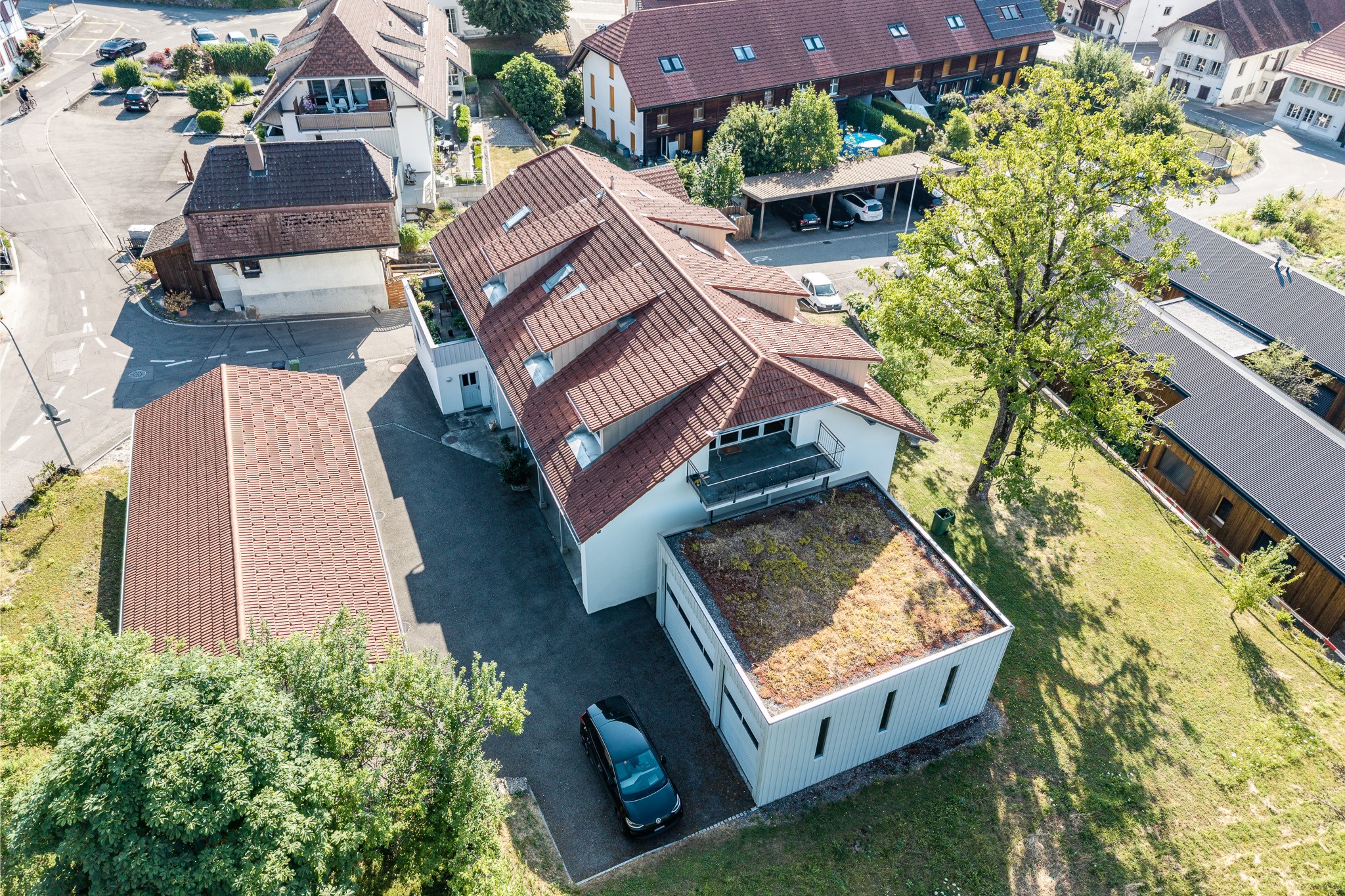 Diese charmante 4.5-Zimmer-Dachwohnung befindet sich im zweiten Obergeschoss eines überschaubaren und neueren Wohnhauses an ruhiger und naturnaher Lage. Ein Kindergarten und Primarschule, Einkaufsmöglichkeiten und der öffentliche Verkehr sind mühelos in wenigen Gehminuten erreichbar.