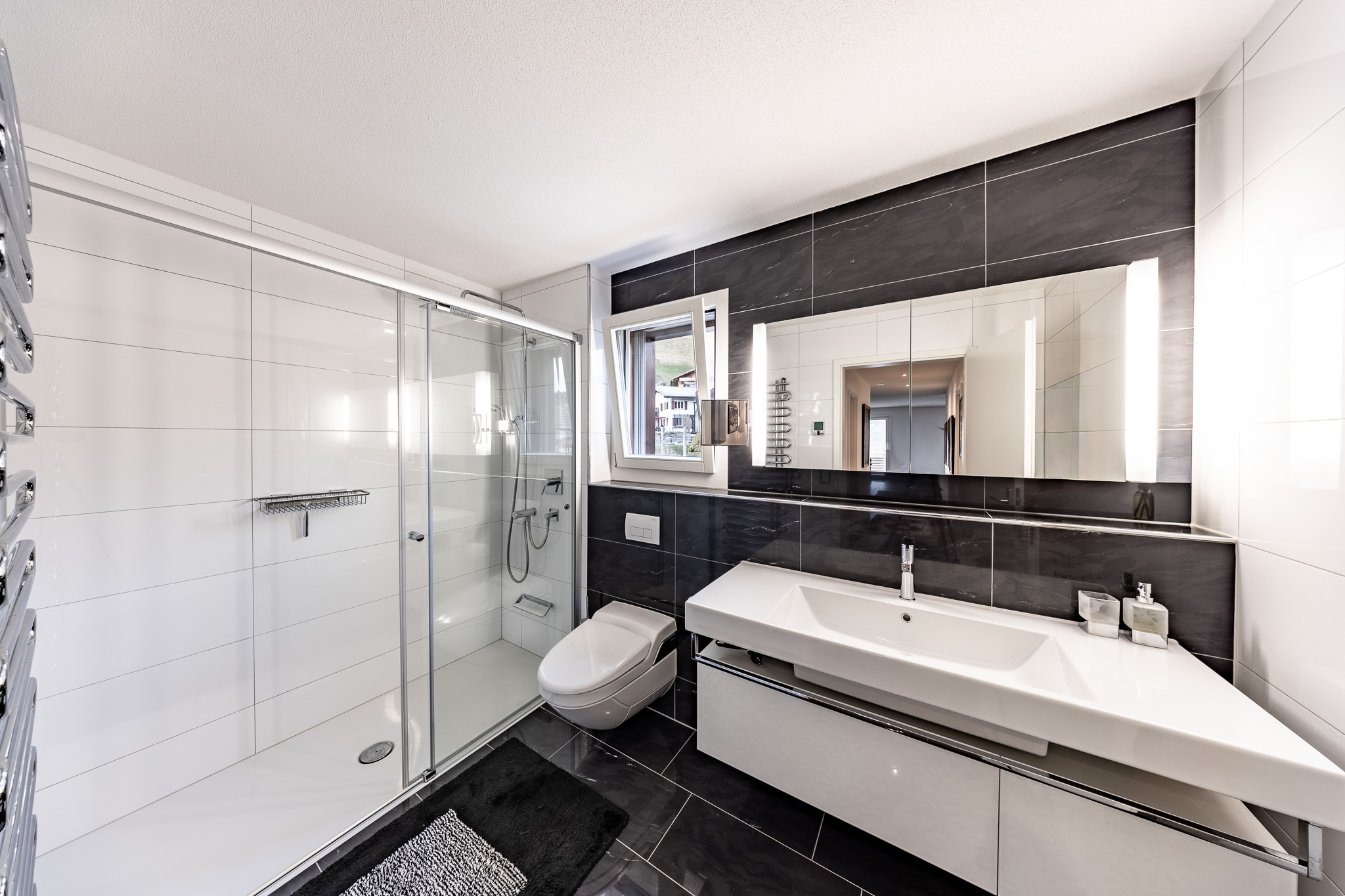 Zwei moderne Badezimmer – beide mit geräumiger Dusche – ergänzen die Wohnebene perfekt.