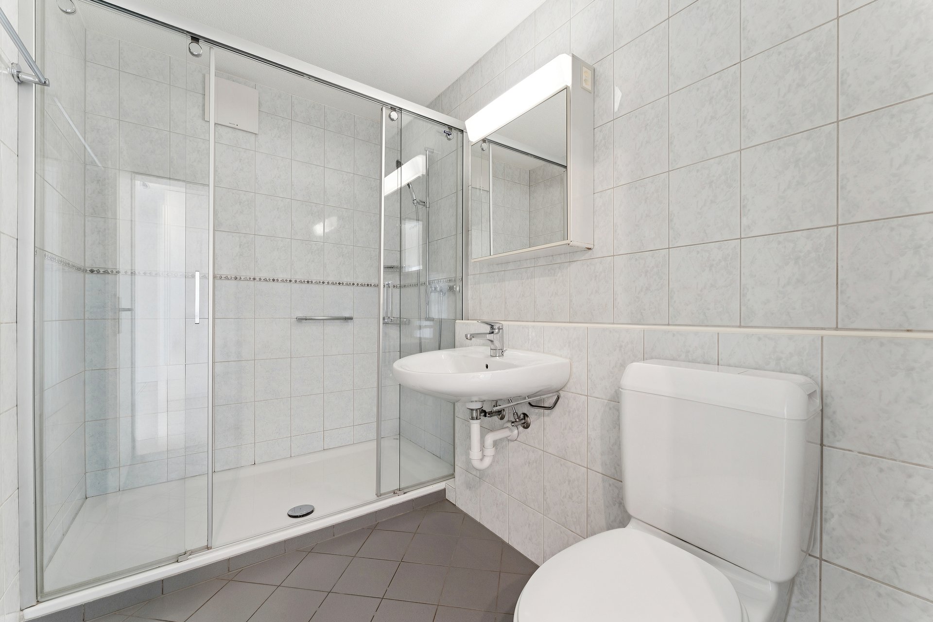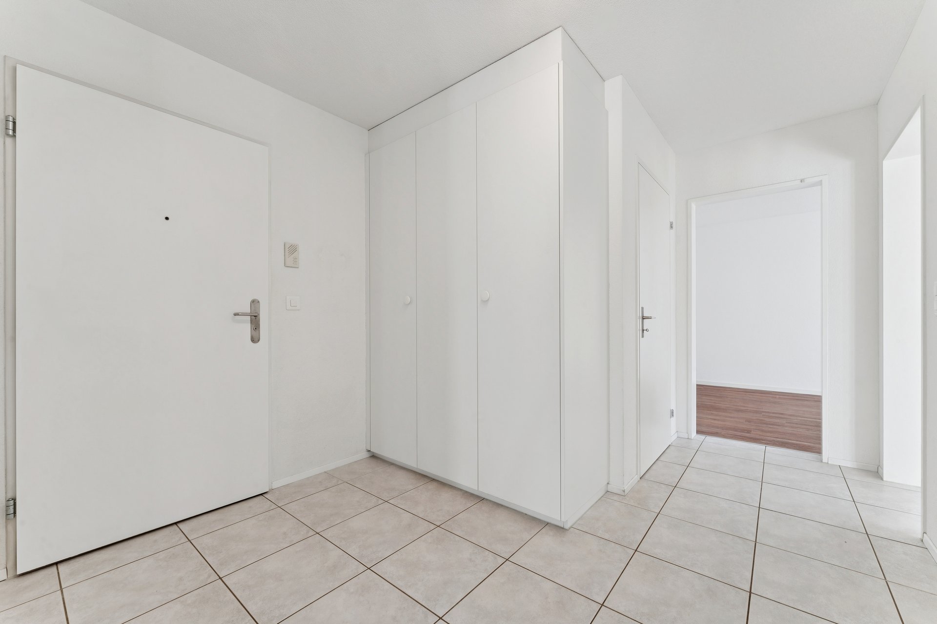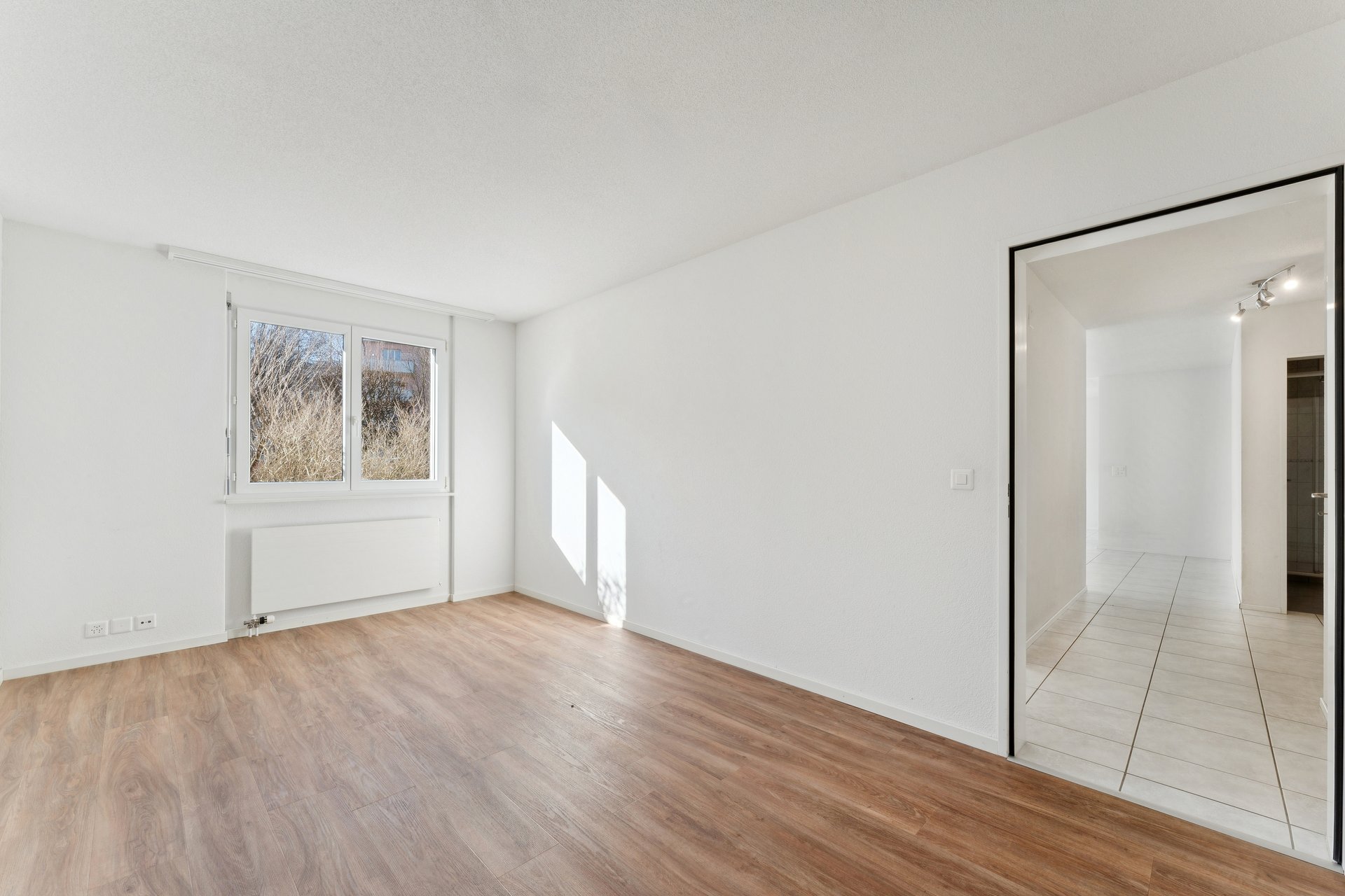 Pflegeleichte Plattenböden prägen die Wohnbereiche, während in den lichtdurchfluteten Schlafzimmern Venyl eine warme, behagliche Atmosphäre schafft. Ein Reduit sorgt zusätzlich für praktischen Stauraum im Alltag.