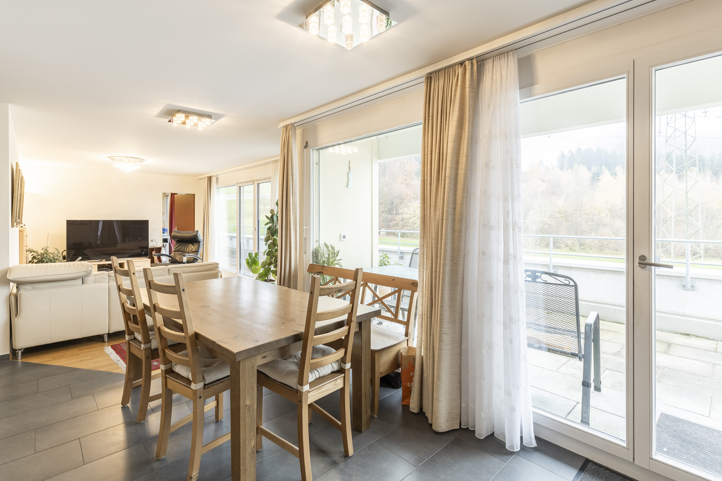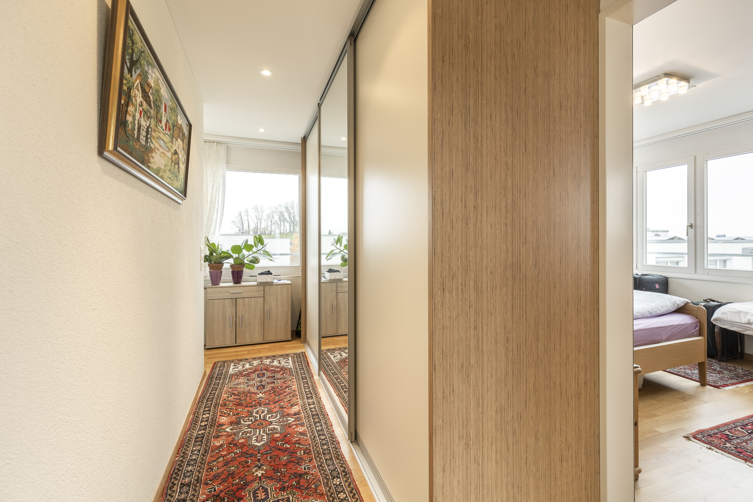 Mit dem vorhandenen Lift kommen Sie komfortabel in Ihr Stockwerk. Insgesamt macht Ihr neues Zuhause einen angenehm grosszügigen Eindruck. Der Boden ist barrierefrei und mit einem Parkettbelag gestaltet.