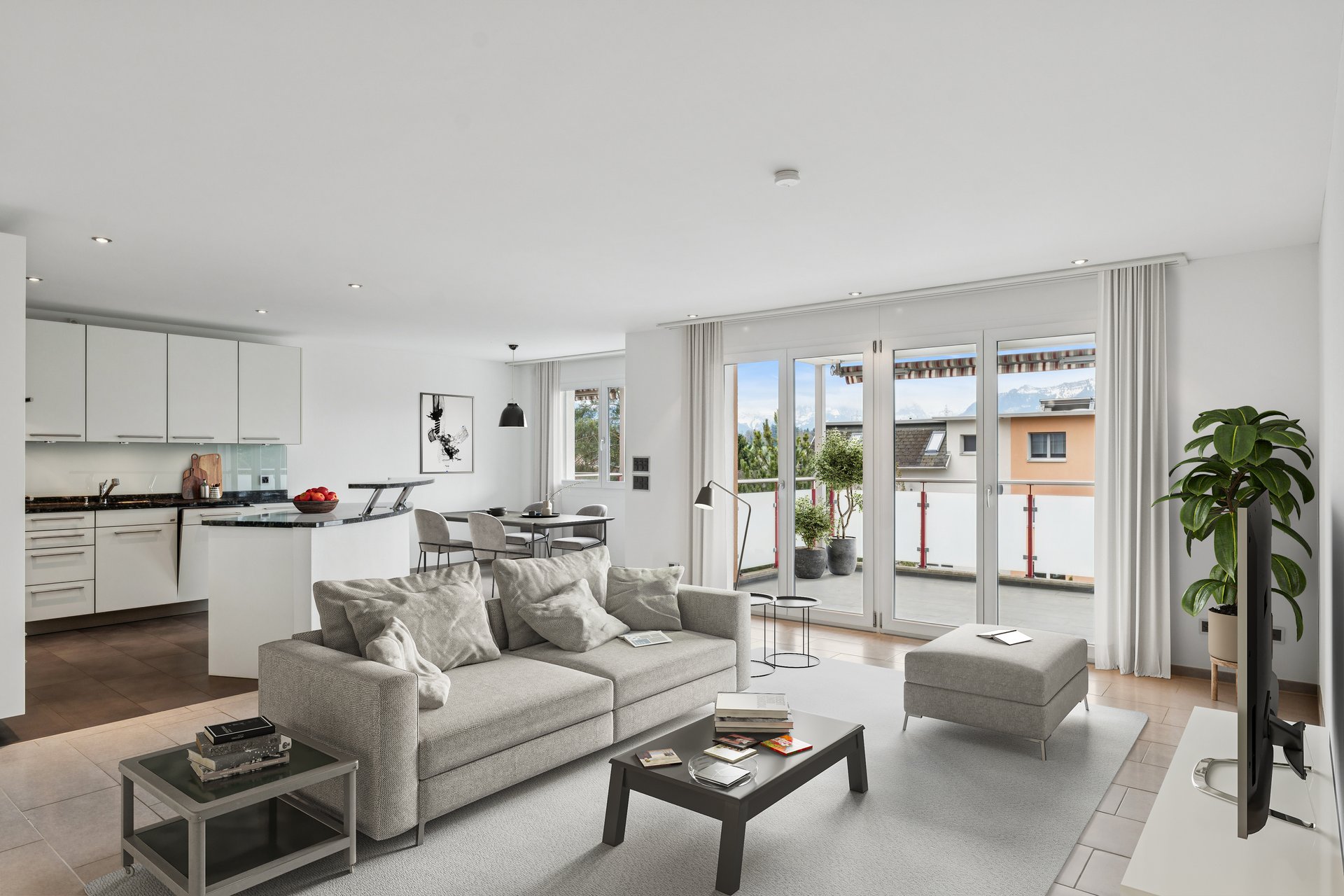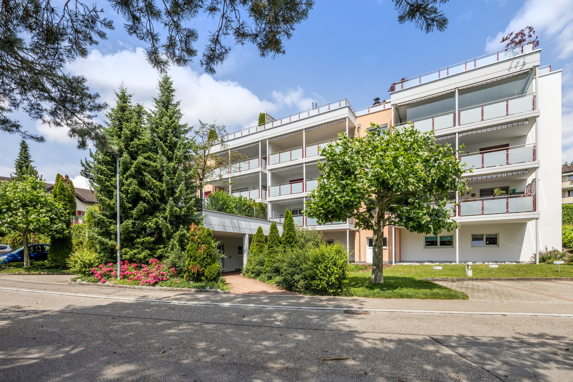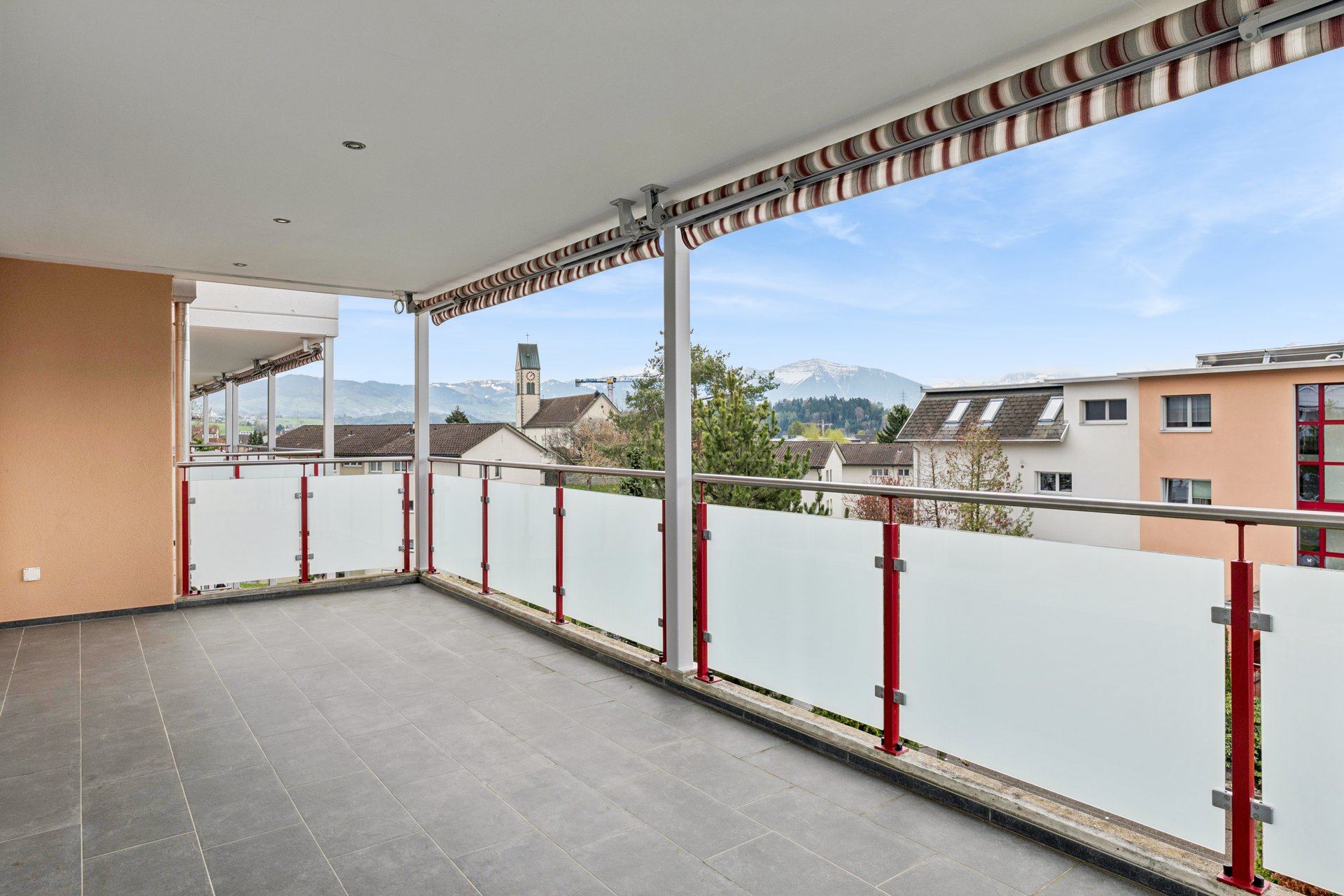 Die Wohnung befindet sich im zweiten Obergeschoss eines gepflegten Mehrfamilienhauses, das über einen Personenlift verfügt, der Sie bequem vor Ihre Wohnungstür bringt. Im Inneren erwarten Sie drei helle Schlafzimmer, eines davon mit direktem Zugang zum grossen Balkon. Von hier geniessen Sie die herrliche Aussicht jeden Tag aufs Neue – ideal für den morgendlichen Kaffee oder ein Freiluftdinner am Abend.