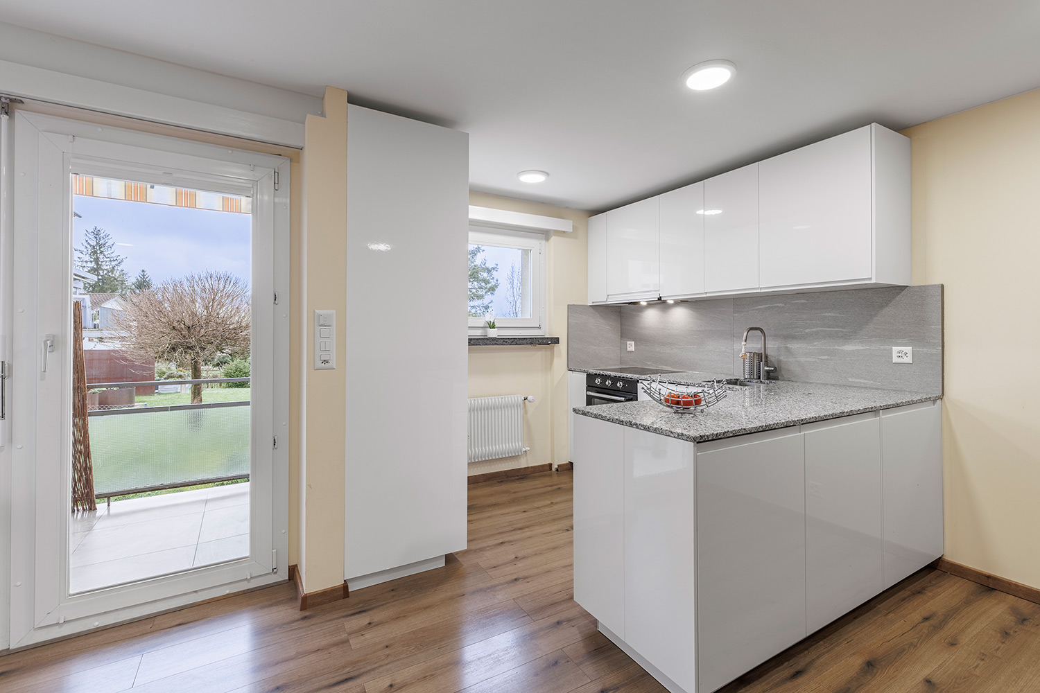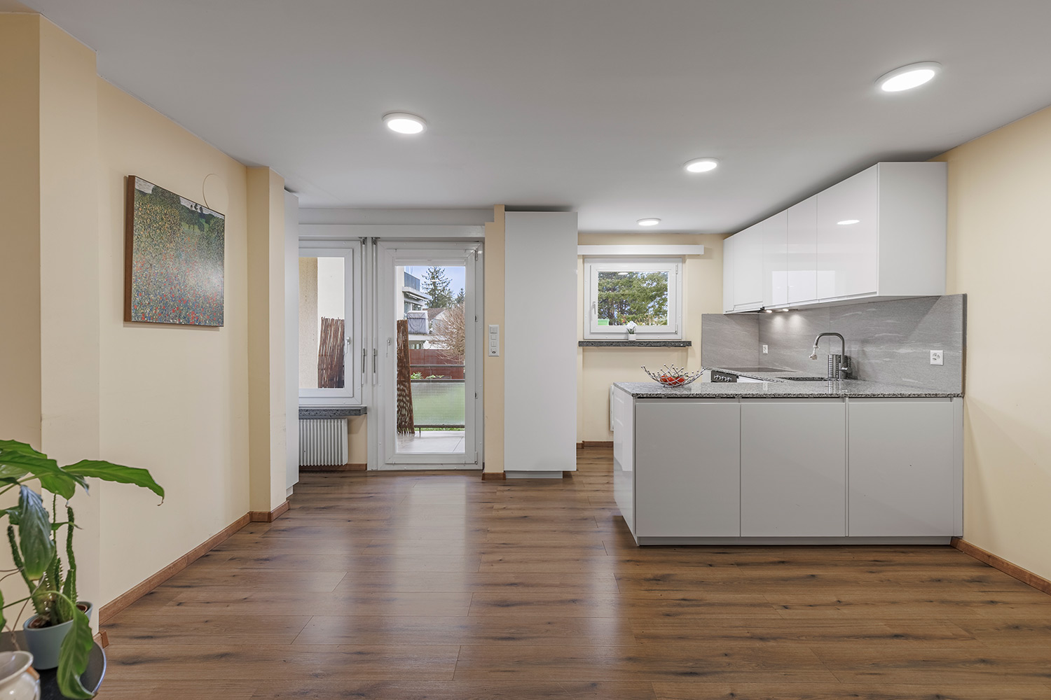 In der grossen offenen Küche finden Sie genügend Platz für die Zubereitung von feinen Menüs. Auf dem wunderbaren Balkon schmecken Frühstück oder Lieblingsgetränke mit herrlicher Aussicht gleich doppelt so gut. Auch im Untergeschoss stehen Ihnen weitere Flächen zur freien Nutzung zur Verfügung.