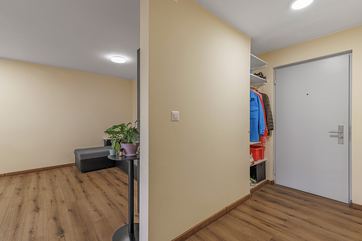 Die Wohnung im ersten Obergeschoss begeistert mit einem cleveren und grosszügigen Grundriss. Das einladende Entrée überzeugt mit einer praktischen Garderobe. Selbstverständlich weiss auch das modernisierte Badezimmer zu überzeugen, das mit einer Dusche ausgestattet ist. Der angenehme Wohn- und Essbereich und das behagliche Schlafzimmer mit ästhetischem Einbauschrank sorgen für einen zeitgemässen Wohnkomfort.