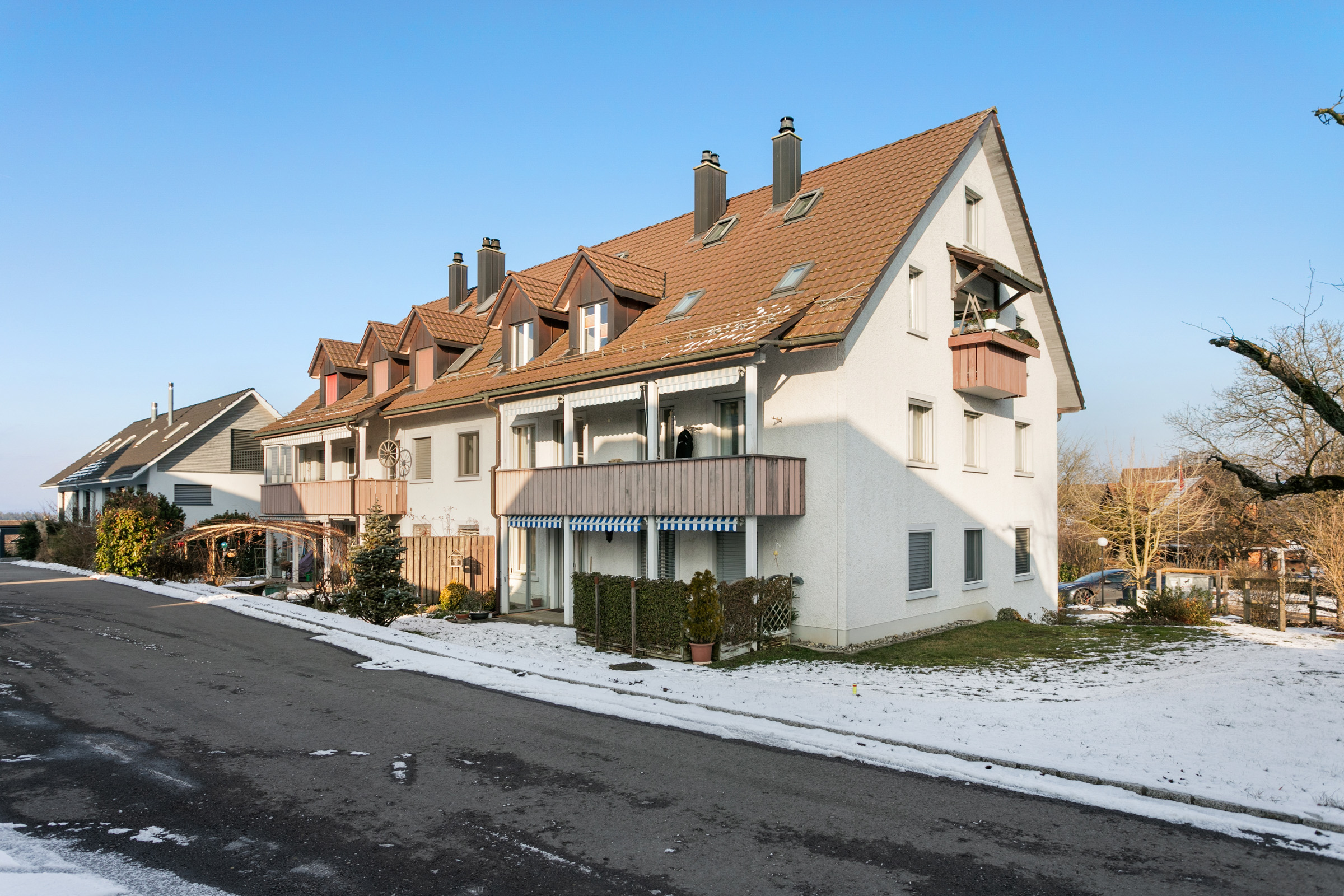 Auf der ersten Wohnebene erwartet Sie ein heller Wohn- und Essbereich, der mit seinem gemütlichen Cheminée eine warme, behagliche Stimmung schafft. Von hier aus gelangen Sie direkt in die separate Küche sowie auf den Balkon, der mit einer wunderbaren Aussicht in die naturnahe Umgebung den Wohnraum harmonisch ergänzt. Zwei weitere Zimmer auf diesem Geschoss bieten flexible Nutzungsmöglichkeiten – ob als Schlafzimmer, Kinderzimmer oder Homeoffice. Eine grosse Nasszelle mit Doppelwaschtisch, Dusche und Badewanne sowie die separate Gästetoilette sorgen für zusätzlichen Komfort.